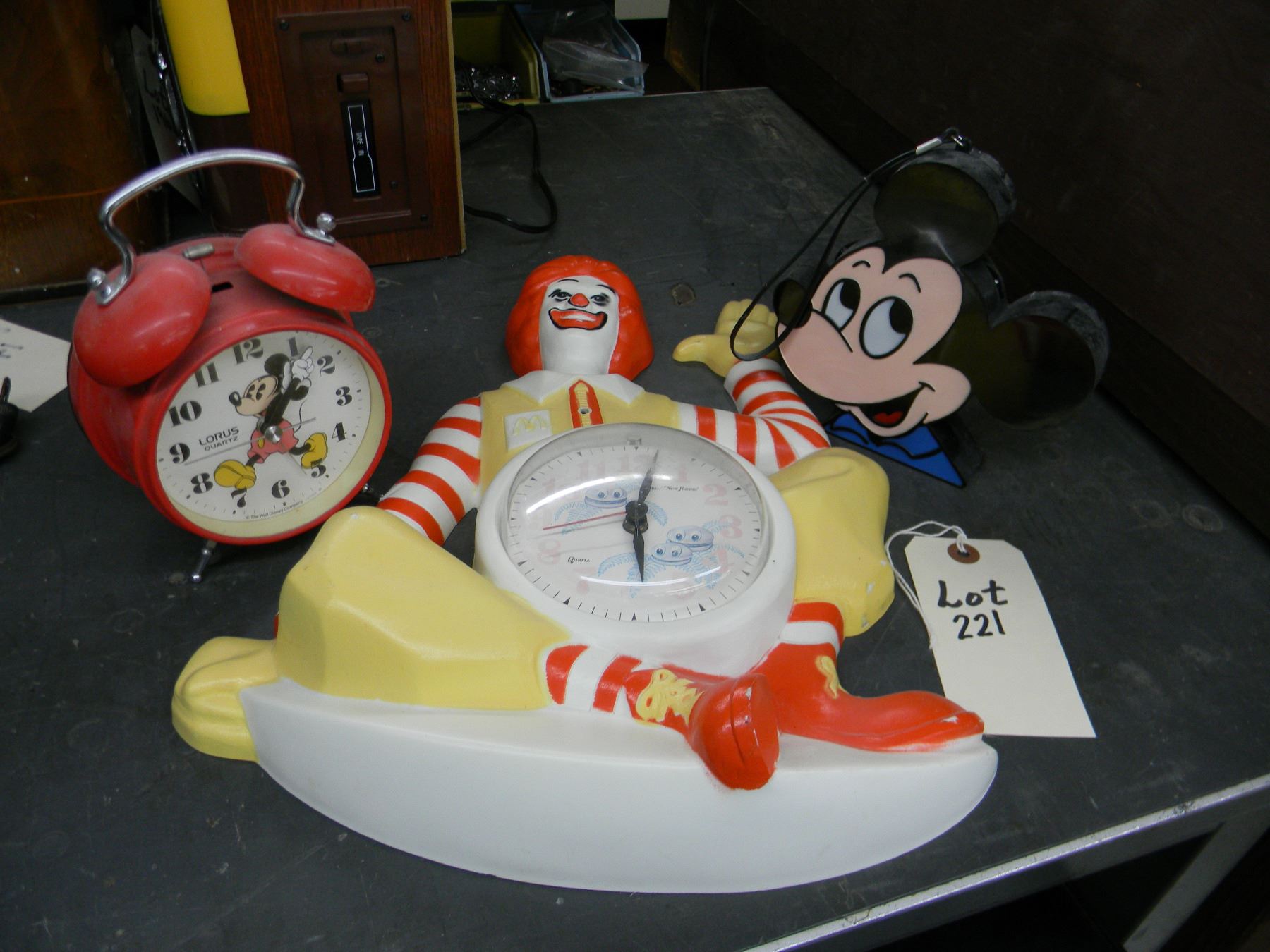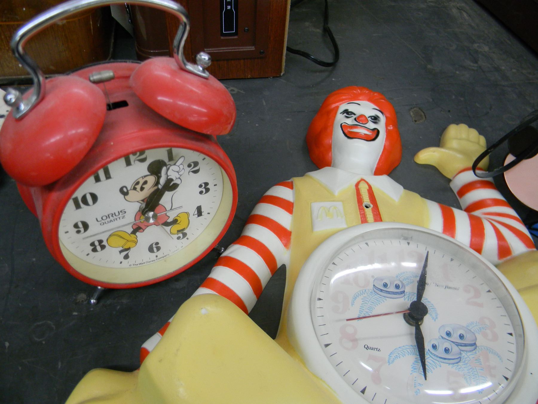 Ronald McDonald clock; Mickey Mouse clock; Mickey novelty radio