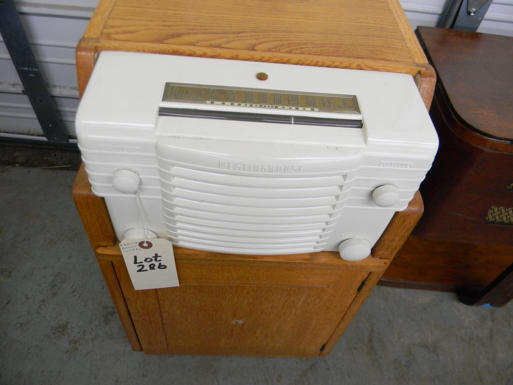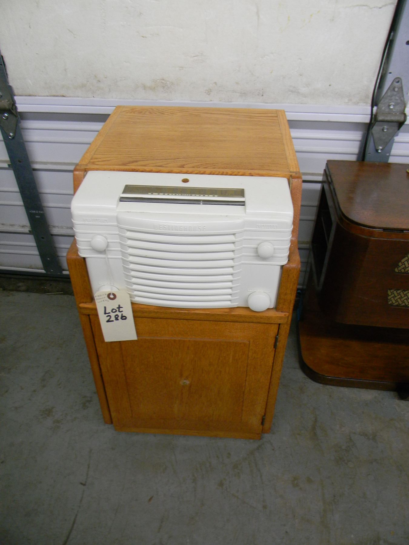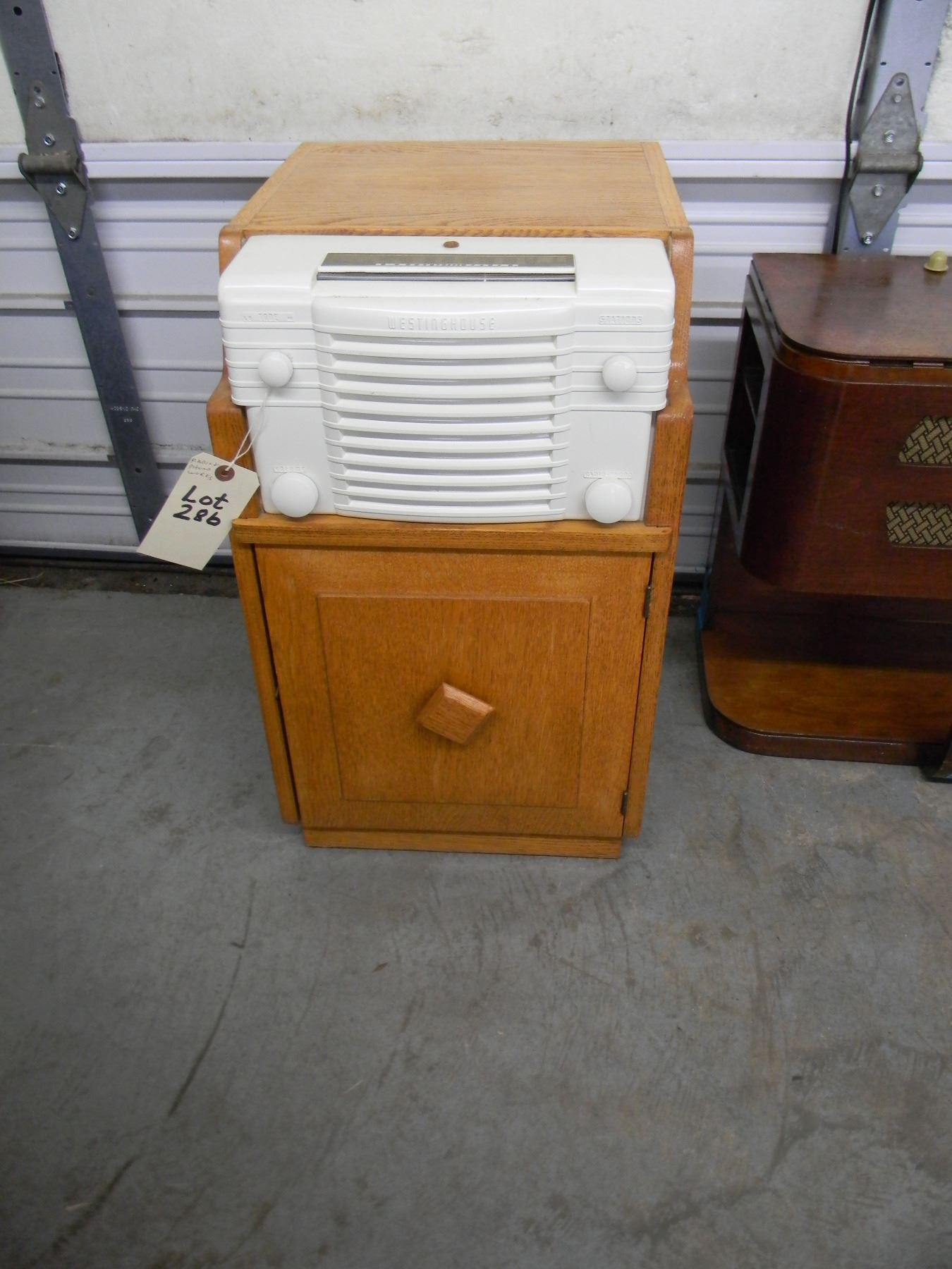 Westinghouse table radio mounted in optional chairside cabinet with phono; all work