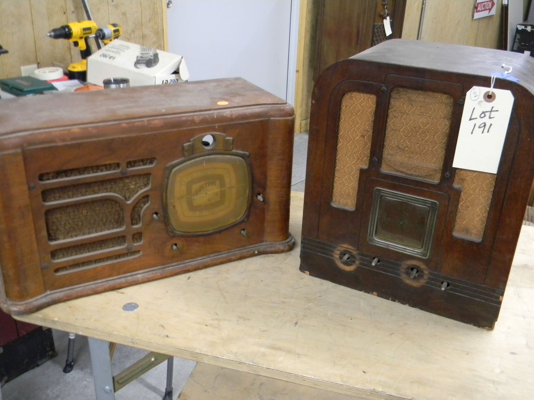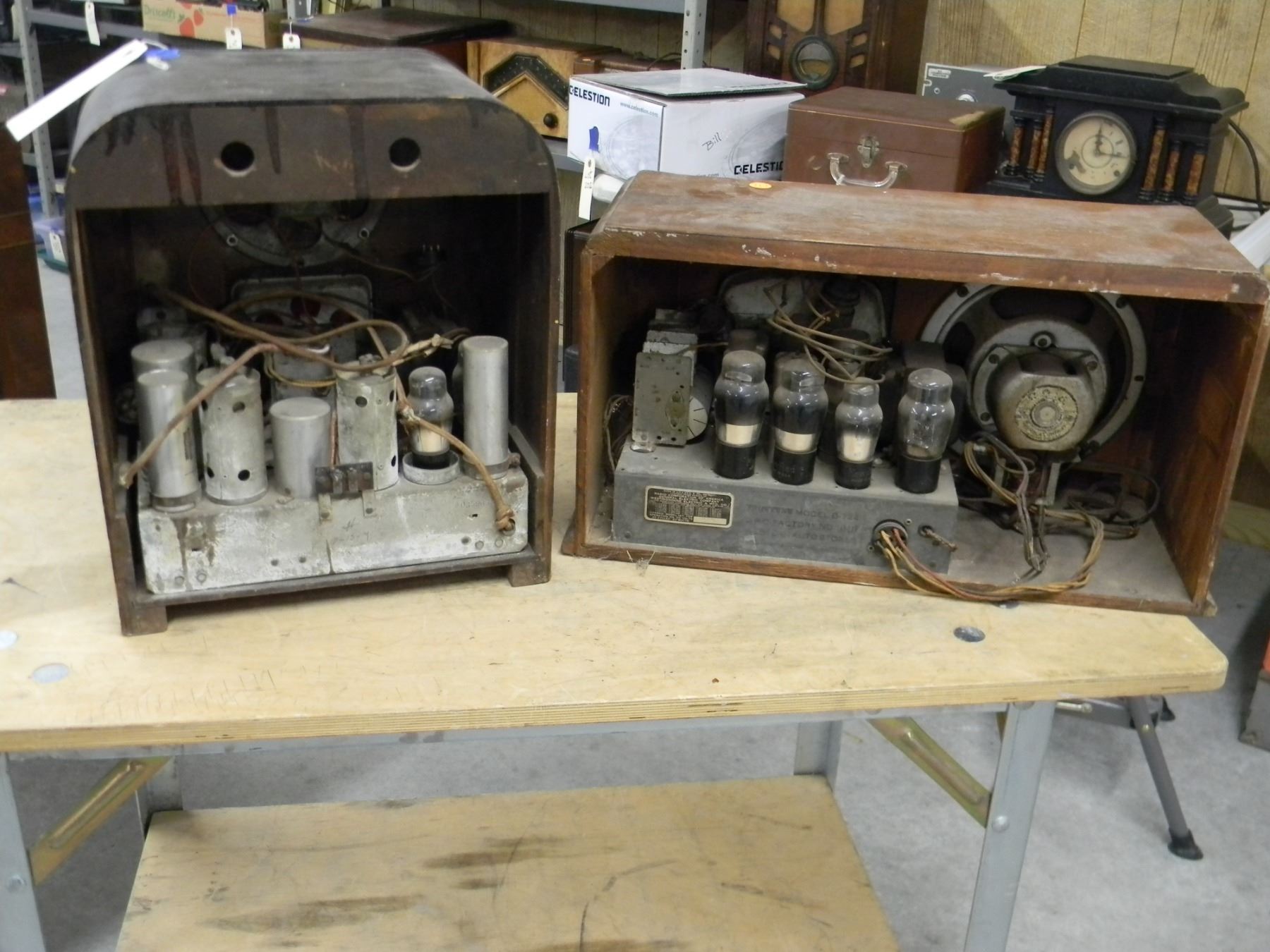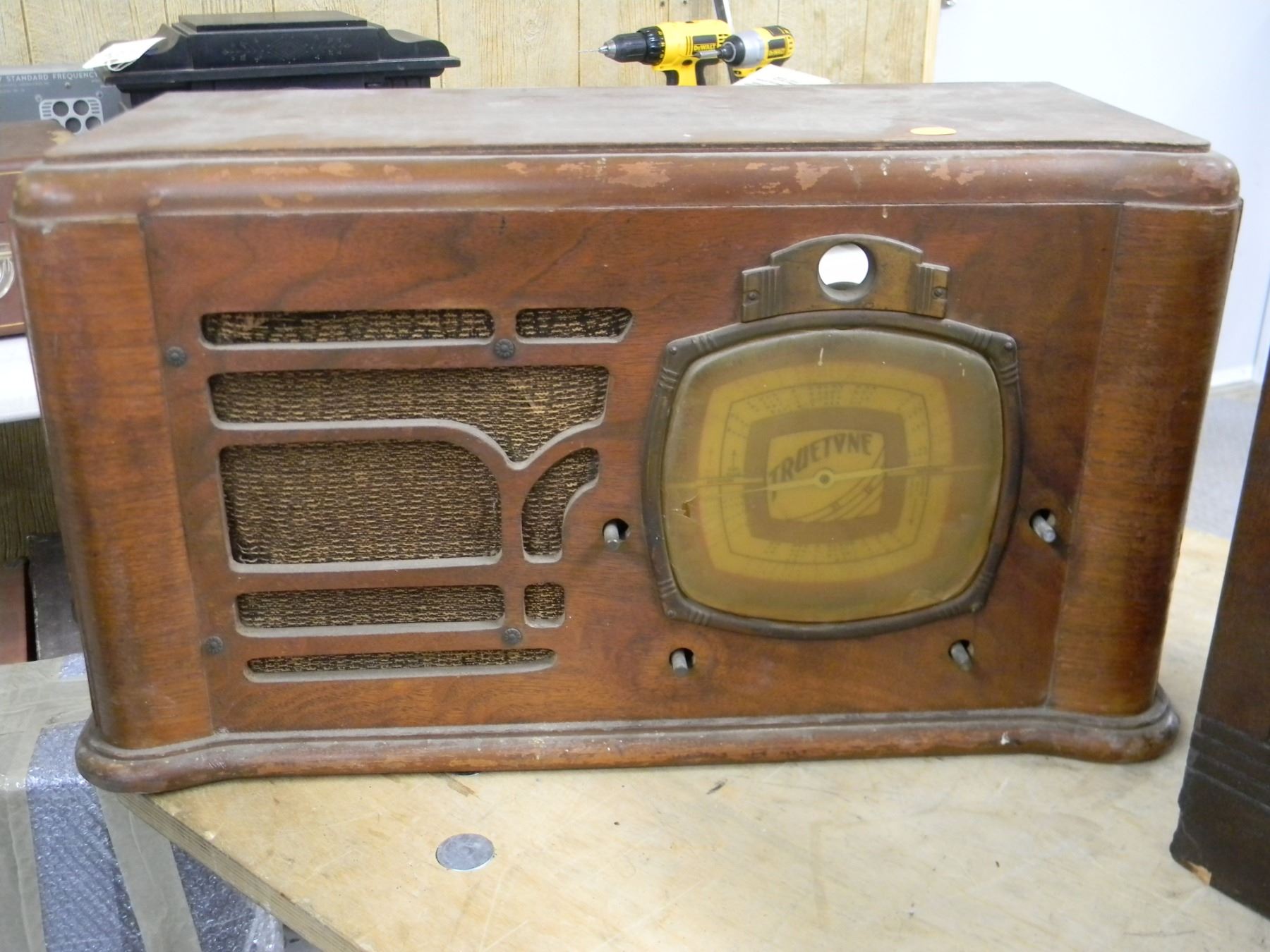 2 radios - General Electric tombstone; Truetone wood table set - model D-724