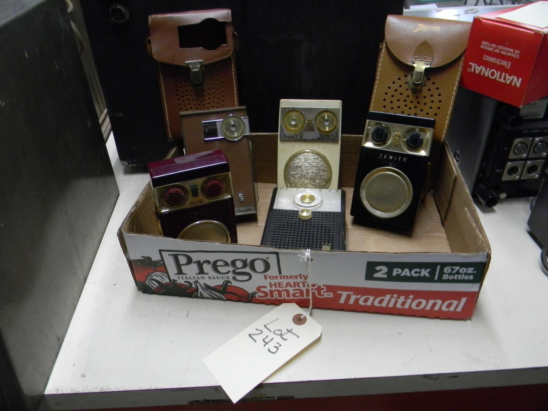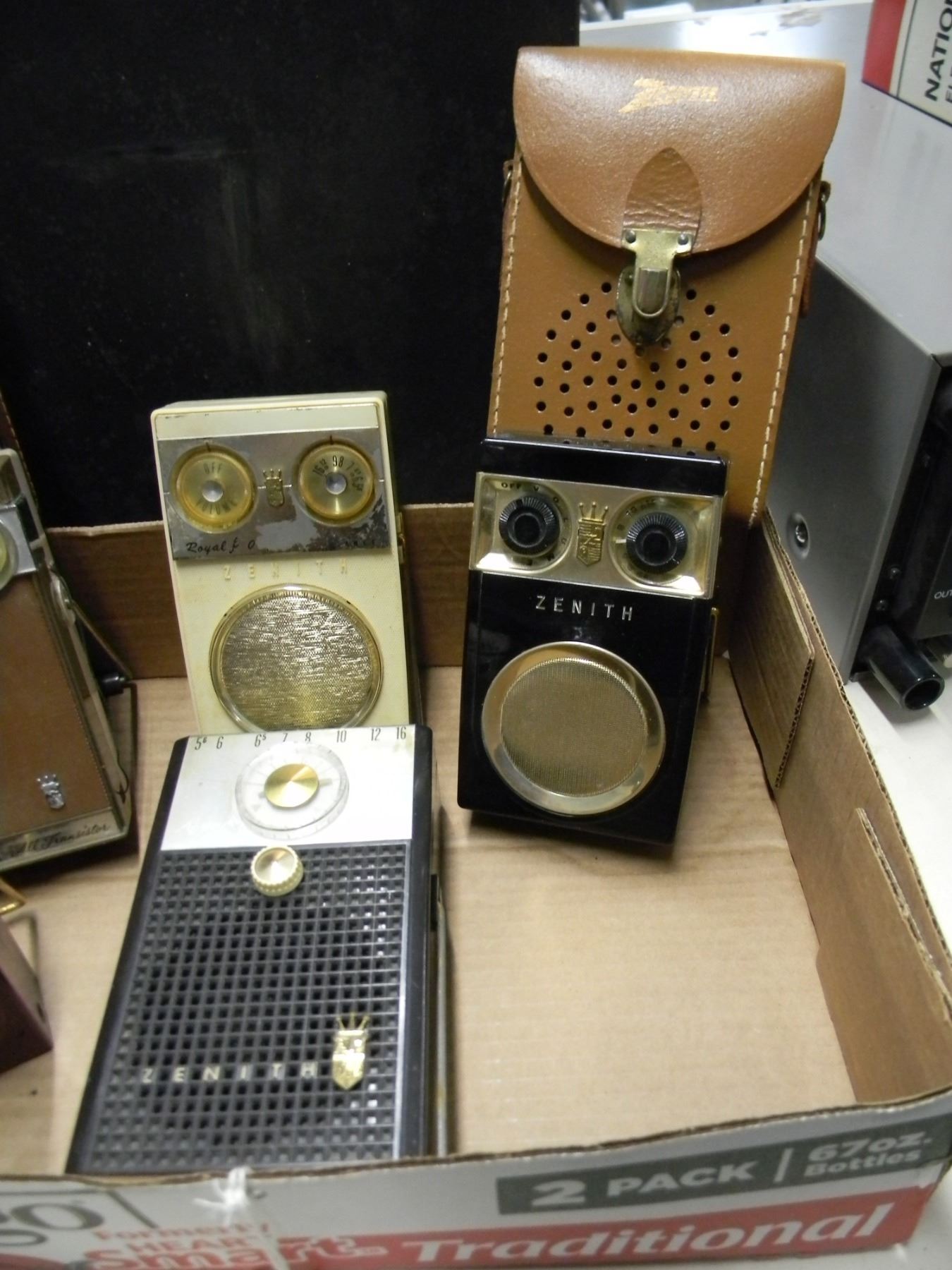 3 Zenith transistor radios; 2 with cases; Royal 200, Royal 400, Royal 500