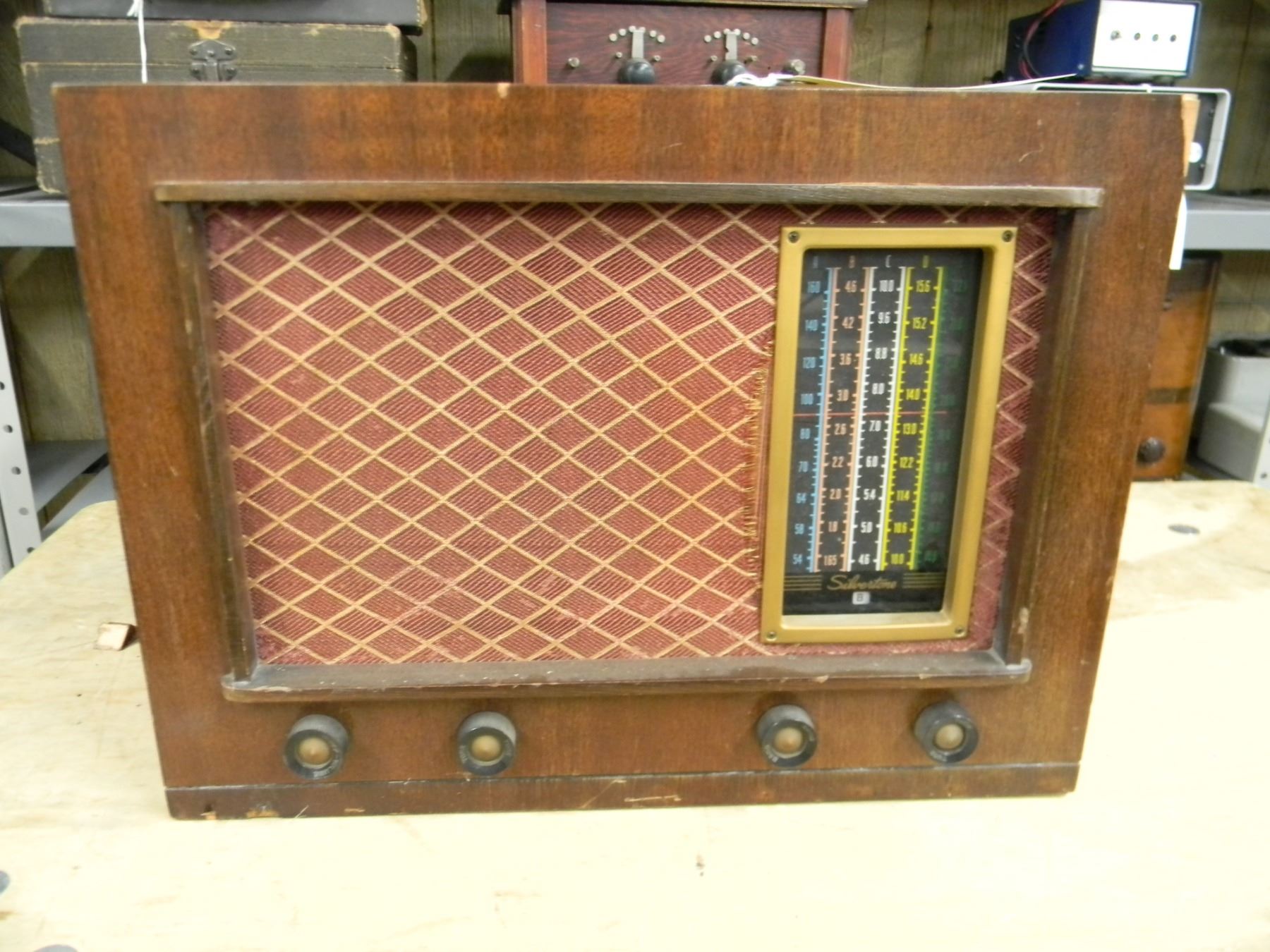 Silvertone wood table set; shortwave and broadcast; model 9054