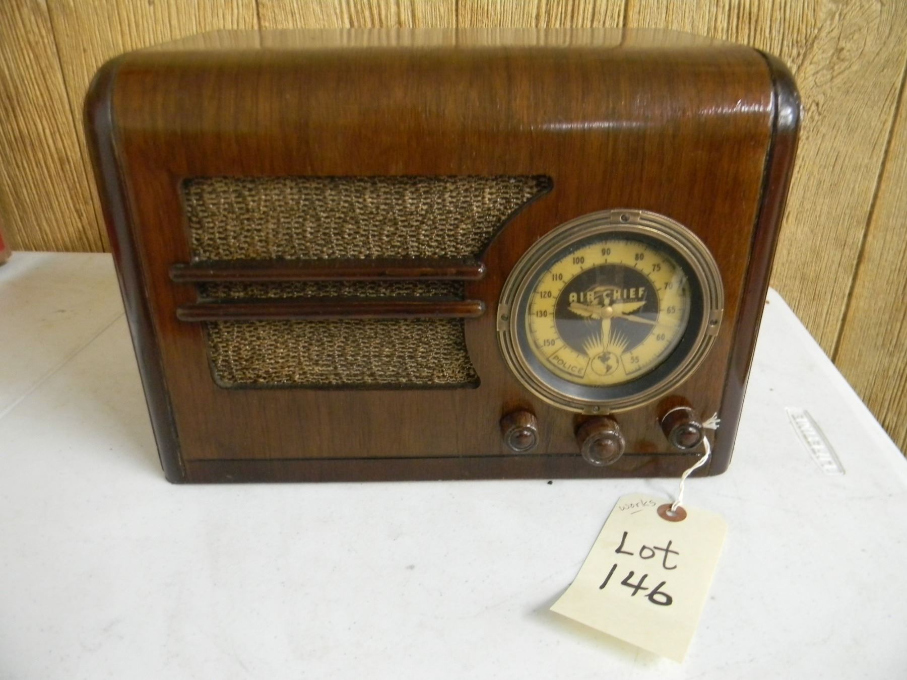 Air Chief wood table top radio; model R-1651-AS; works; nice