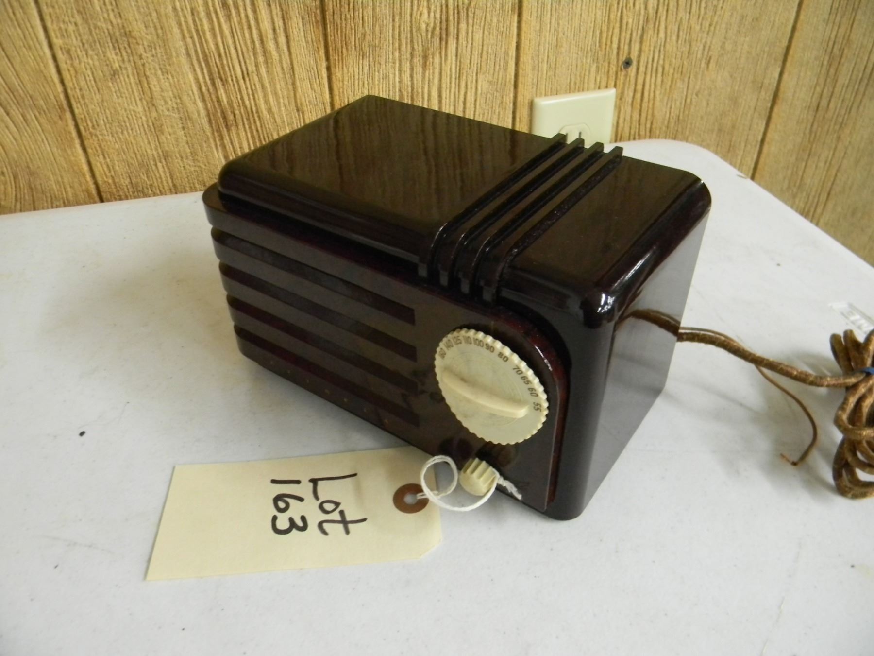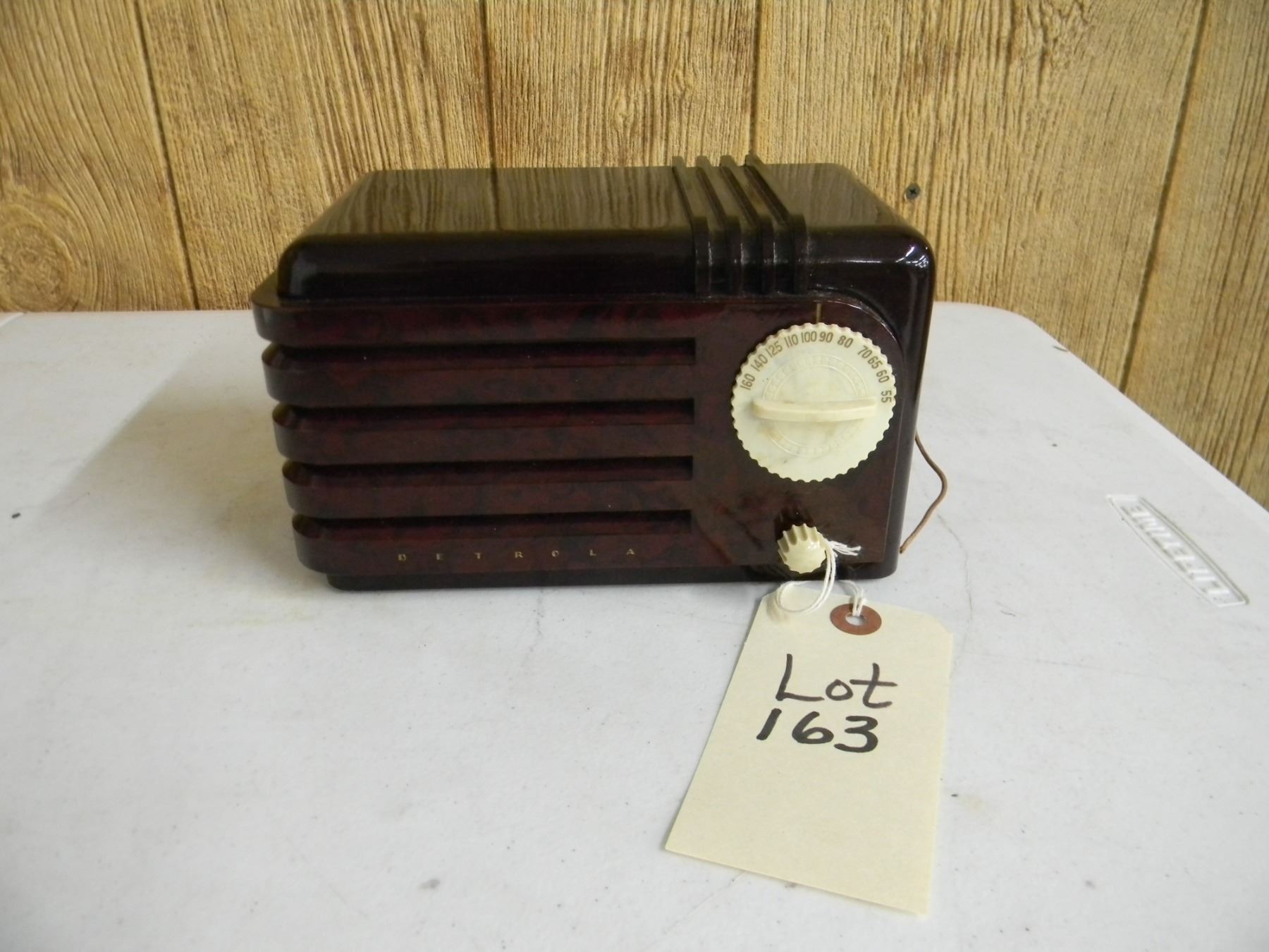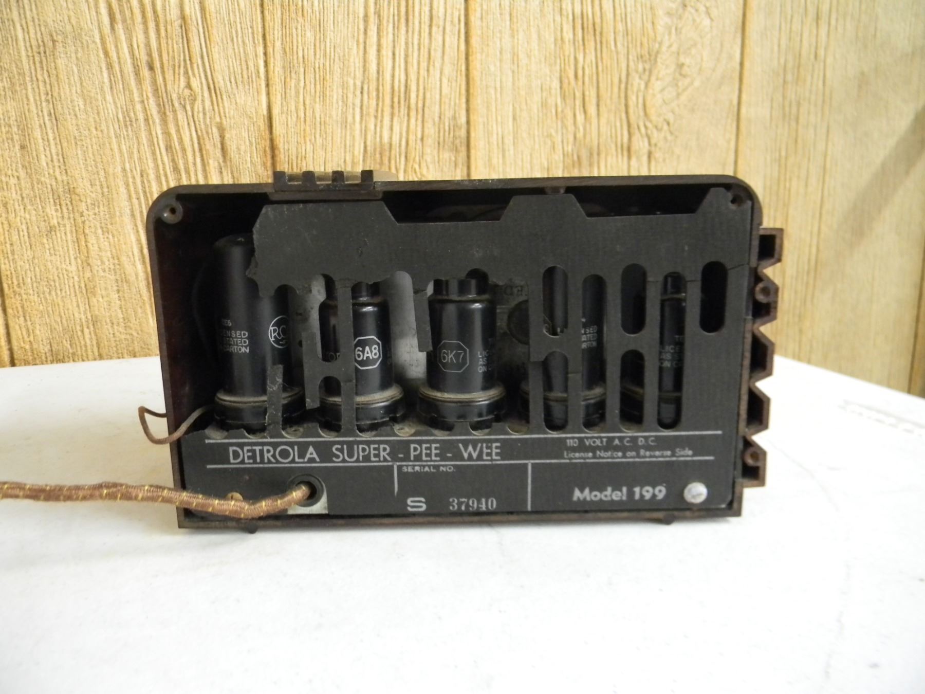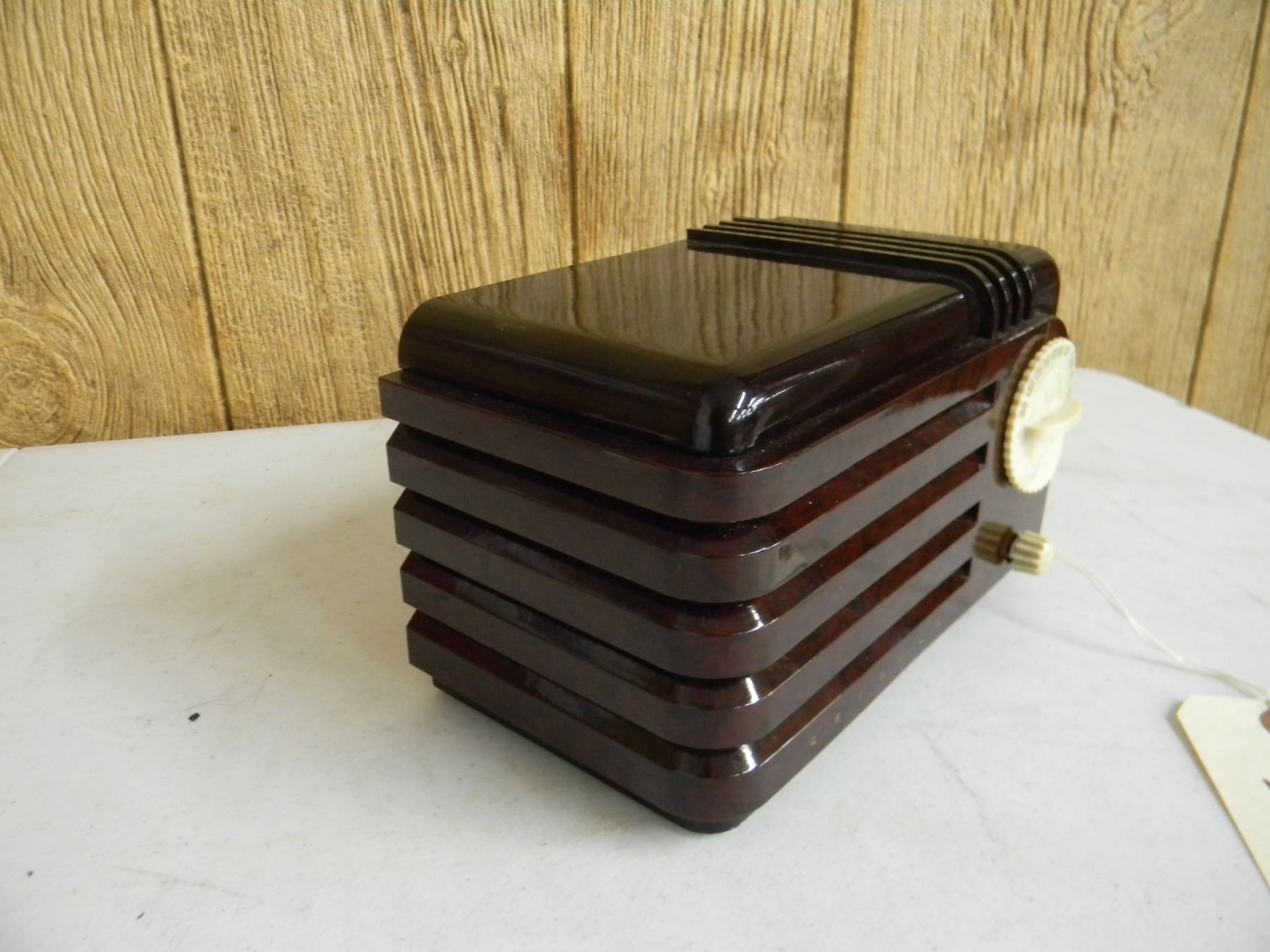 Detrola Super Pee-Wee bakelite table set; 2 tone brown; model 199; no cracks; very nice