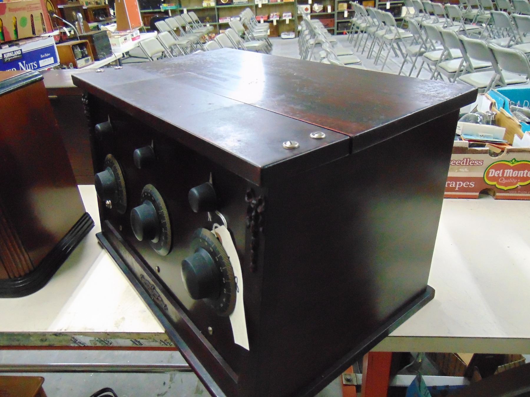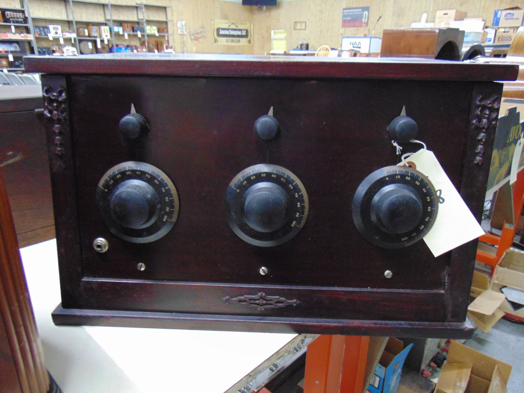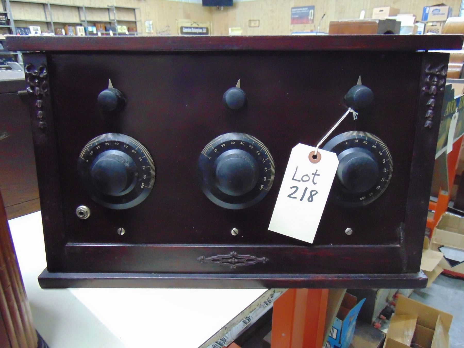 5 tube 3 dial wood radio; probably a kit; includes 5 Silvertone 01A tubes; nice