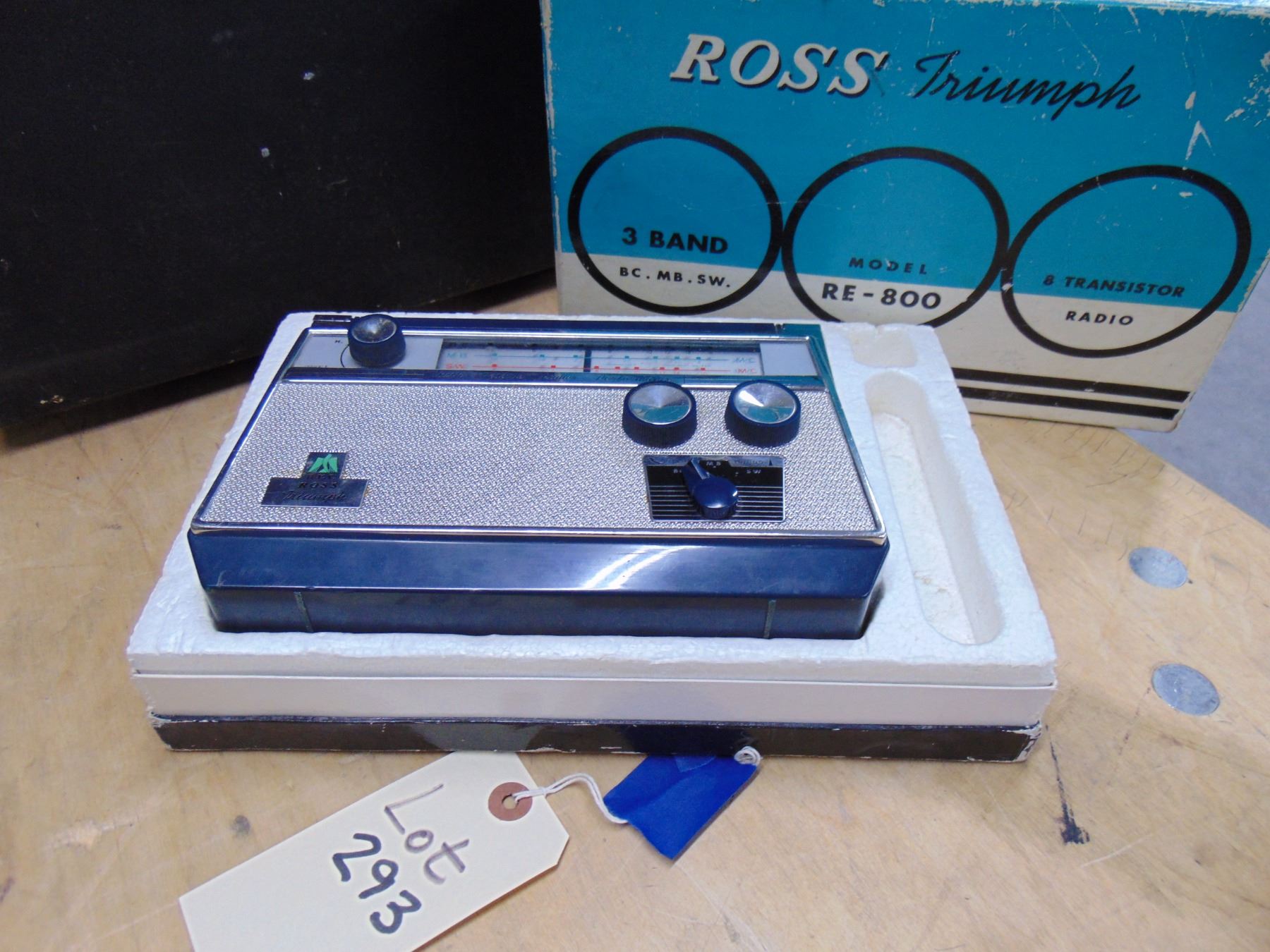Ross Triumph 3 band transistor radio; model RE-800; in original box; nice