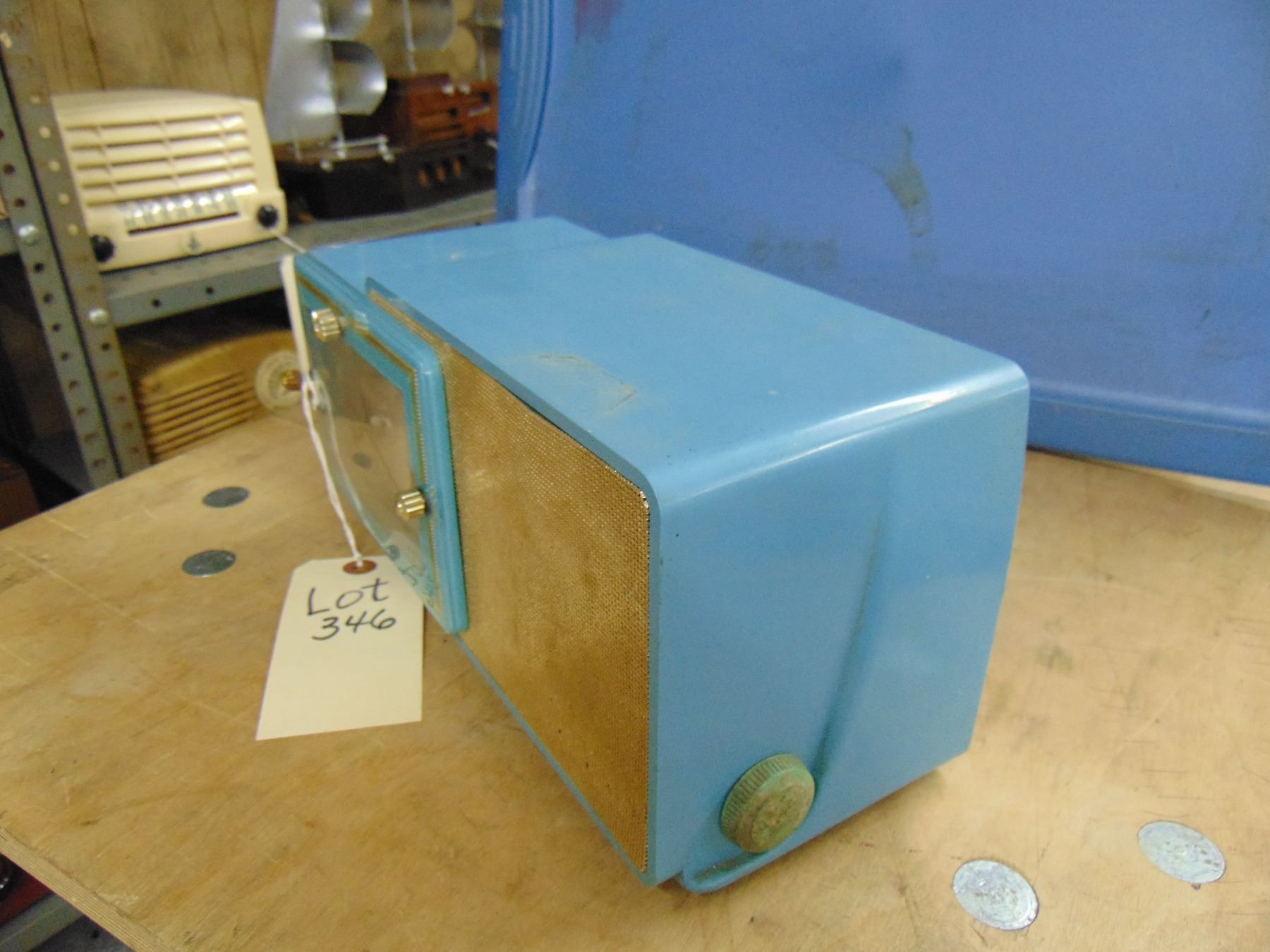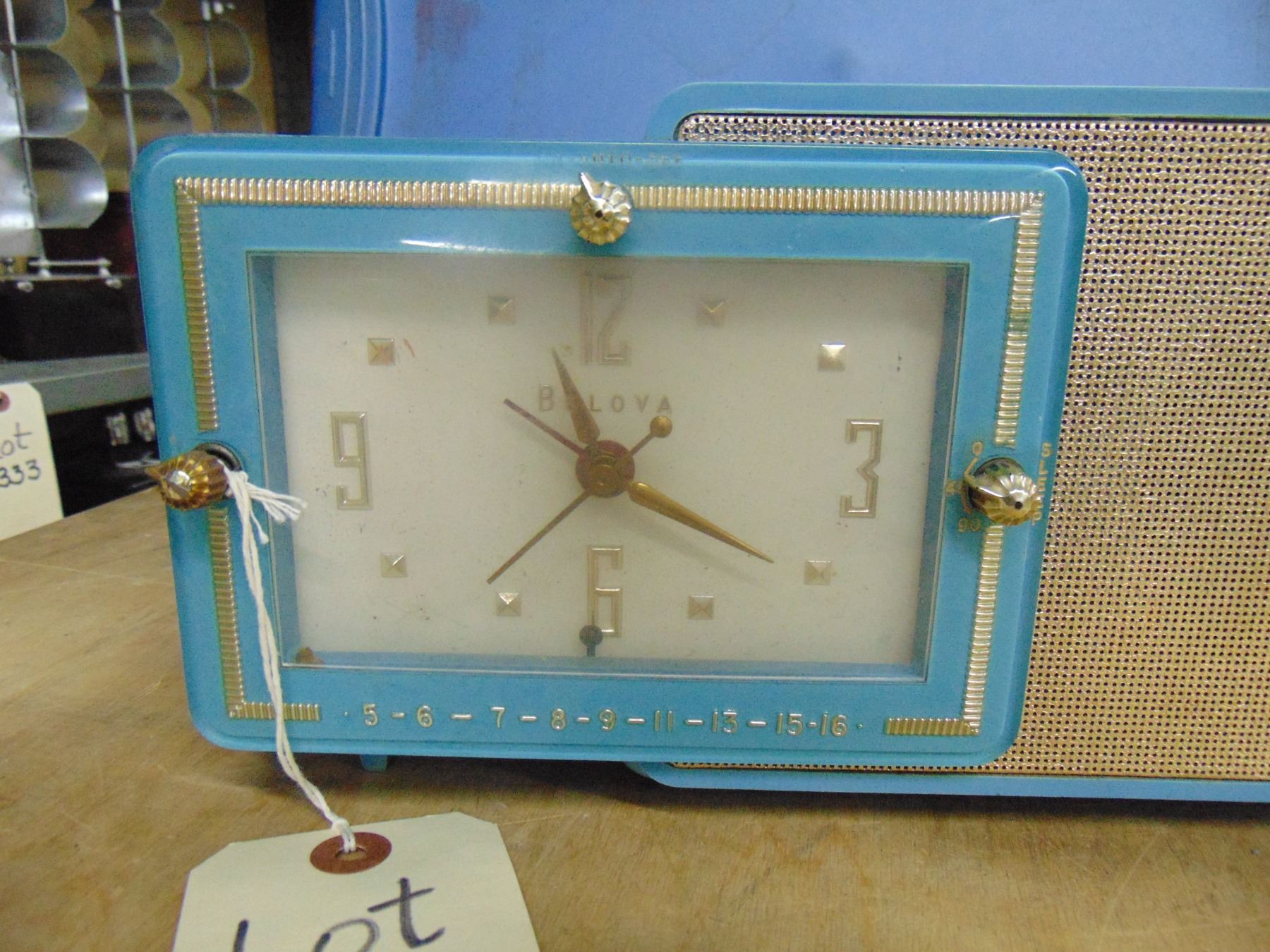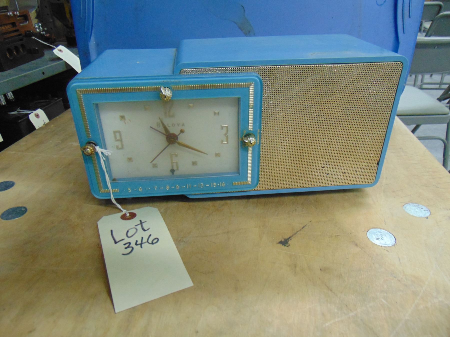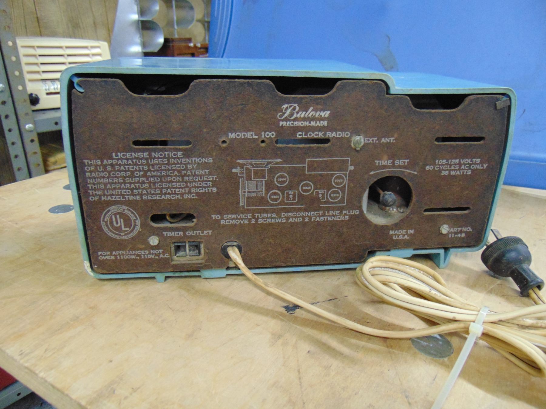 Bulova clock radio; blue; model 100; no cracks; good condition