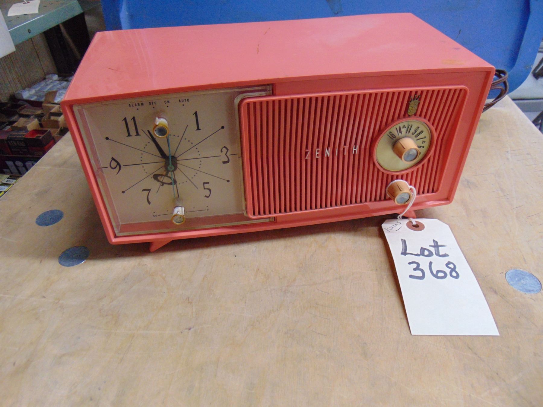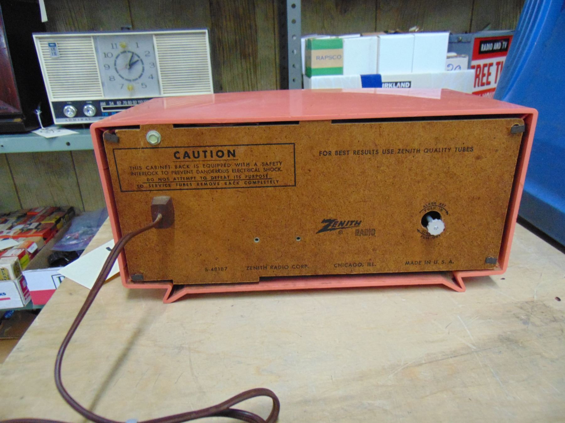 Zenith clock radio; model E514V; rare salmon color; no cracks; clock runs; nice