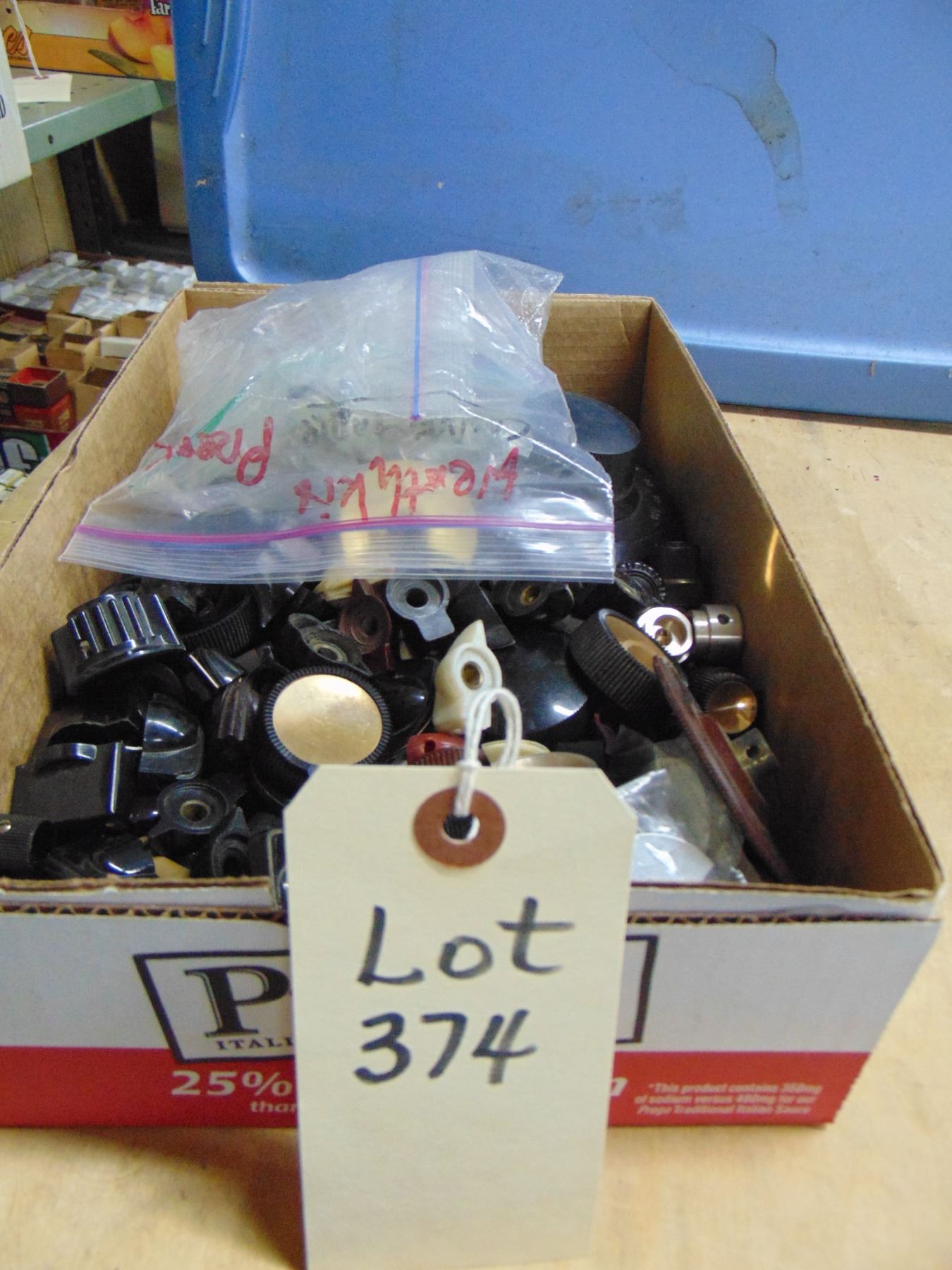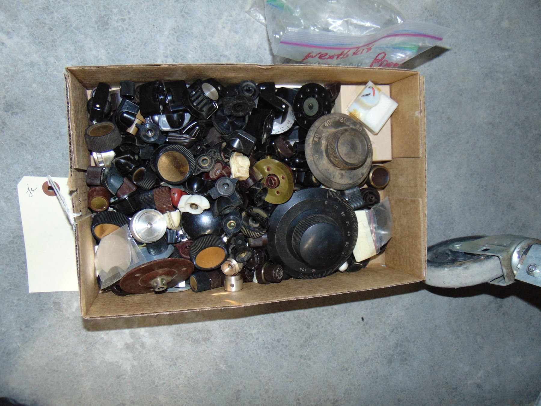 Flat of knobs; miscellaneous radio and audio knobs; including Scott & Fisher