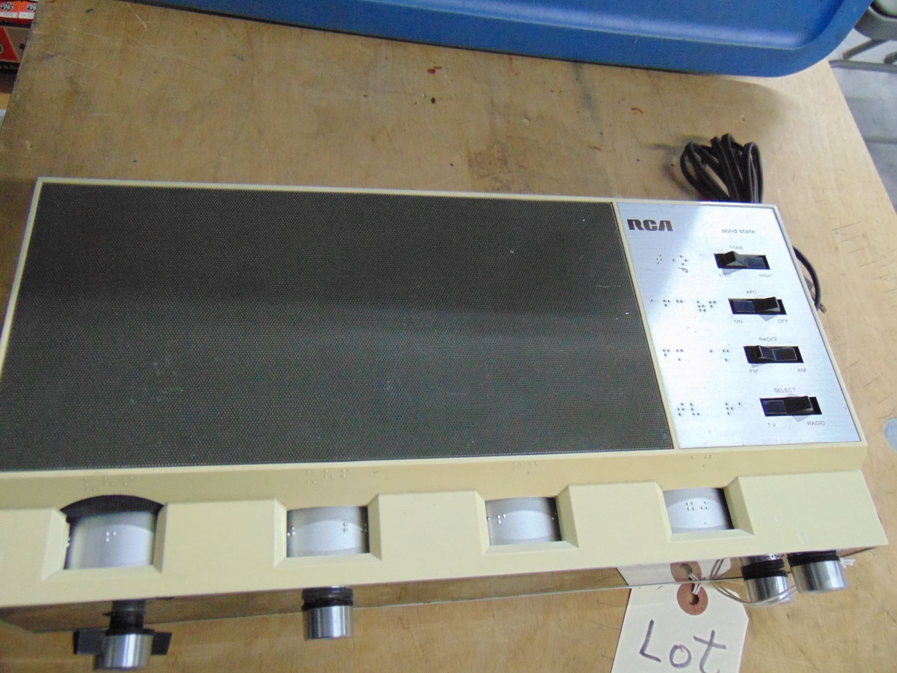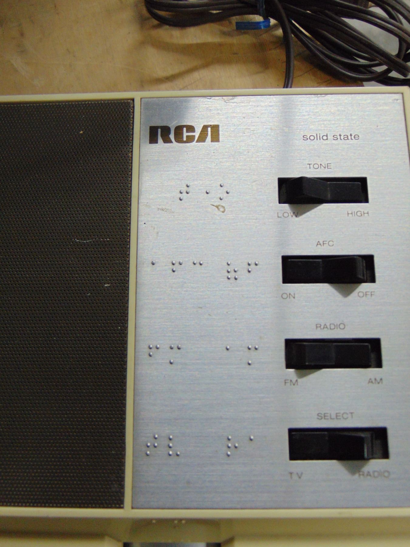 RCA am/fm solid state radio; works; good condition; lettering and numbering in braille