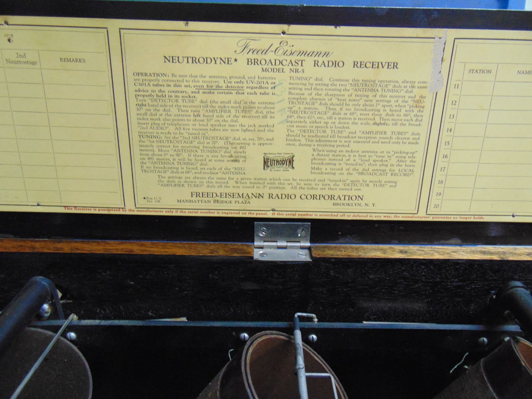 Freed- Eisemann 5 tube set; model NR5; missing 2 knobs; with display tubes; nice