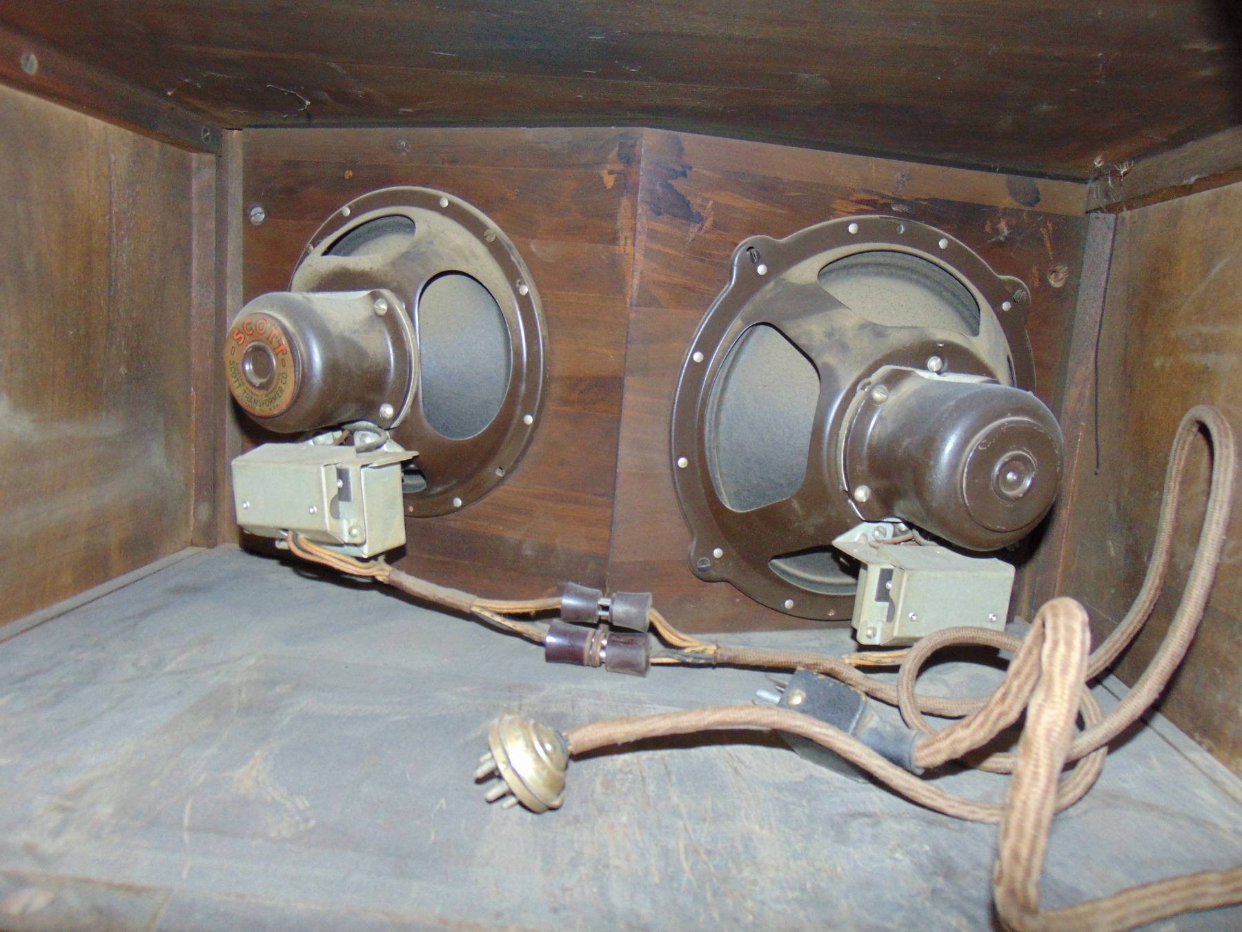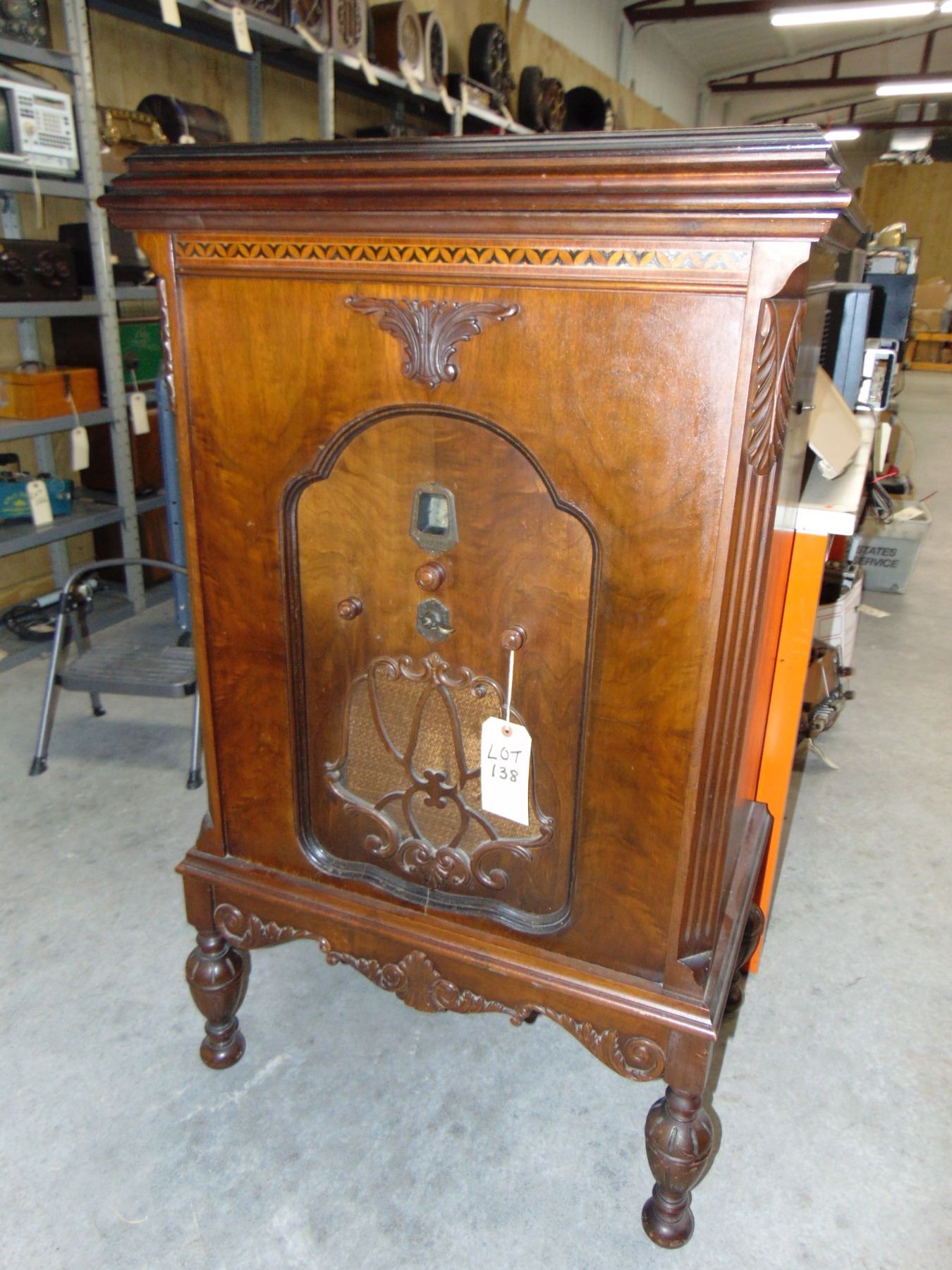 Scott All Wave console; 12 tubes; speaker grill has some damage, but otherwise nice