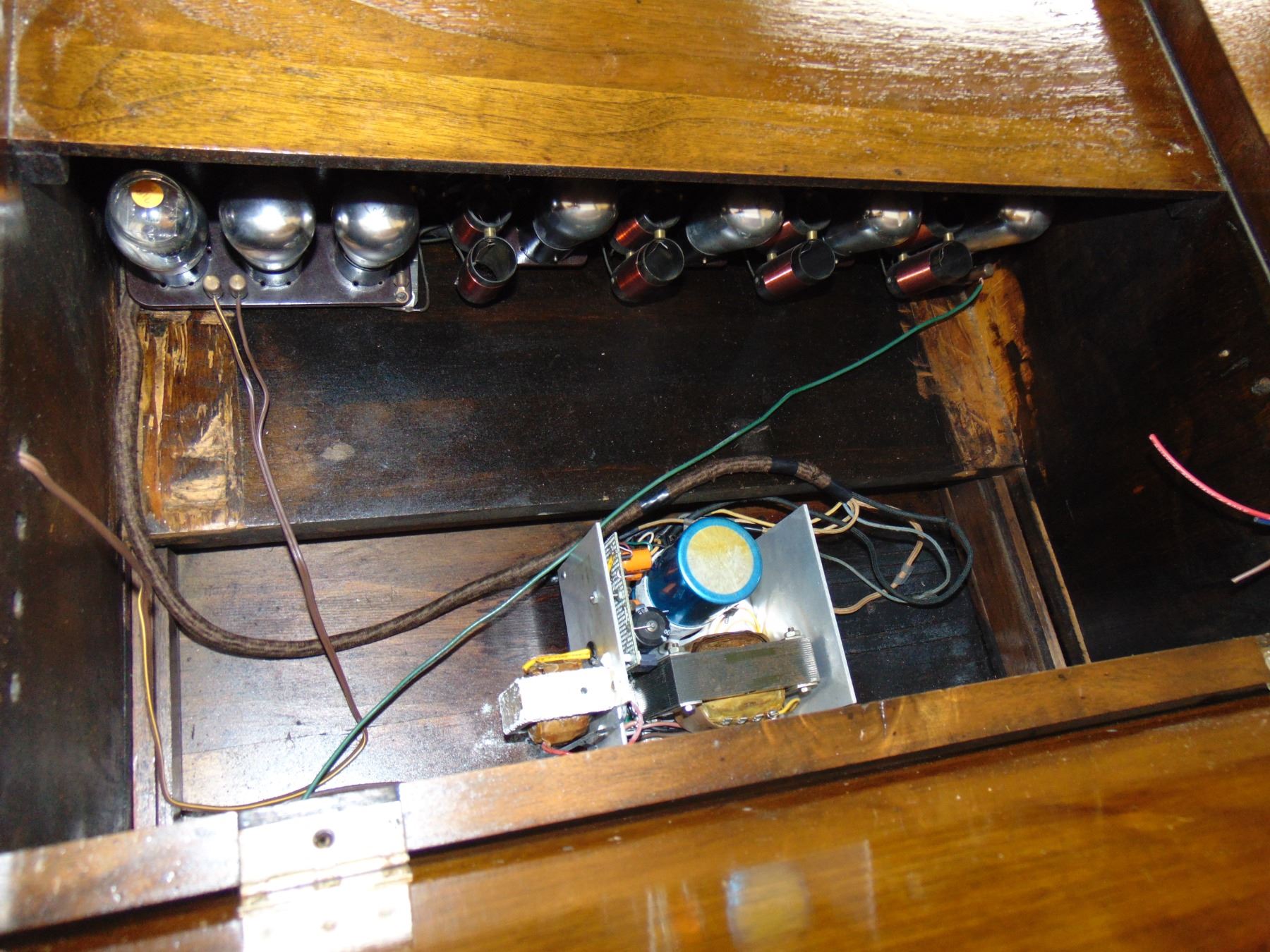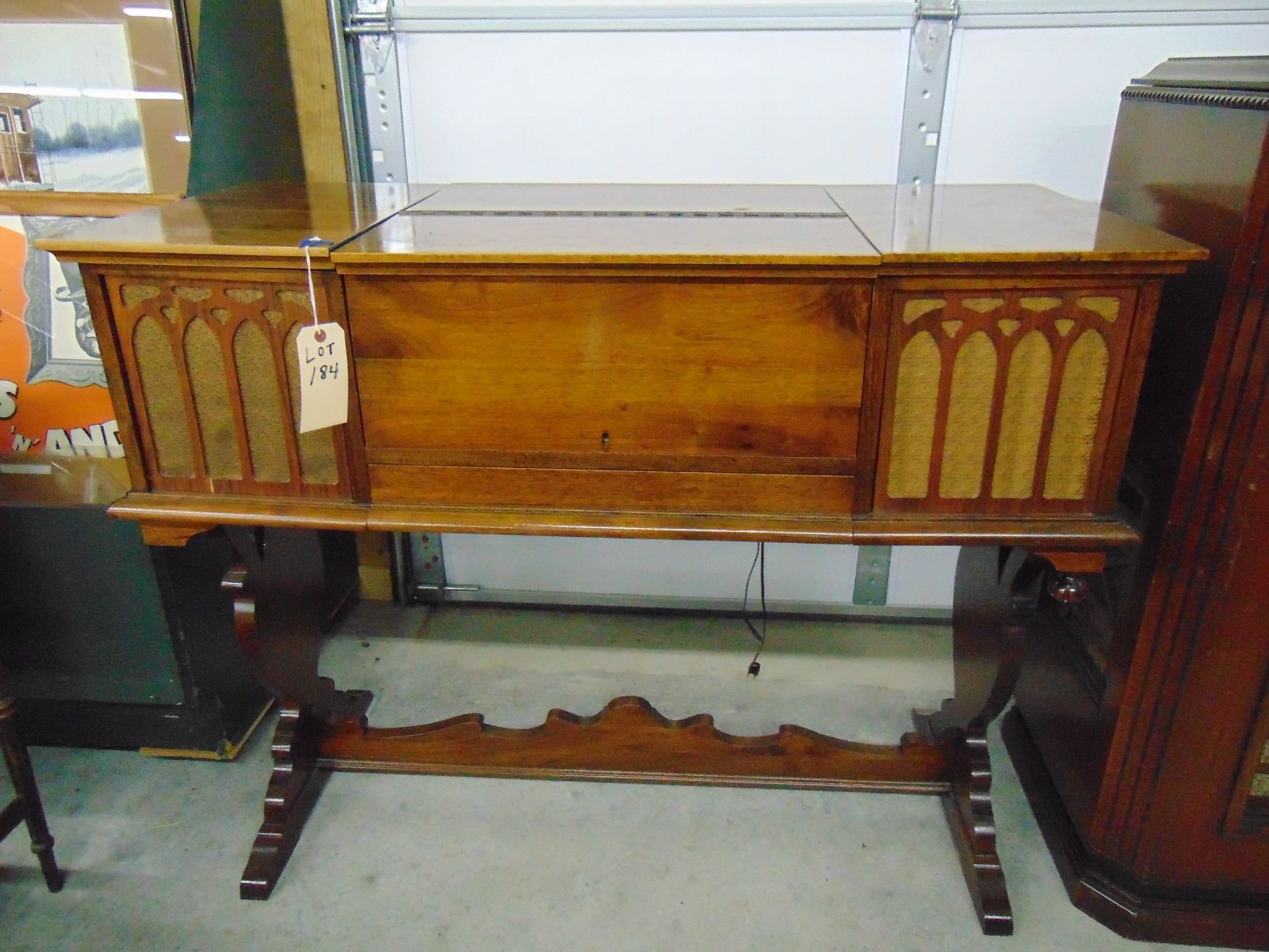 Atwater Kent model 32; with 7 tubes; large desk console; has built in power supply; with dummy batteries for show; with hidden lap drawer; very nice