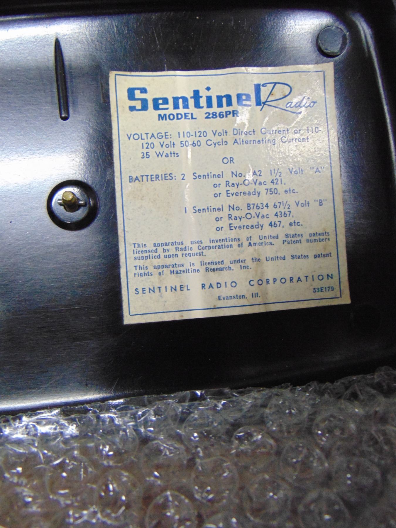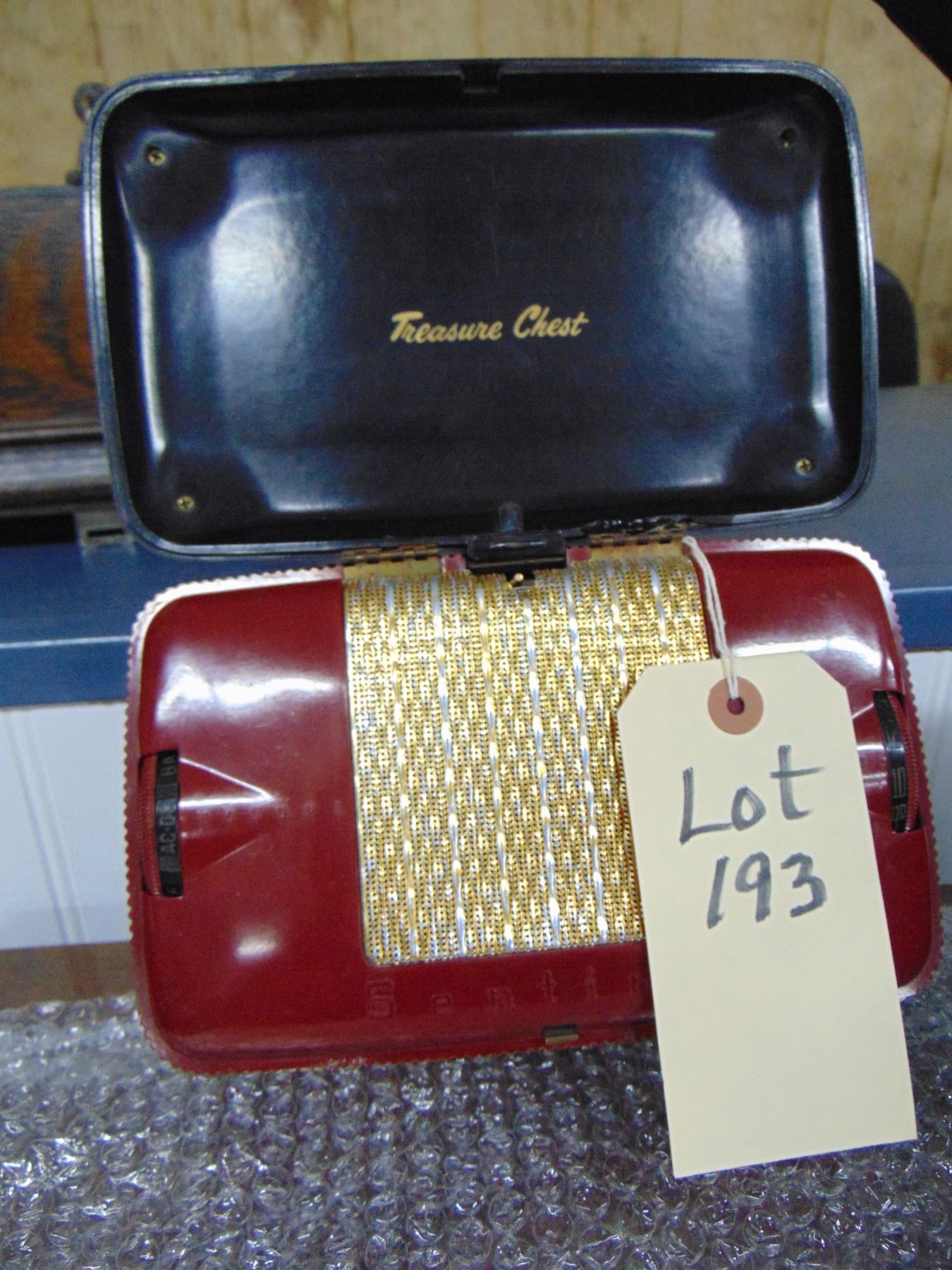 Sentinel Treasure Chest radio; model 286PR; very nice; damage nicely repaired on inside hinge; works
