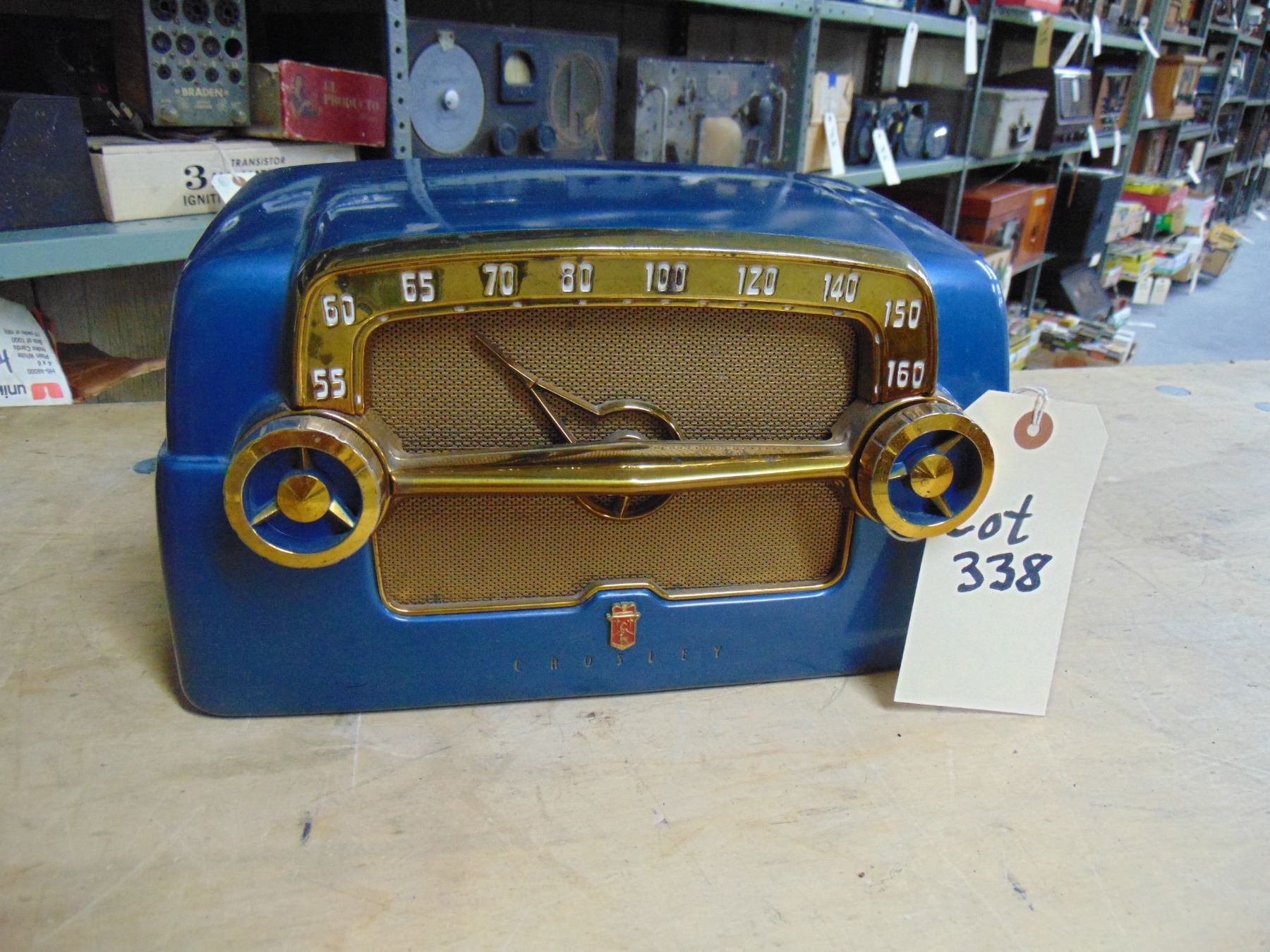 Crosley blue radio; model E-15BE; no cracks; very nice; hums, but plays