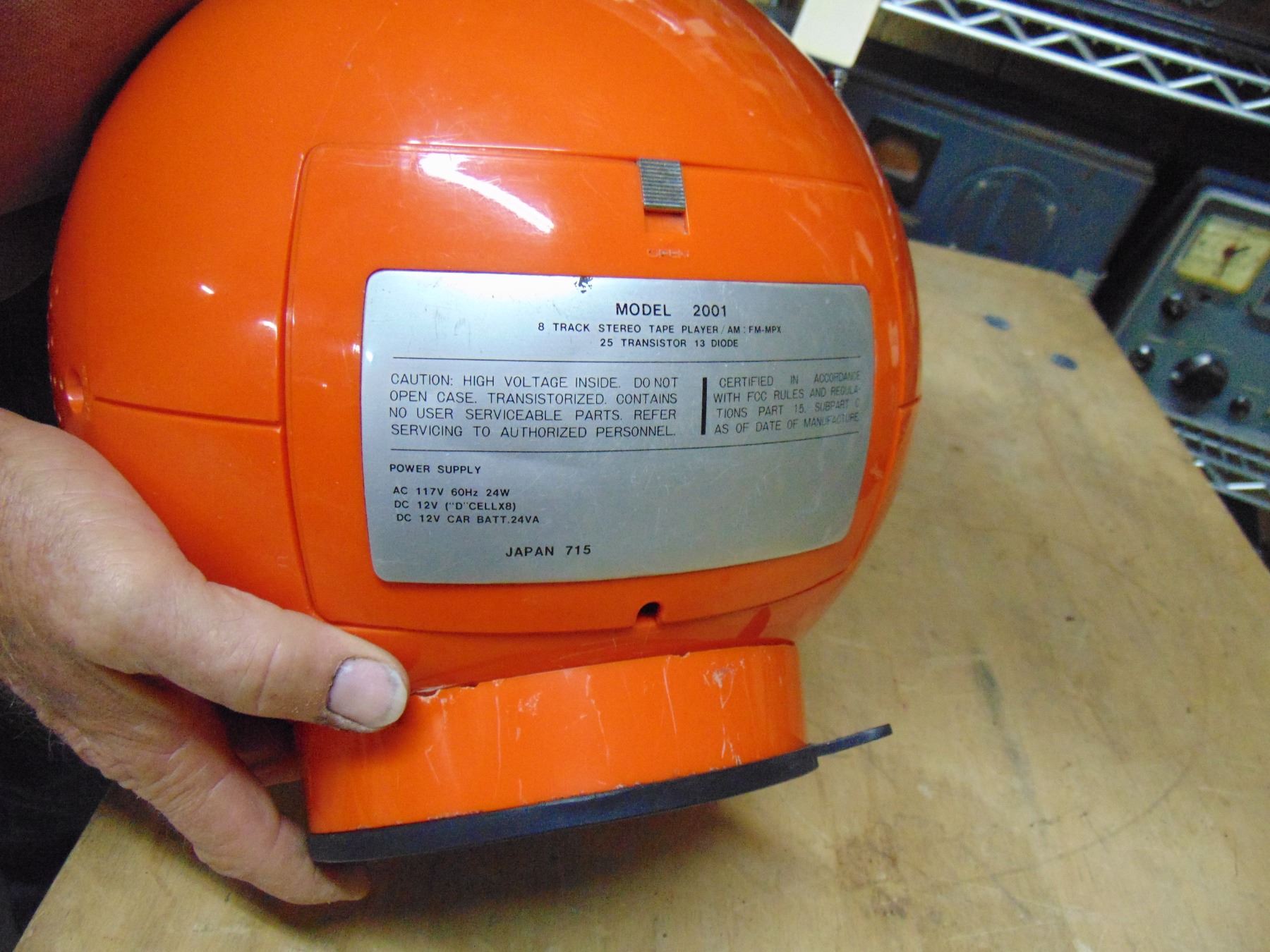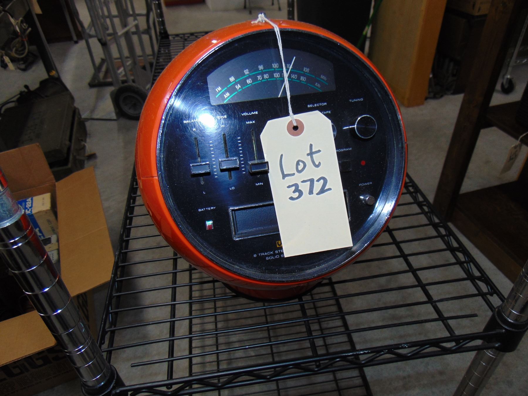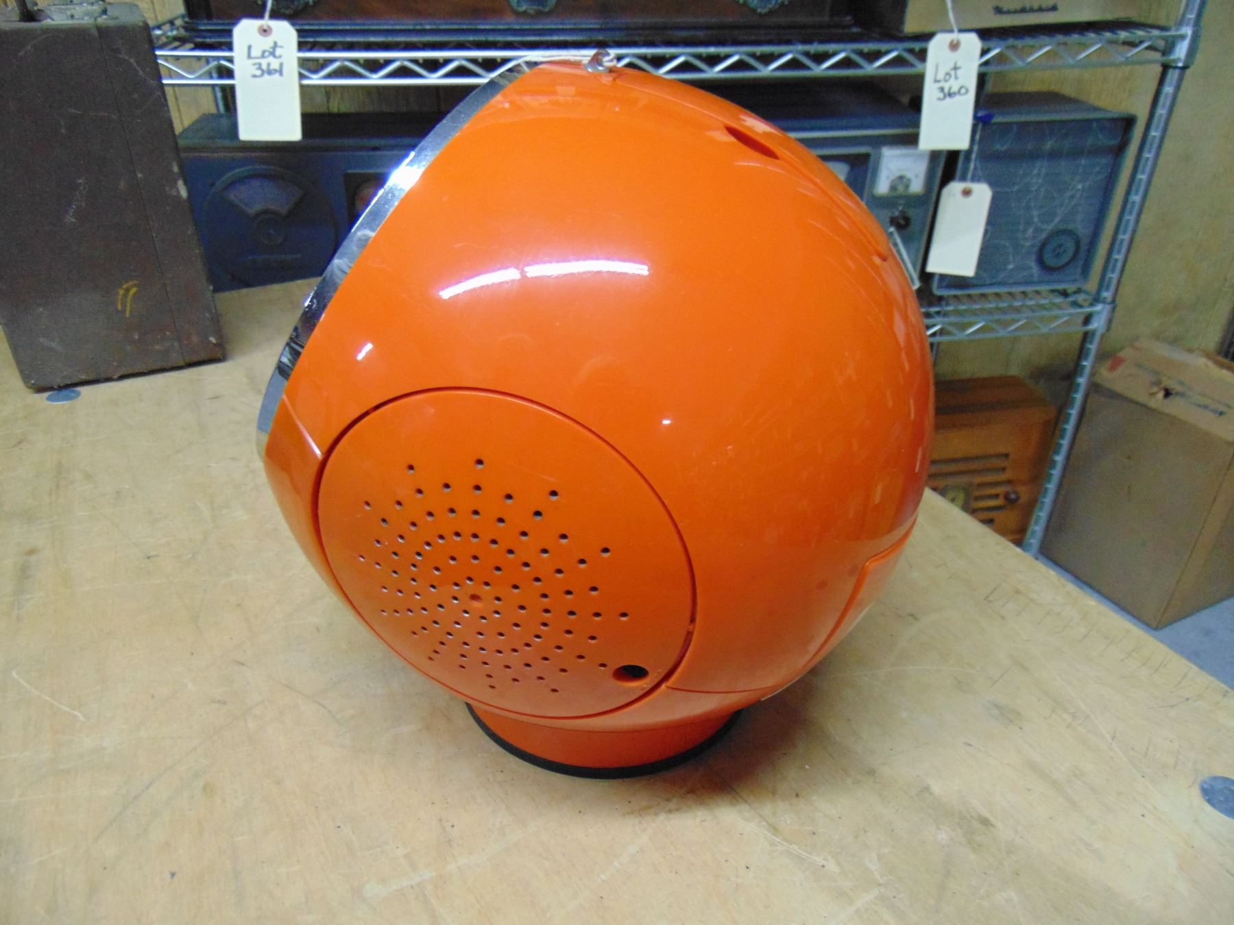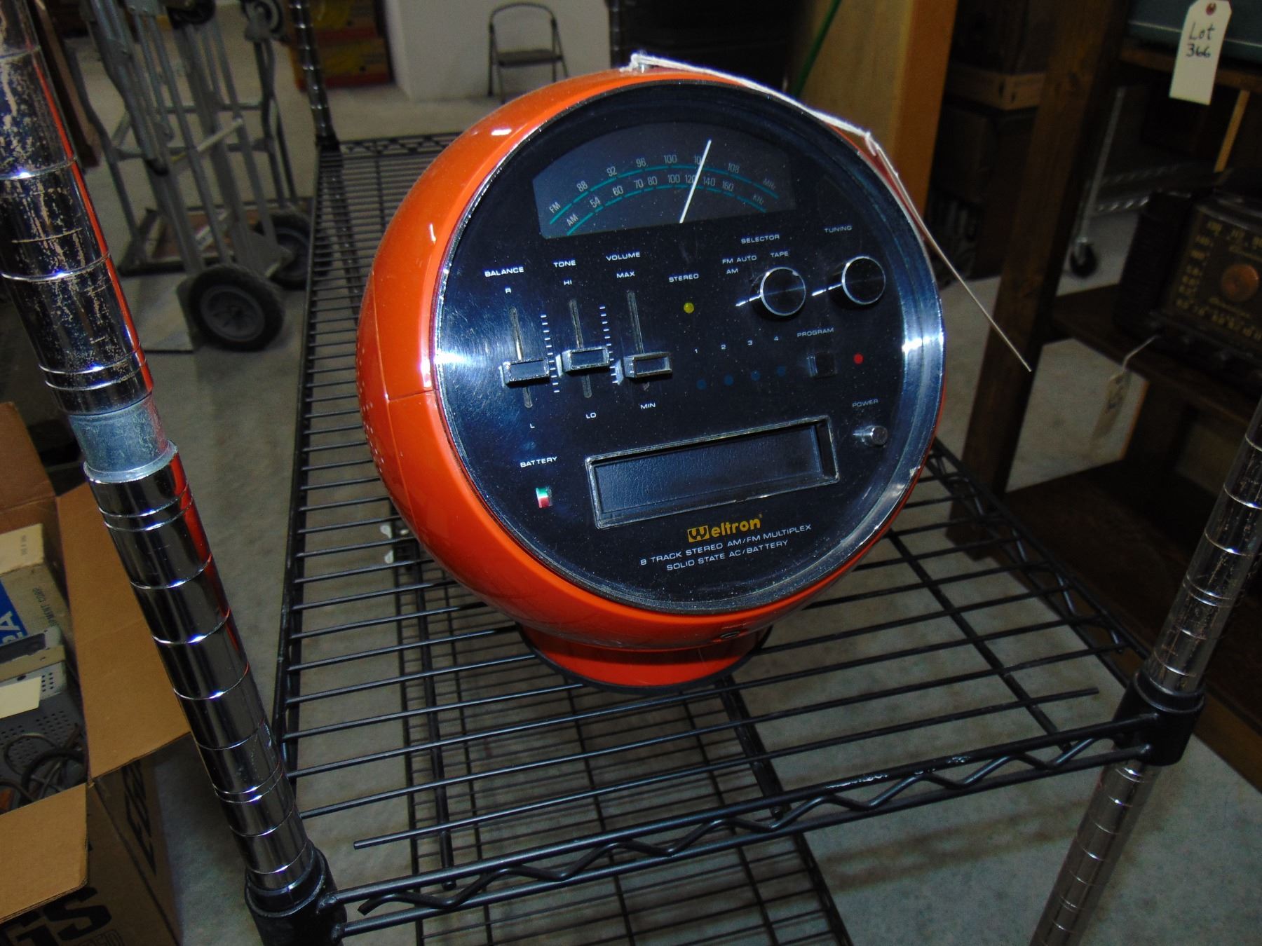 Weltron 8 track am/fm radio; "space ball"; orange; about 11" across and a foot high; very nice; missing power cord
