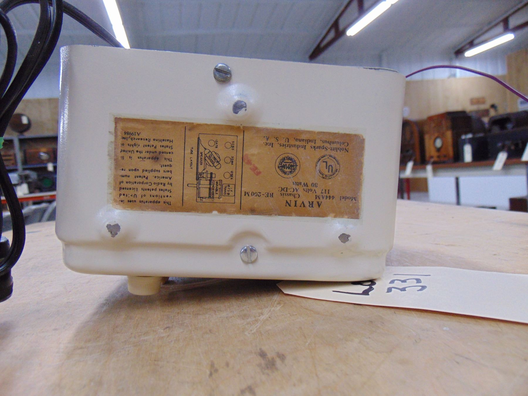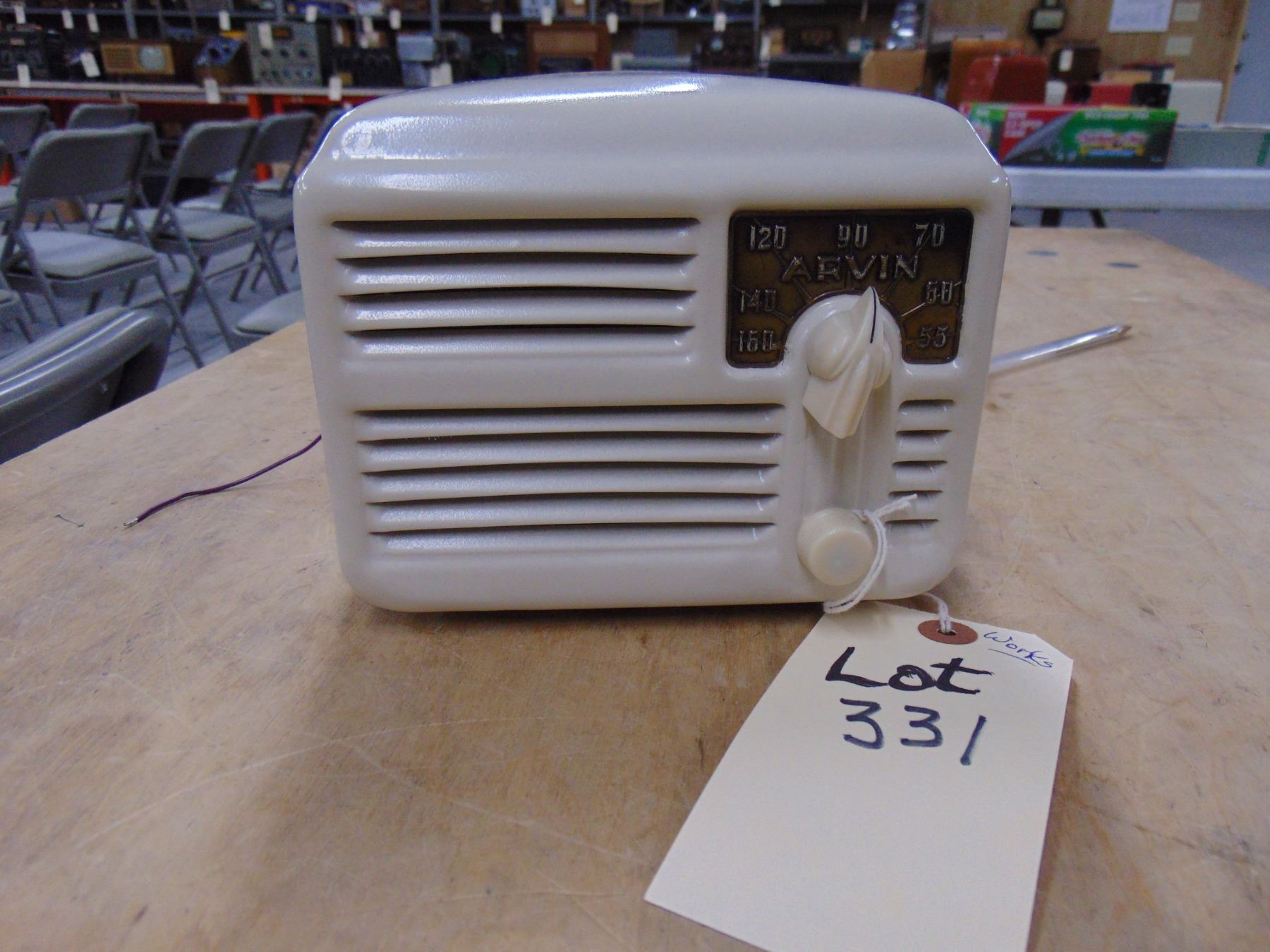 Arvin small white metal radio ml 444AM; works