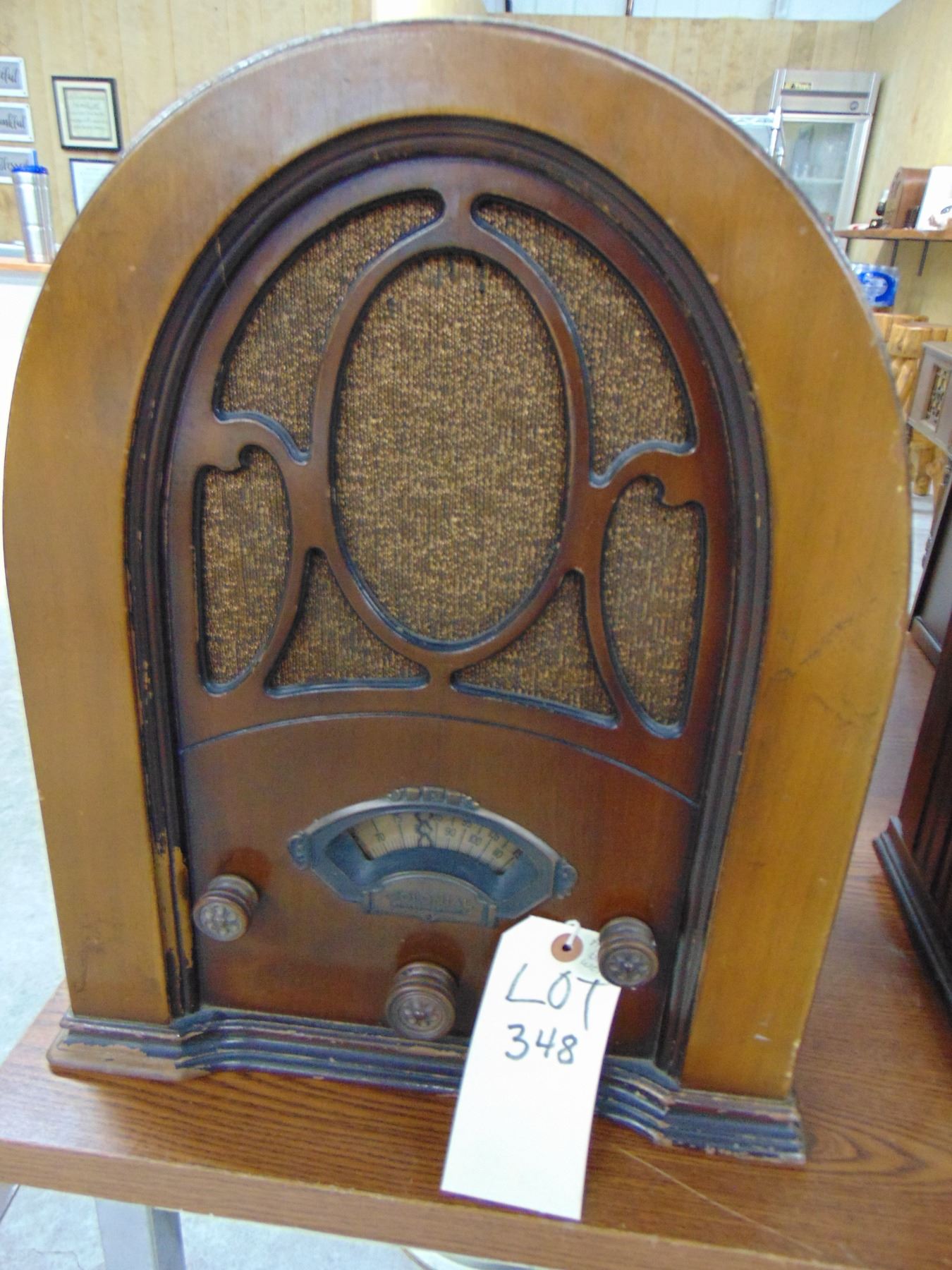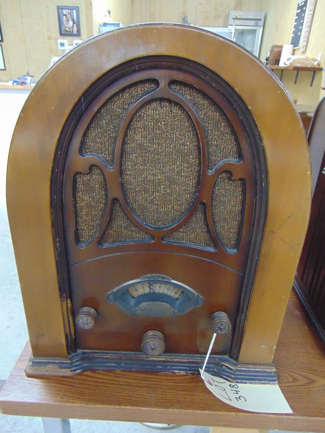 Colonial cathedral; early; model T345; hum, but plays; nice