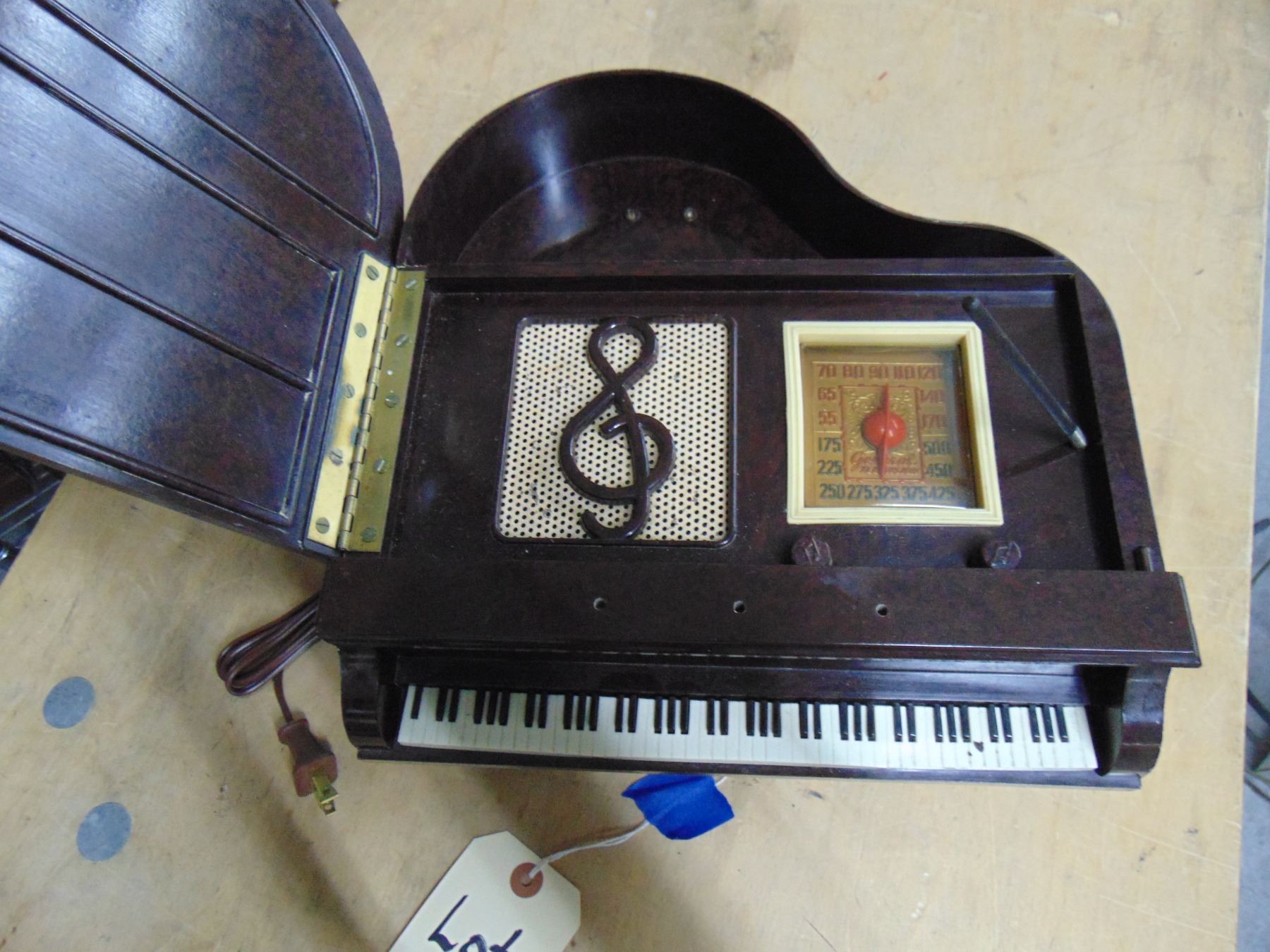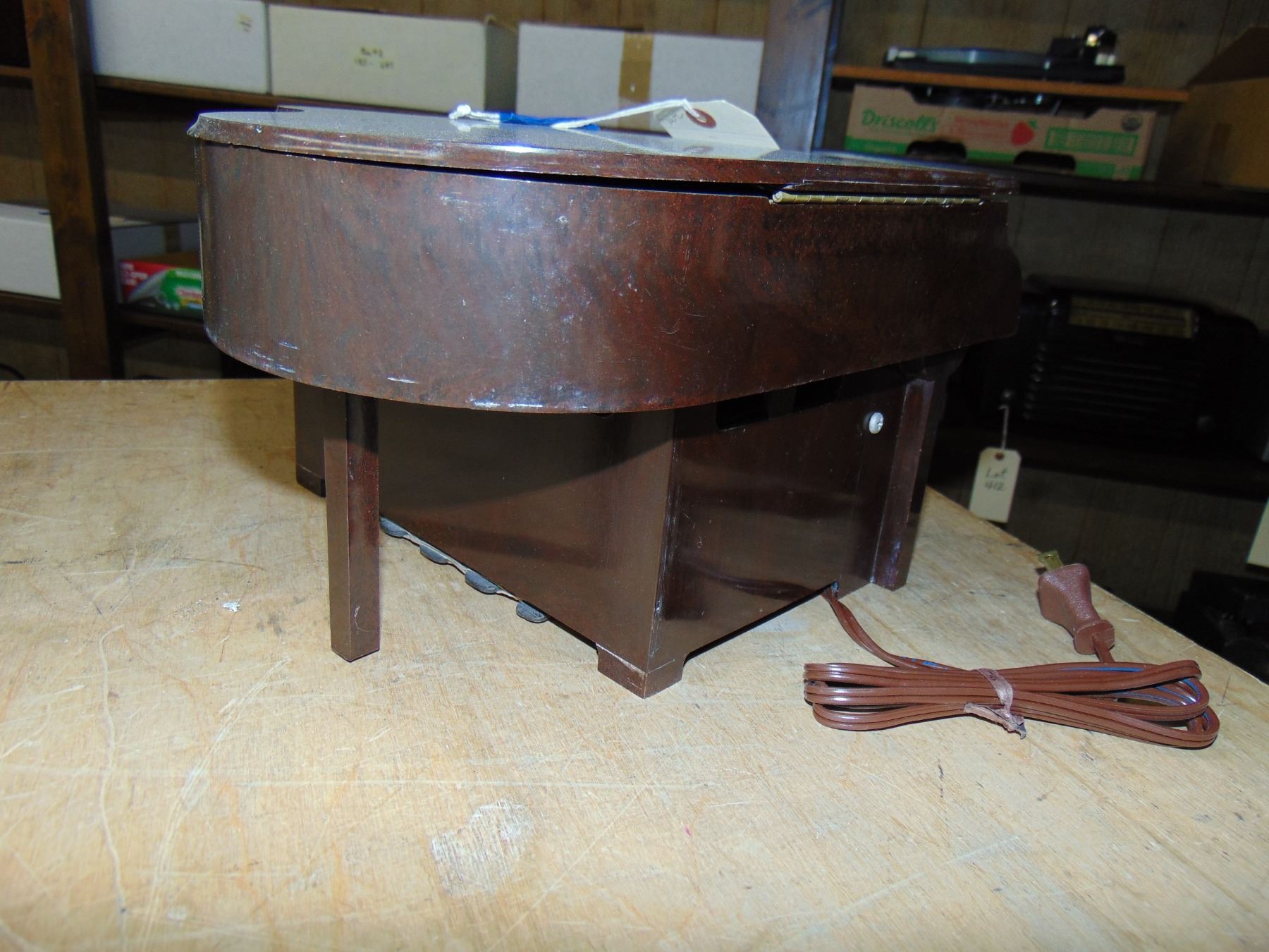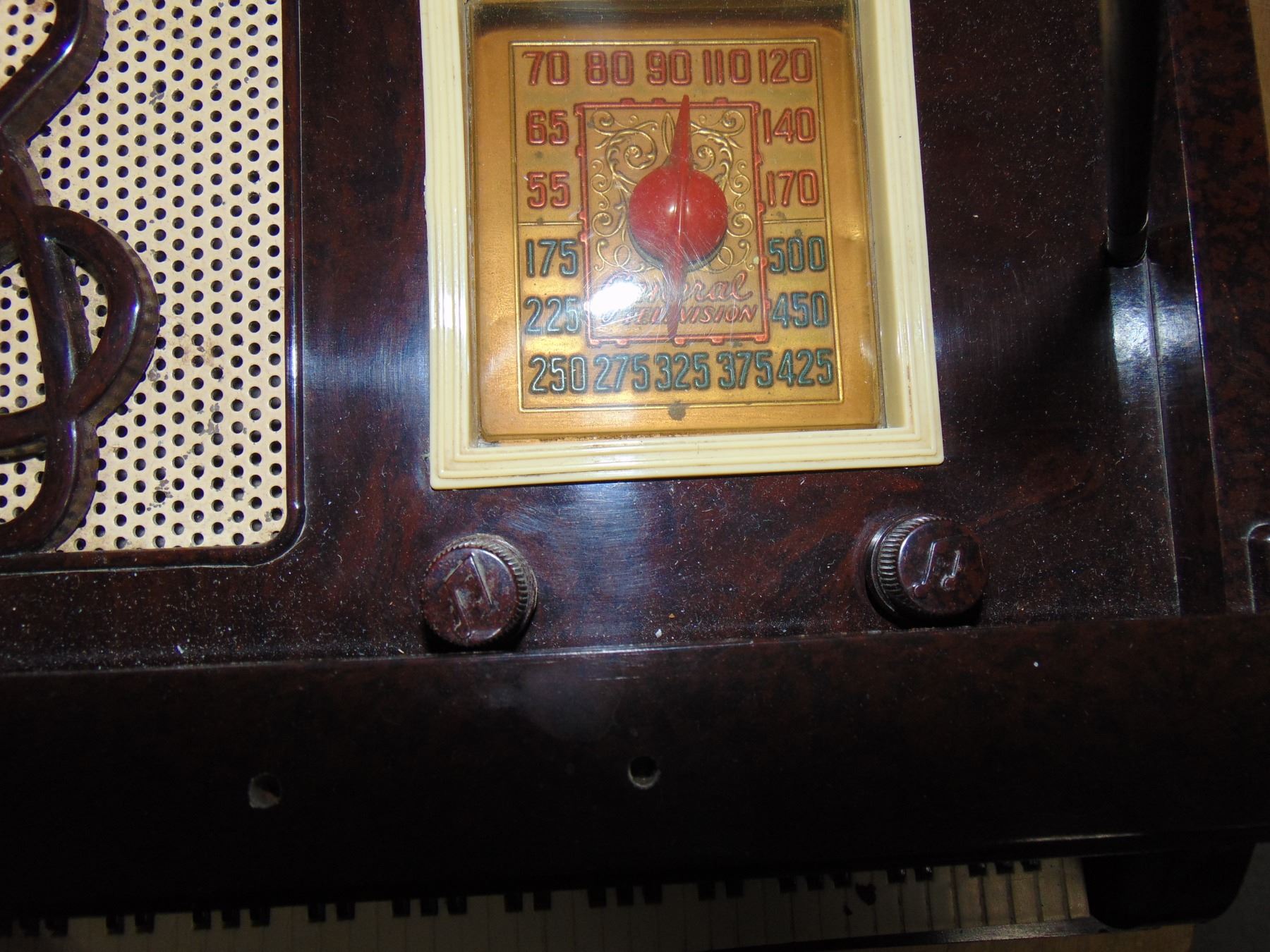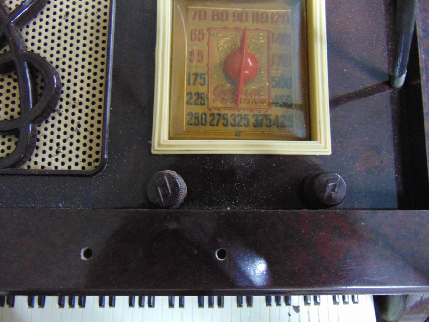 General Television piano radio; brown bakelite; works; missing music sheet stand; nice