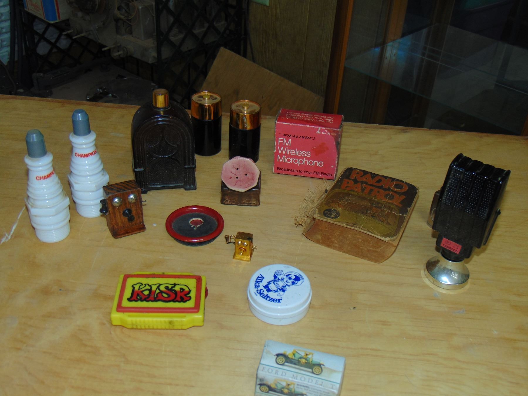 Flat of novelty vintage radio items