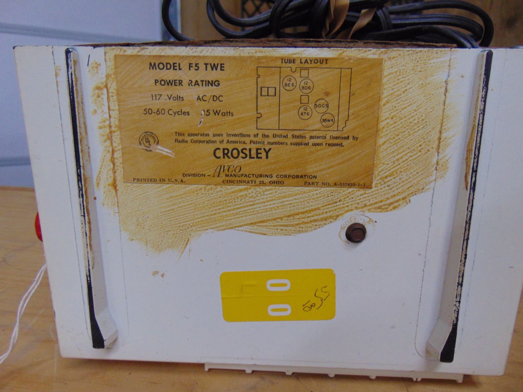 Crosley Musical Chef radio; white and red; no cracks; model F5-TWE; works