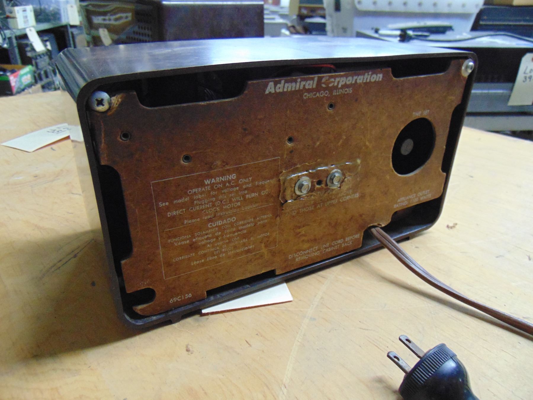 Admiral brown bakelite radio; model 5A32; radio works, clock does not; no cracks
