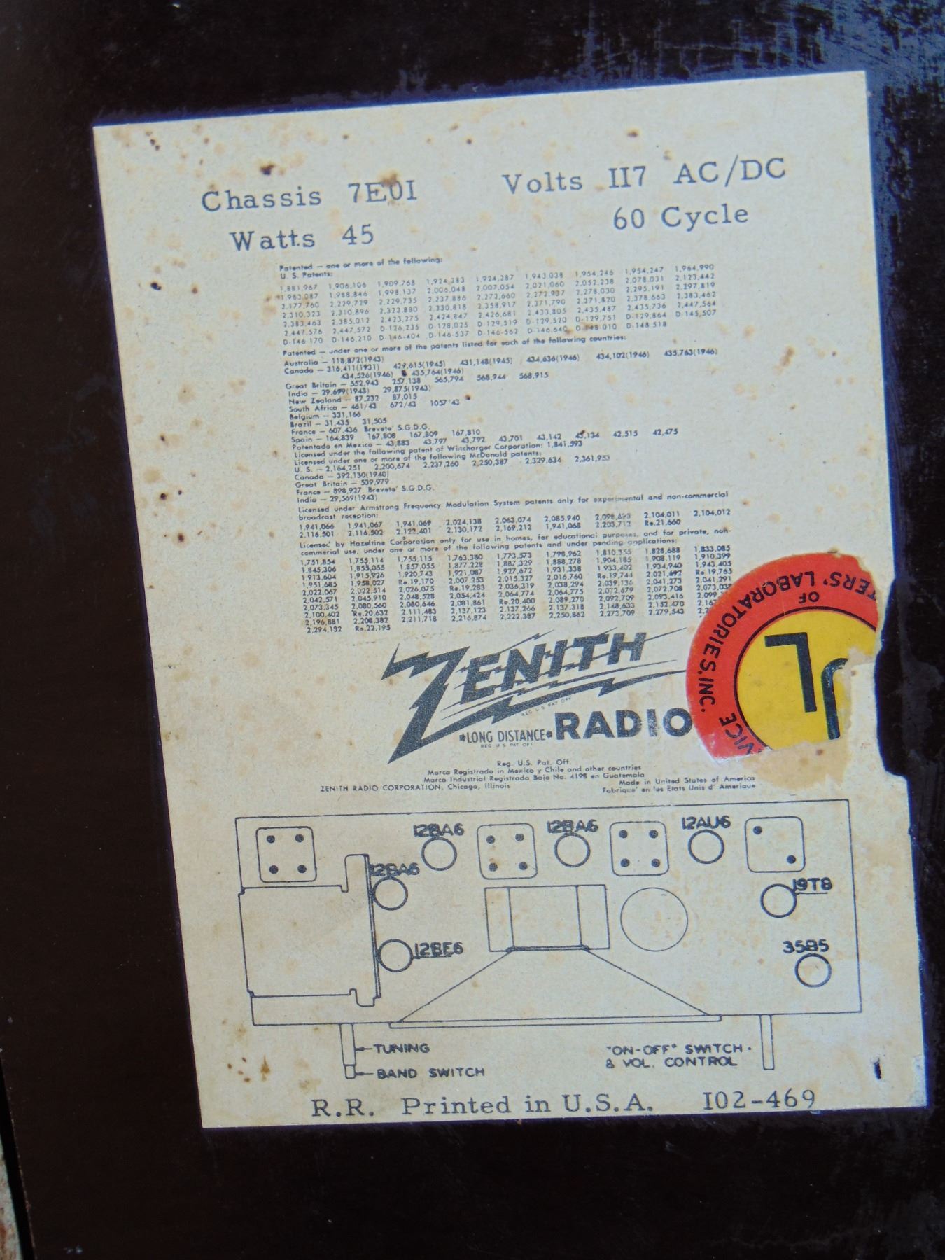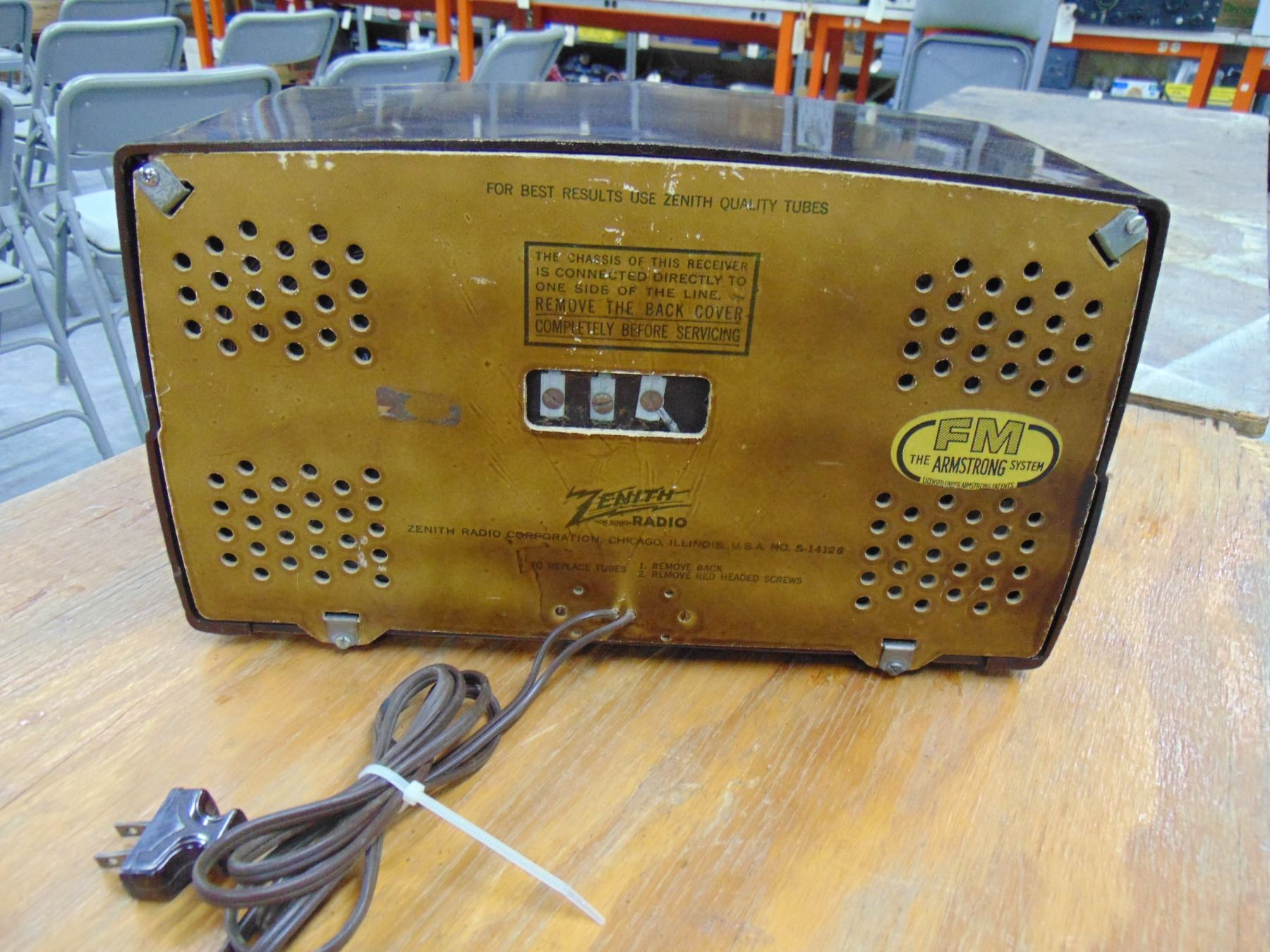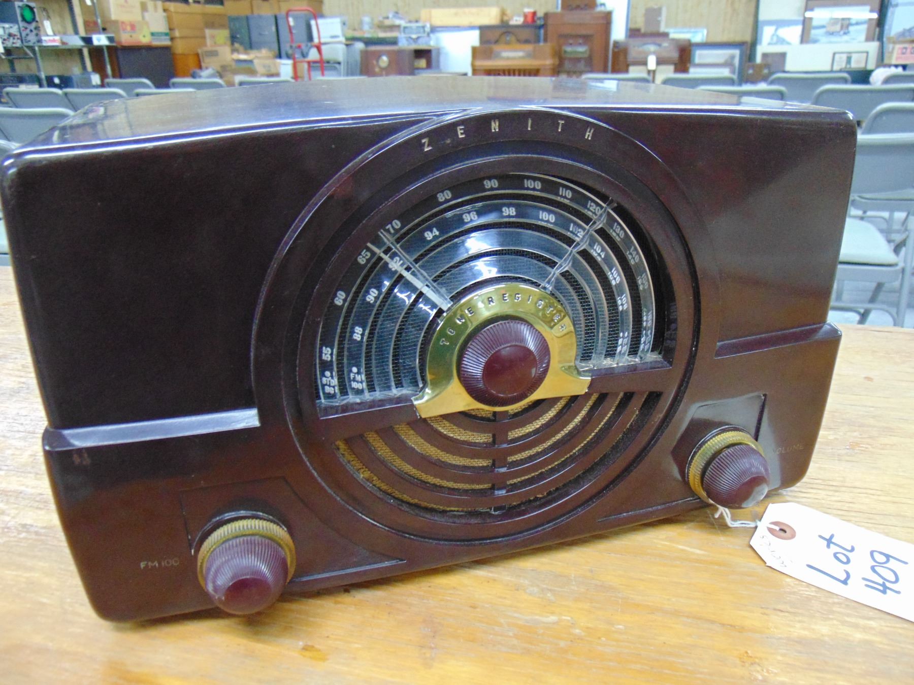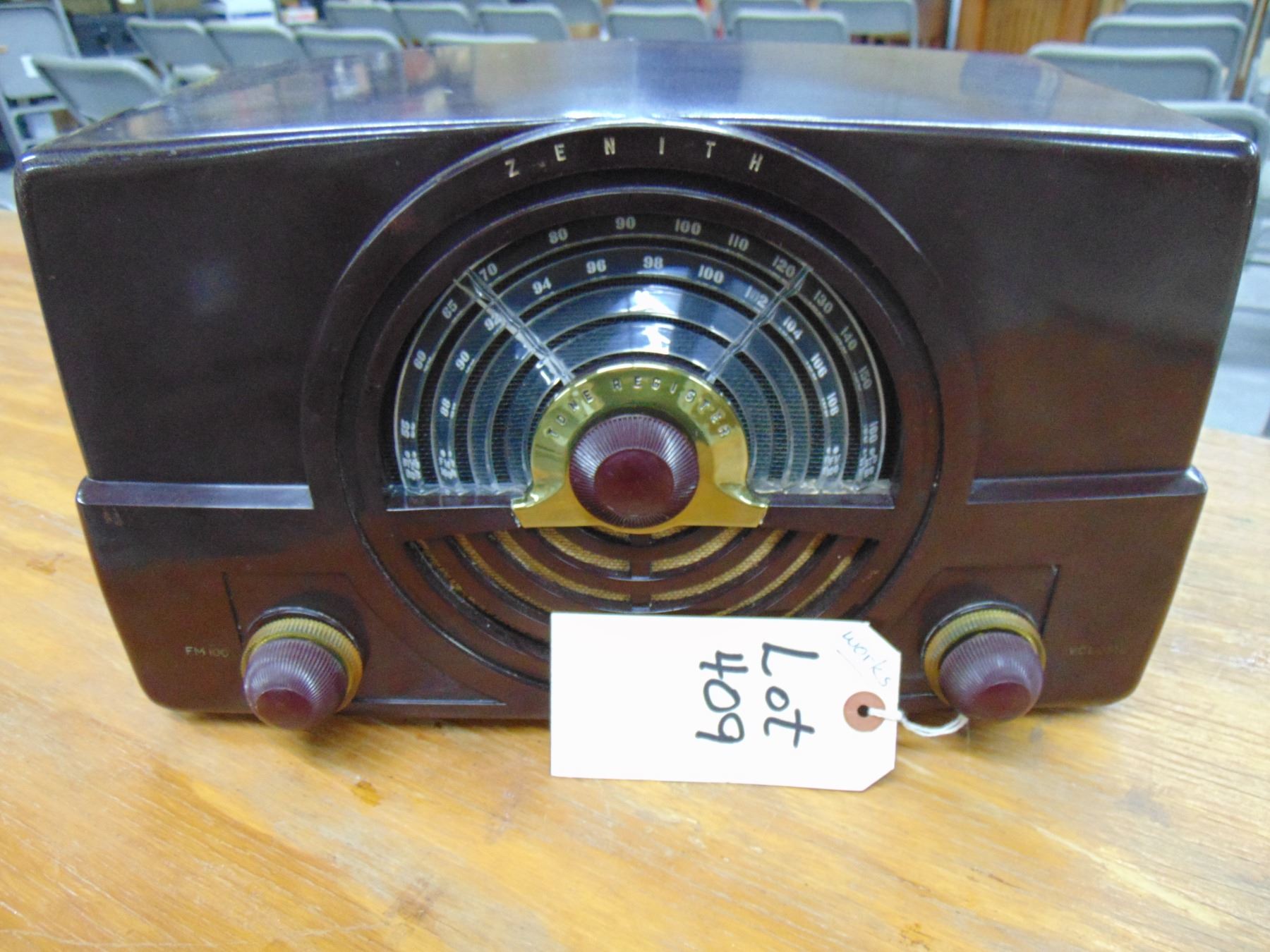Zenith brown bakelite set, model 7H820UZ; no cracks; works on AM and FM bands; nice.