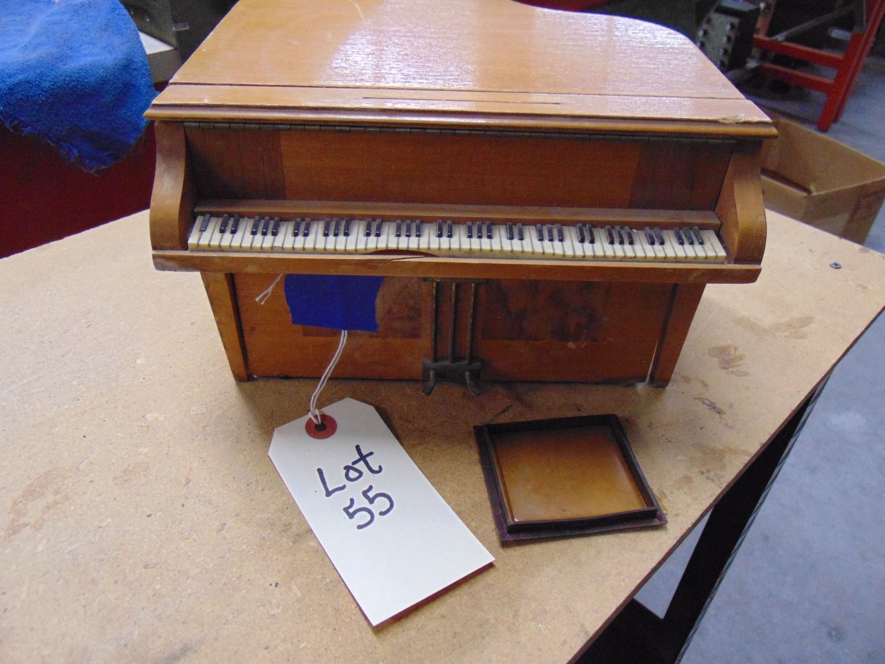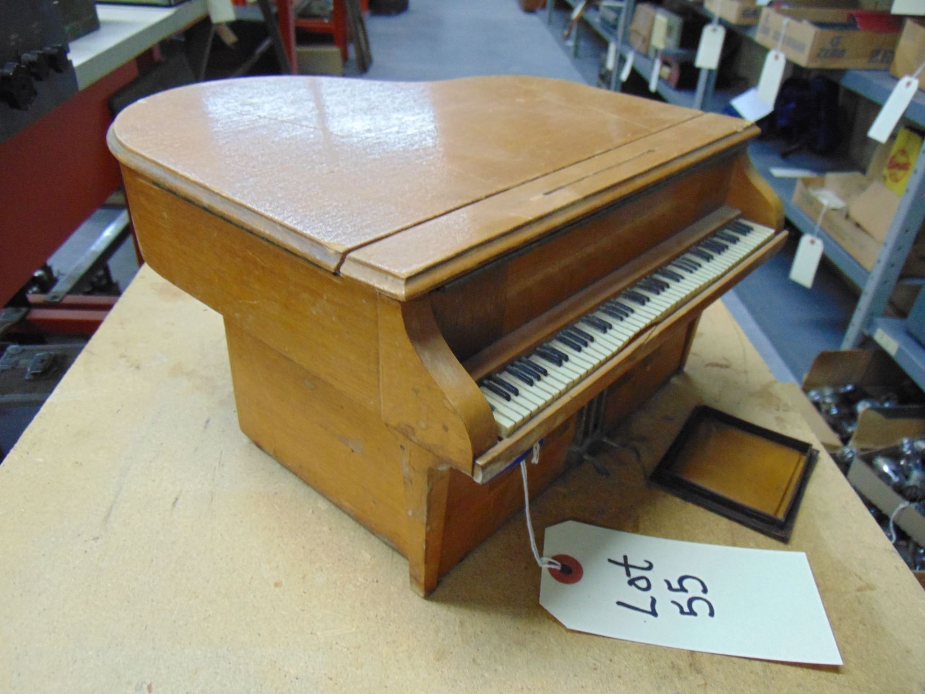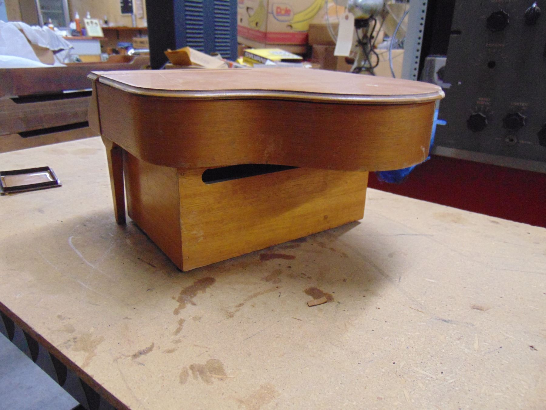 General Television wood cabinet for "piano novelty" radio; includes keyboard and escutcheon