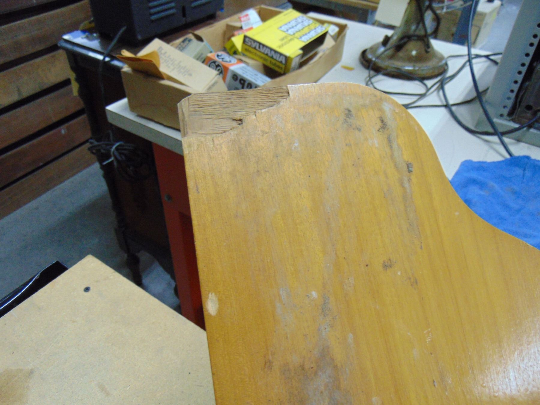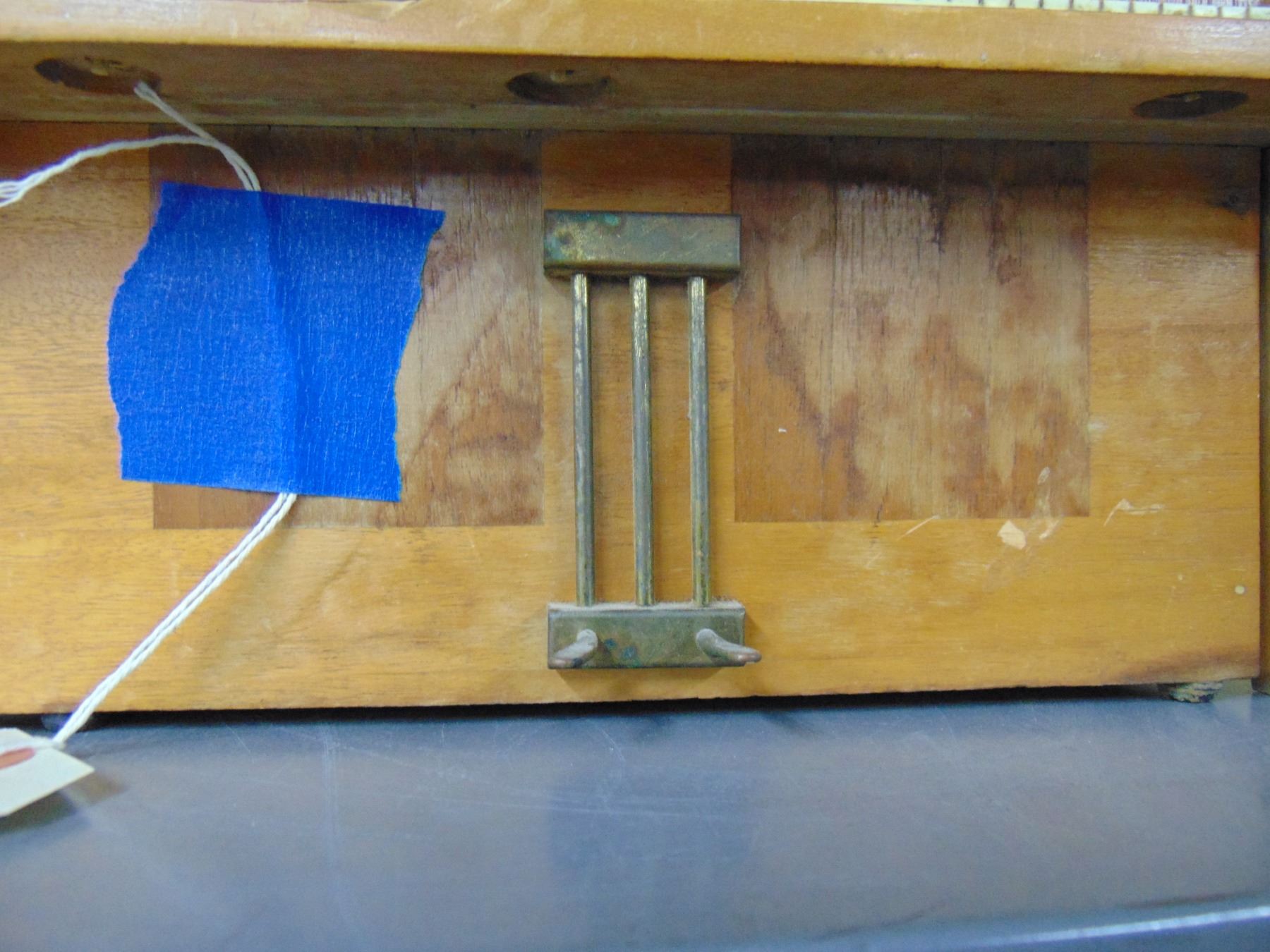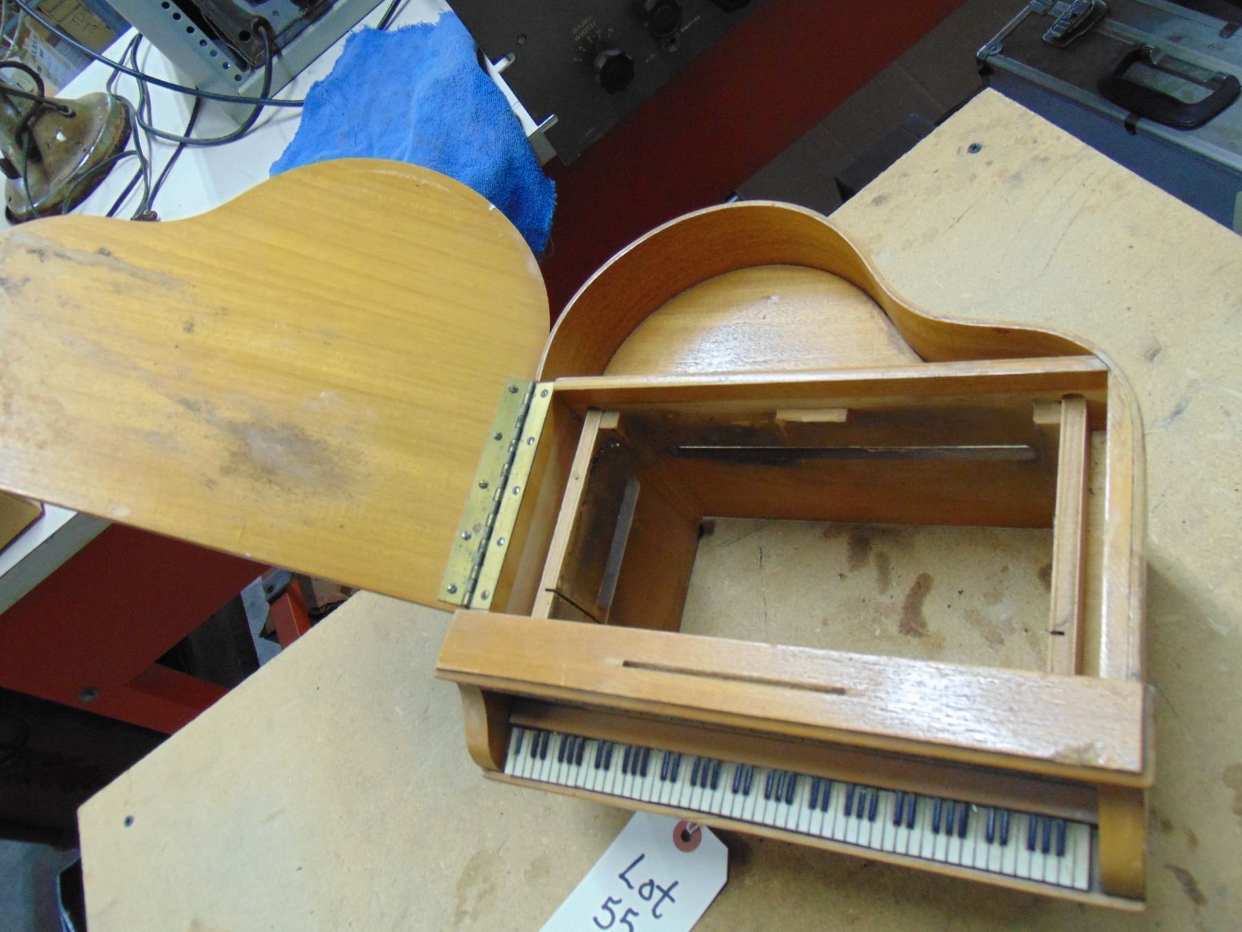 General Television wood cabinet for "piano novelty" radio; includes keyboard and escutcheon