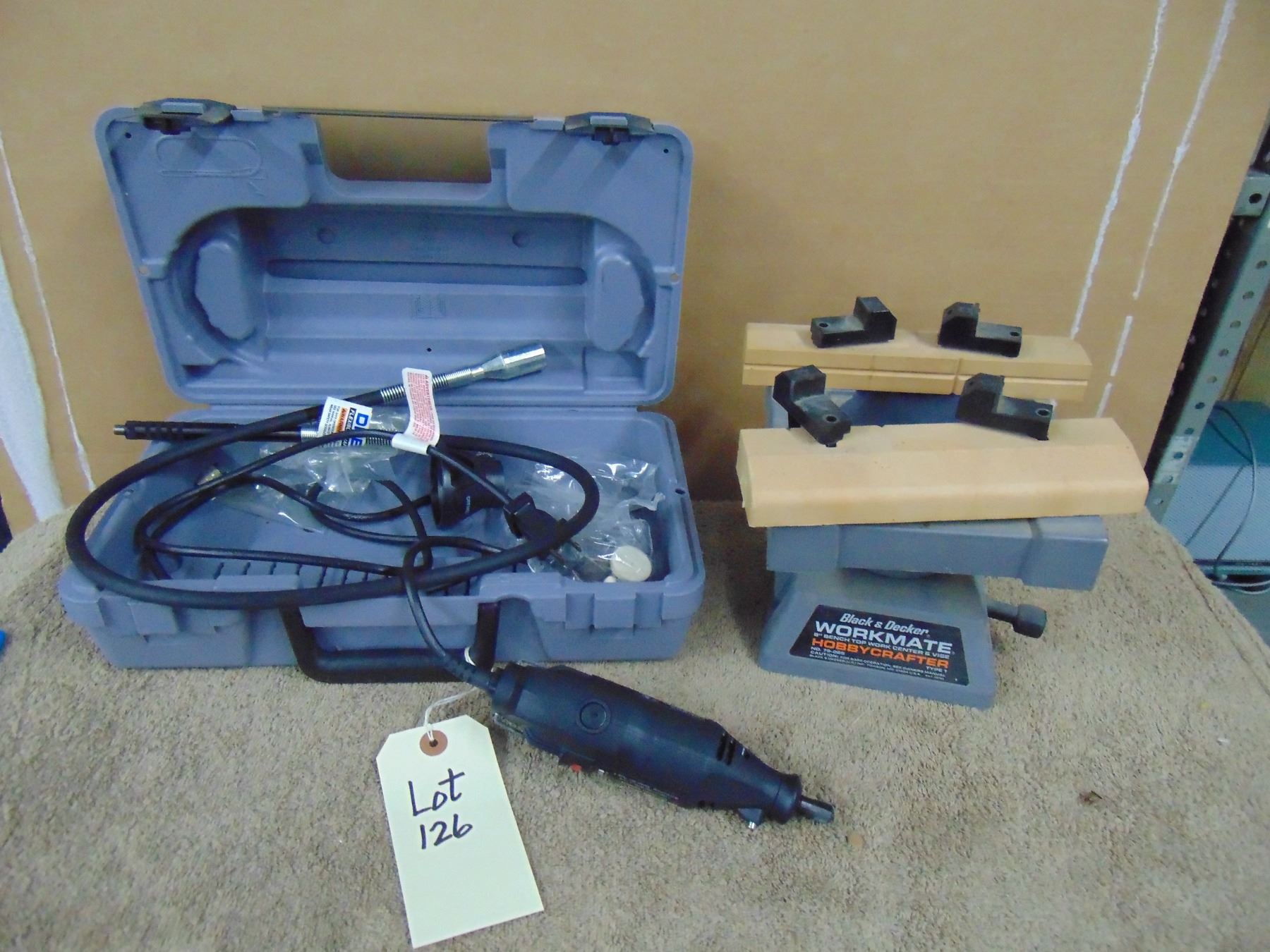 Dremel tool with accessories in case; ALSO Black and Decker hobby crafter workmate, 8”