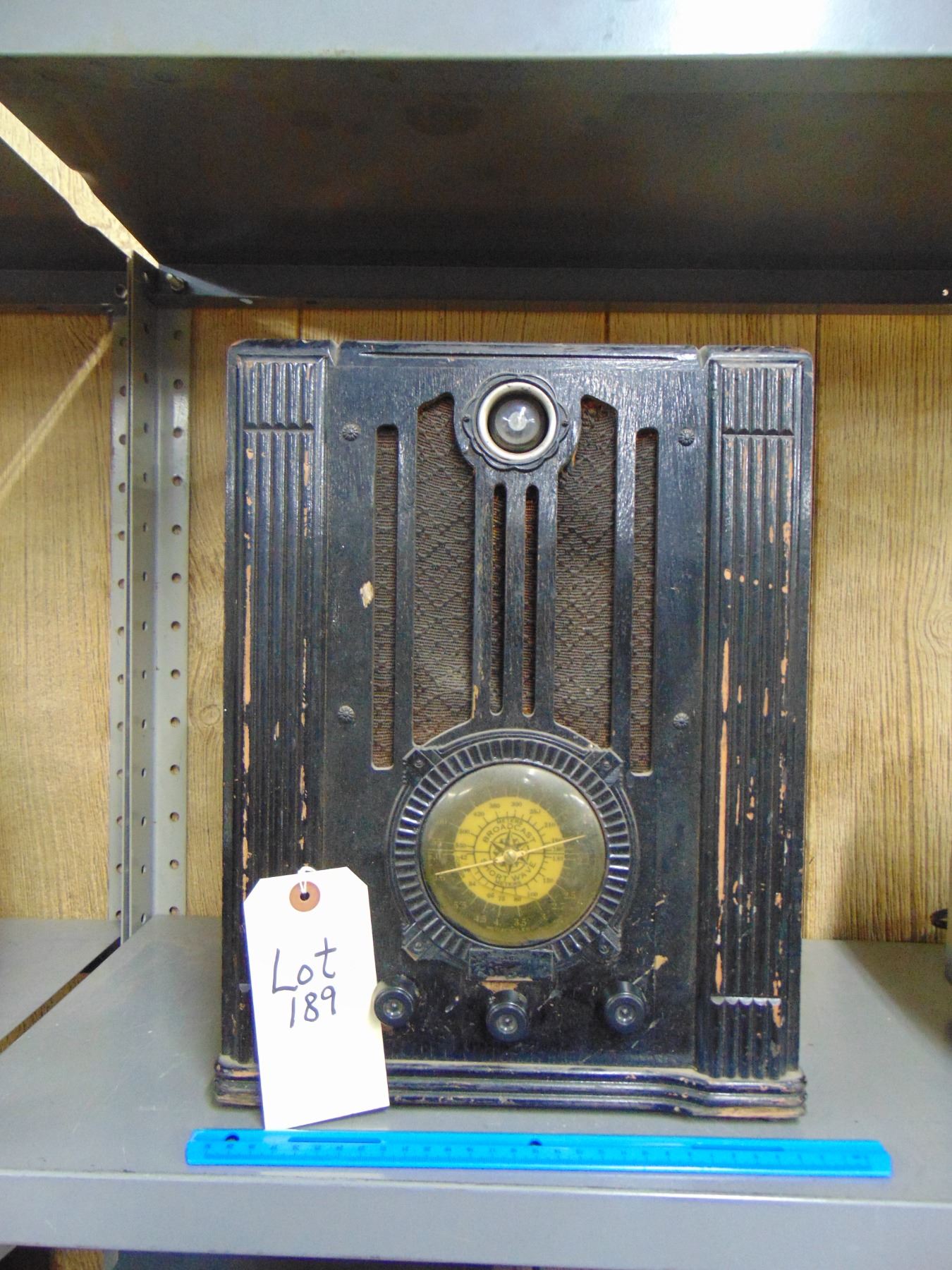 Black wood tombstone; unknown make; with tuning eye; AM/SW
