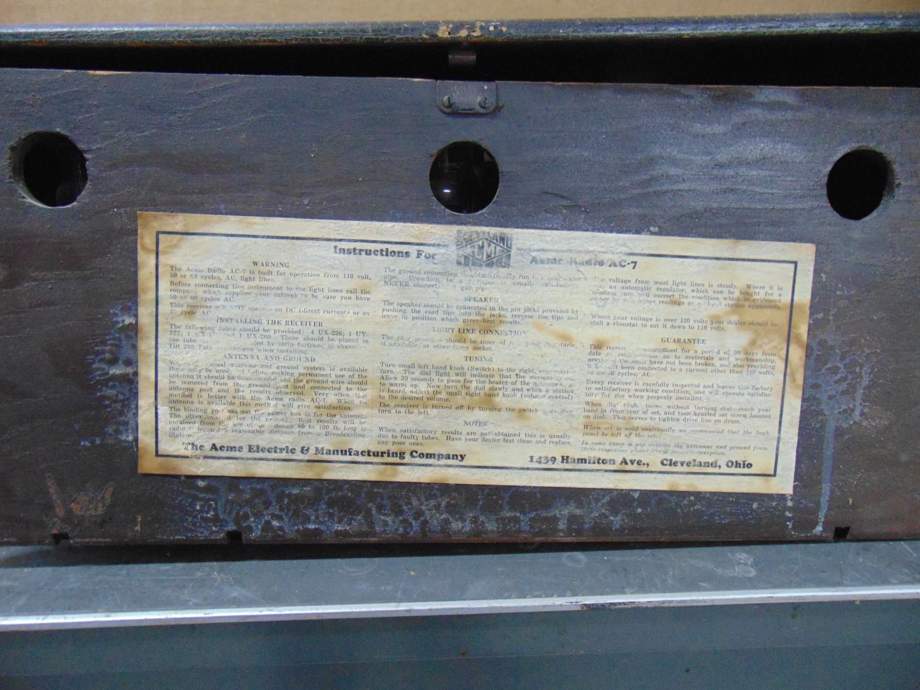 Acme radio; model AC-7; early electric radio; mfg. in Cleveland, Ohio; nice condition; with tubes