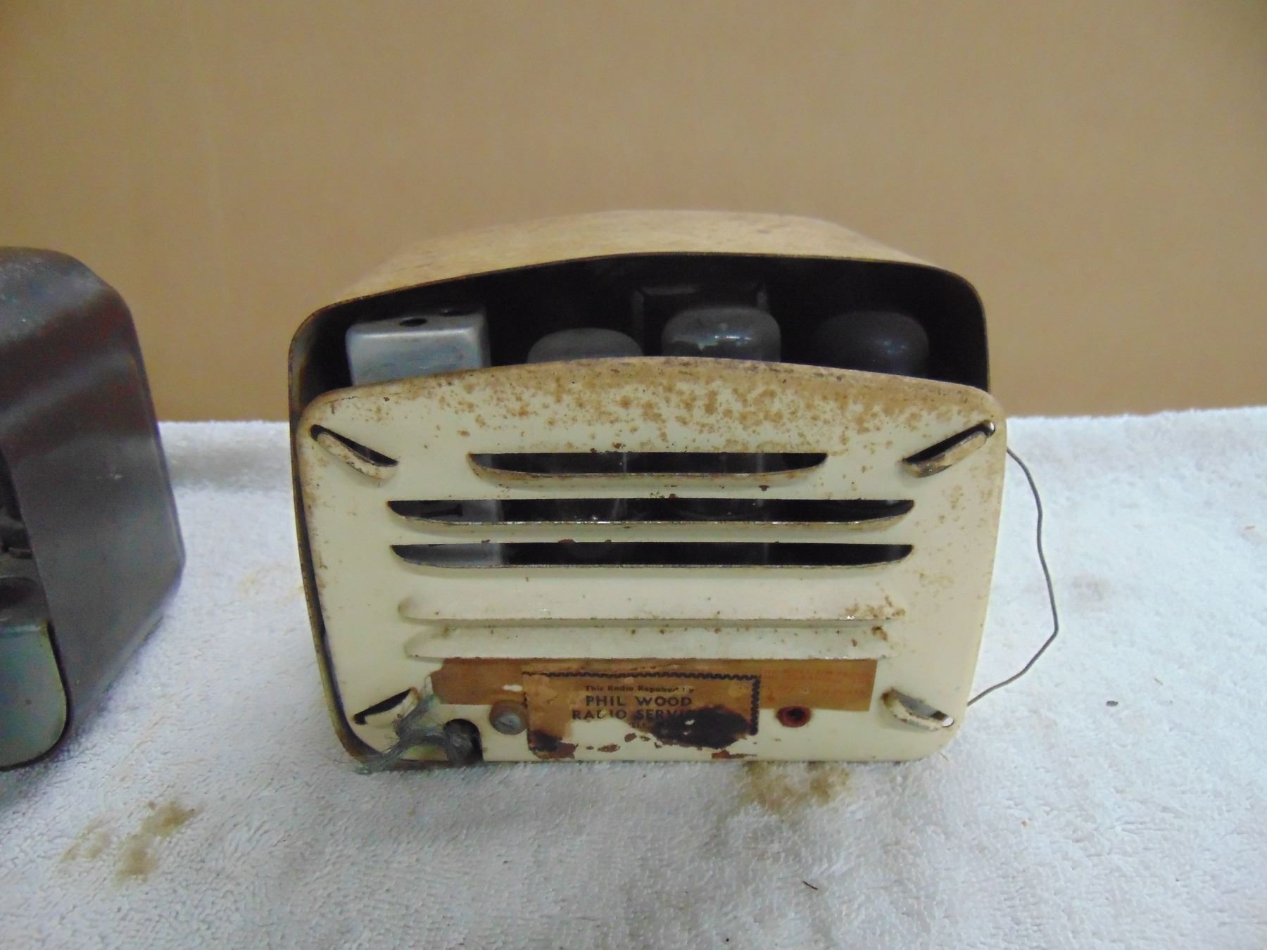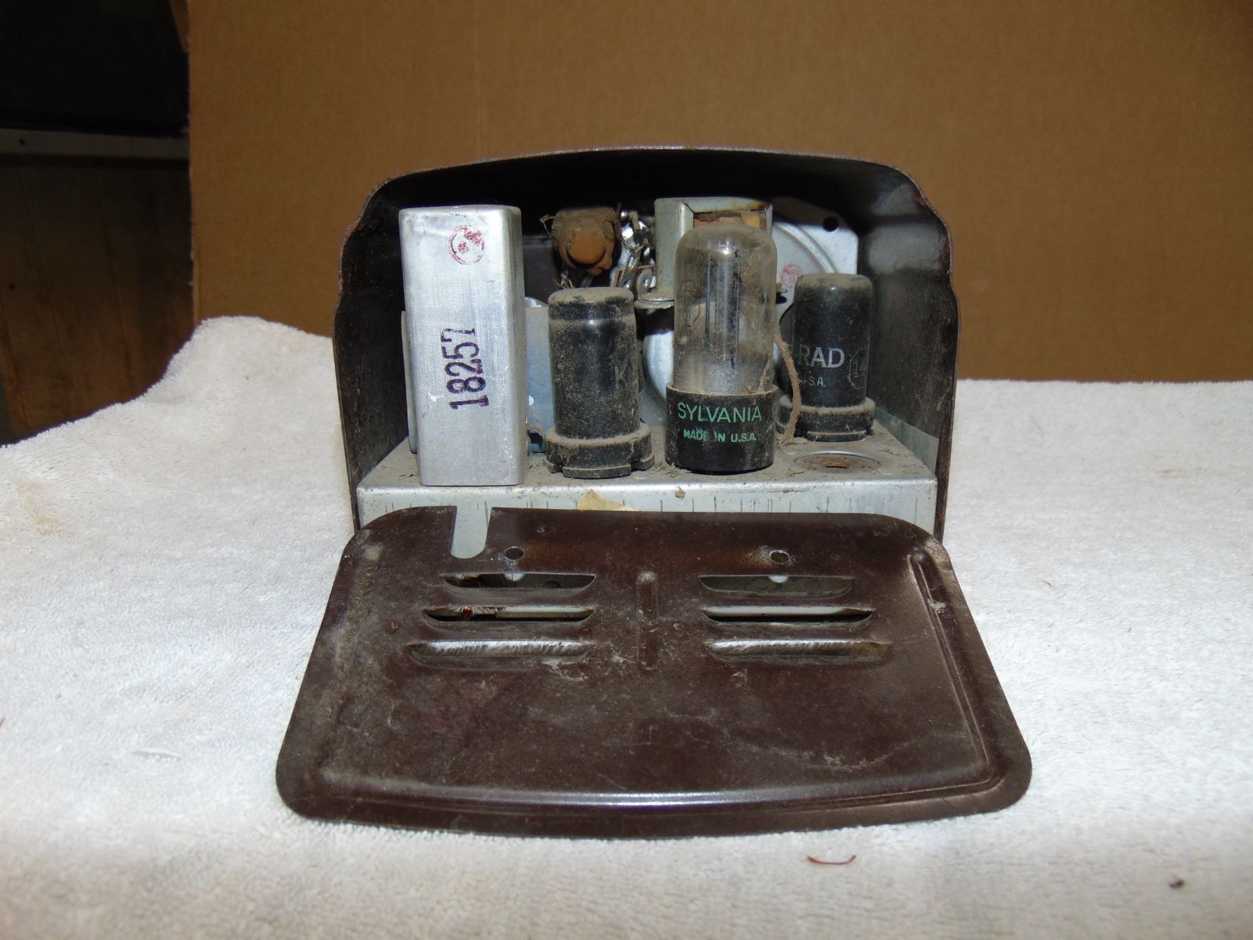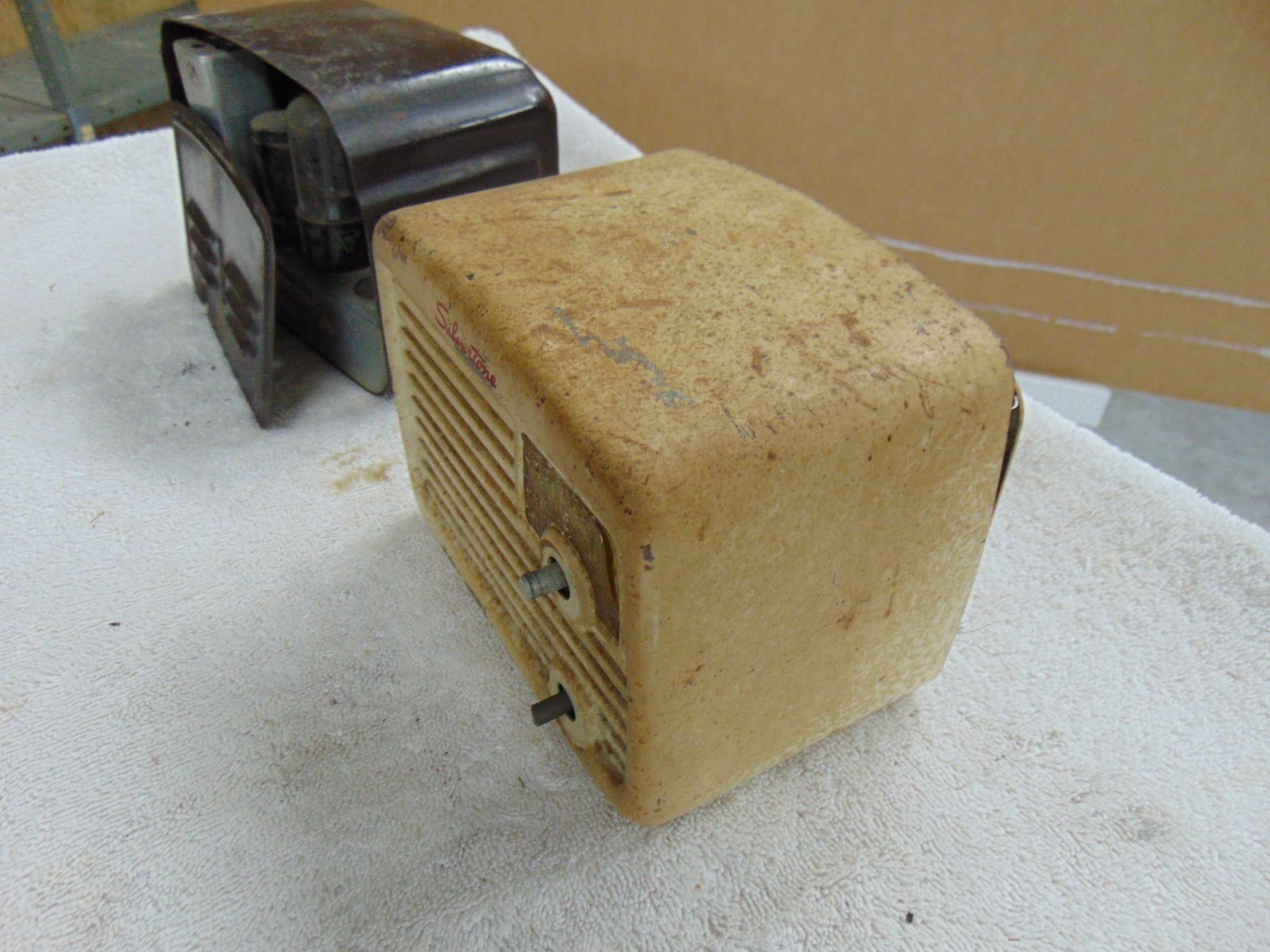 Brown metal Arvin, with back, model 424; ALSO, Silvertone metal set, original back