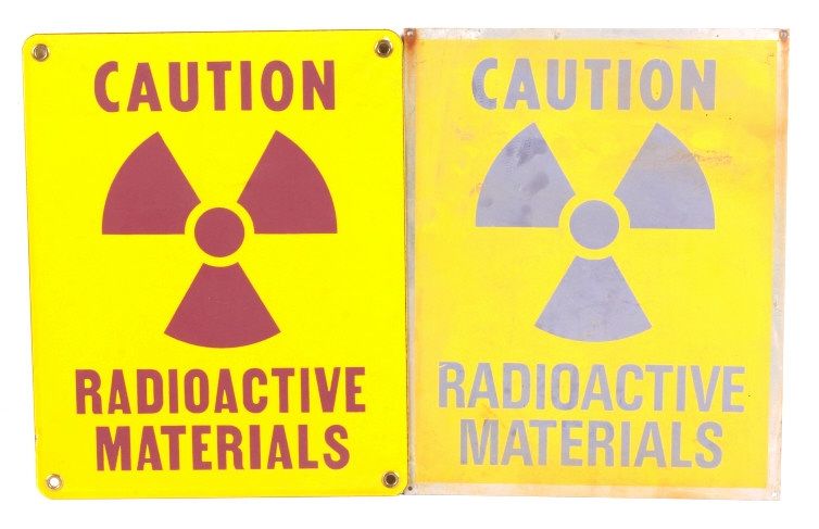 This lot includes 2 radioactive materials signs. These signs are in very good condition. They each measure 8" x 10".
