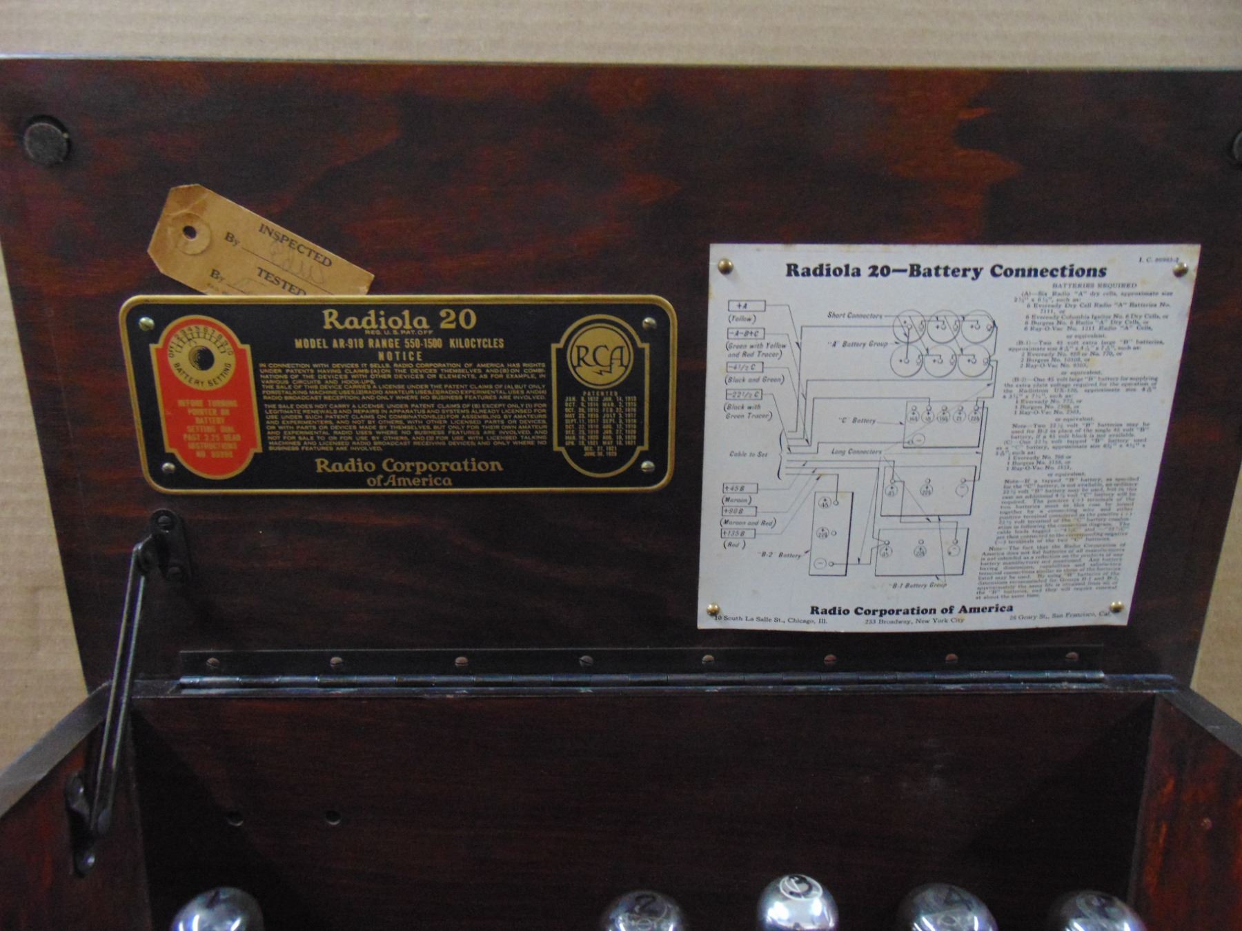 Early Radiola battery set; circa 1924; full compliment of tubes; very nice original condition; works
