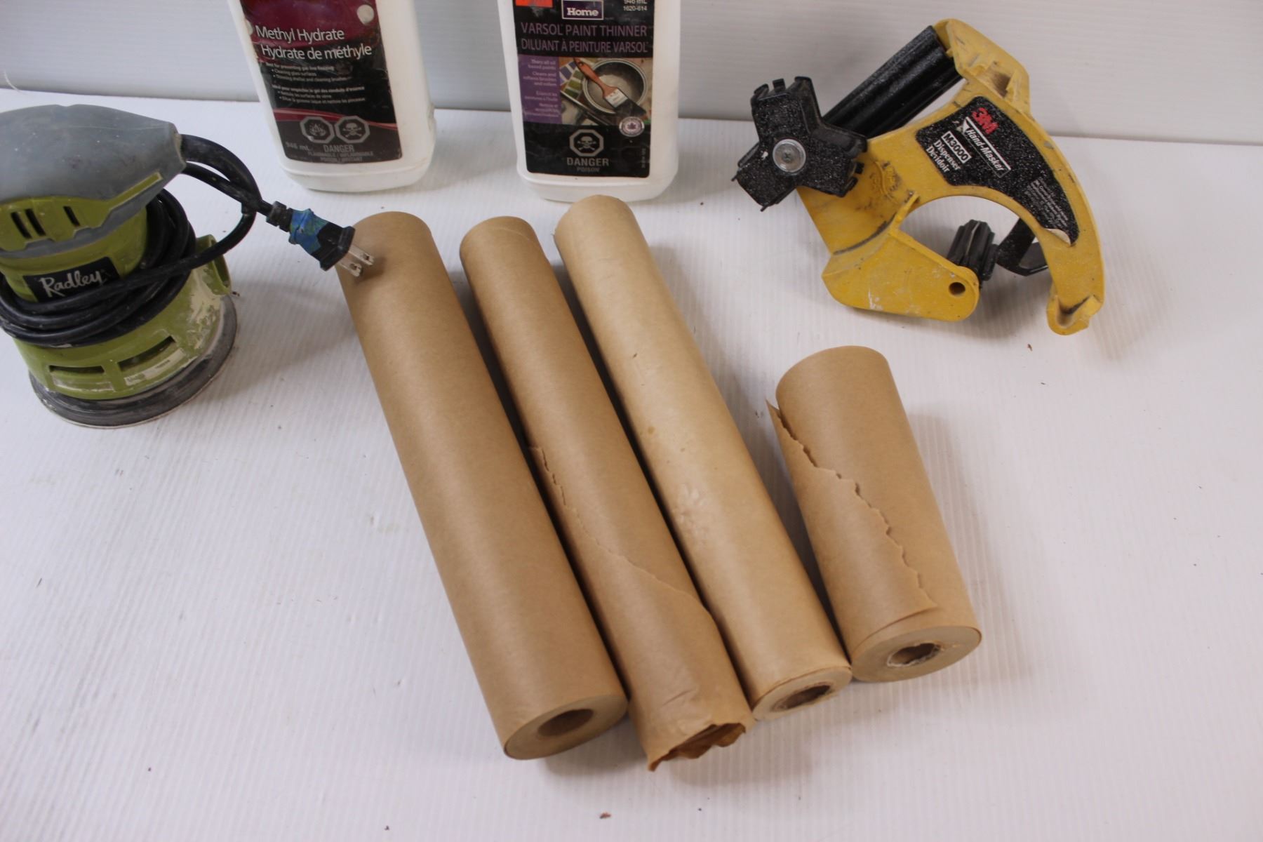 Radley Orbital Sander (Electric, Works), (4) Rolls of Masking Paper, Drywall Paper Dispenser, Paint