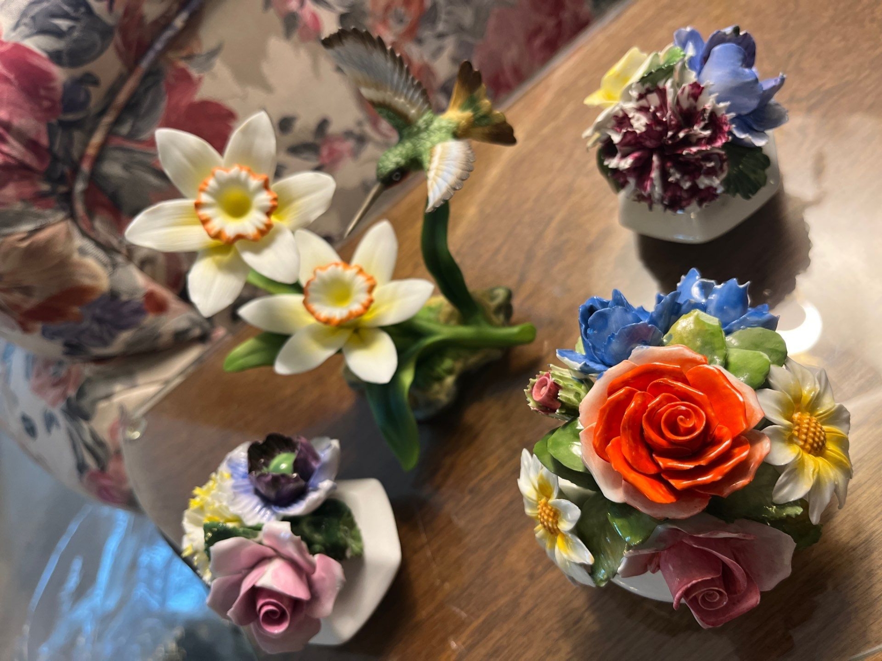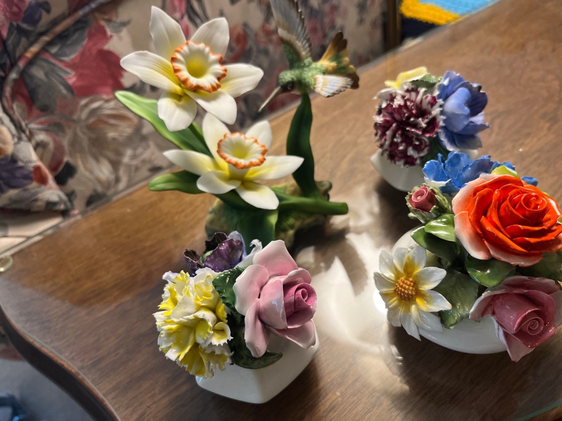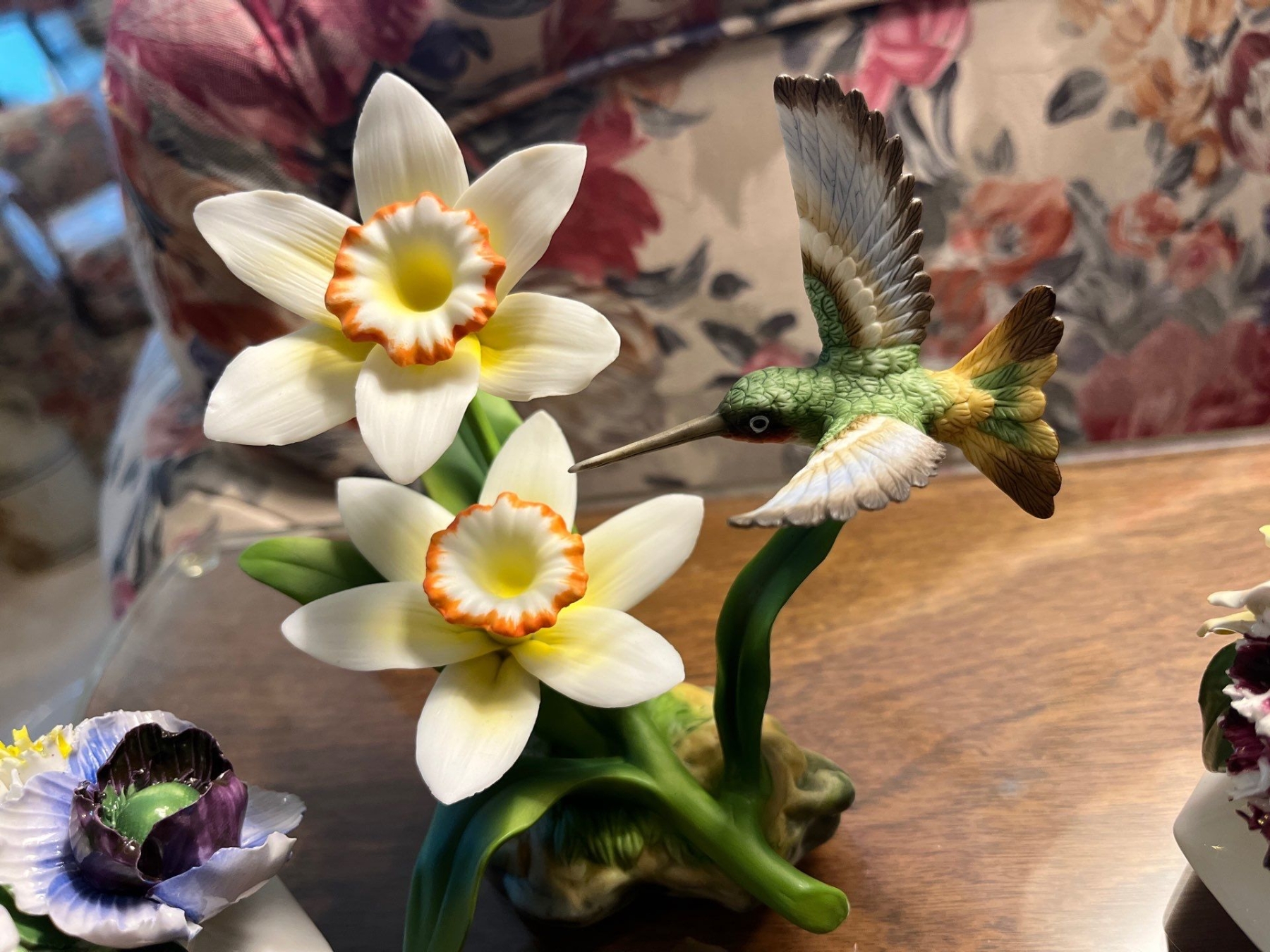 Radnor Bone China floral arrangement,hand painted with Vintage Andrea by Sadek Hummingbird and Daffodils Porcelain Figurine #14135 Decor Bird Flower Floral Matte Finish Delicate