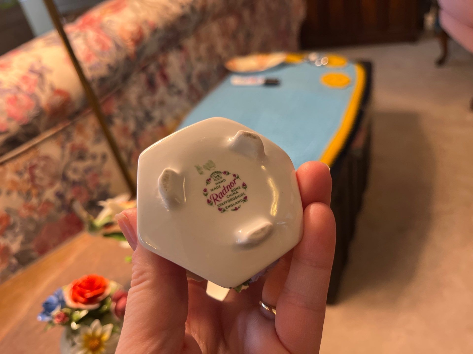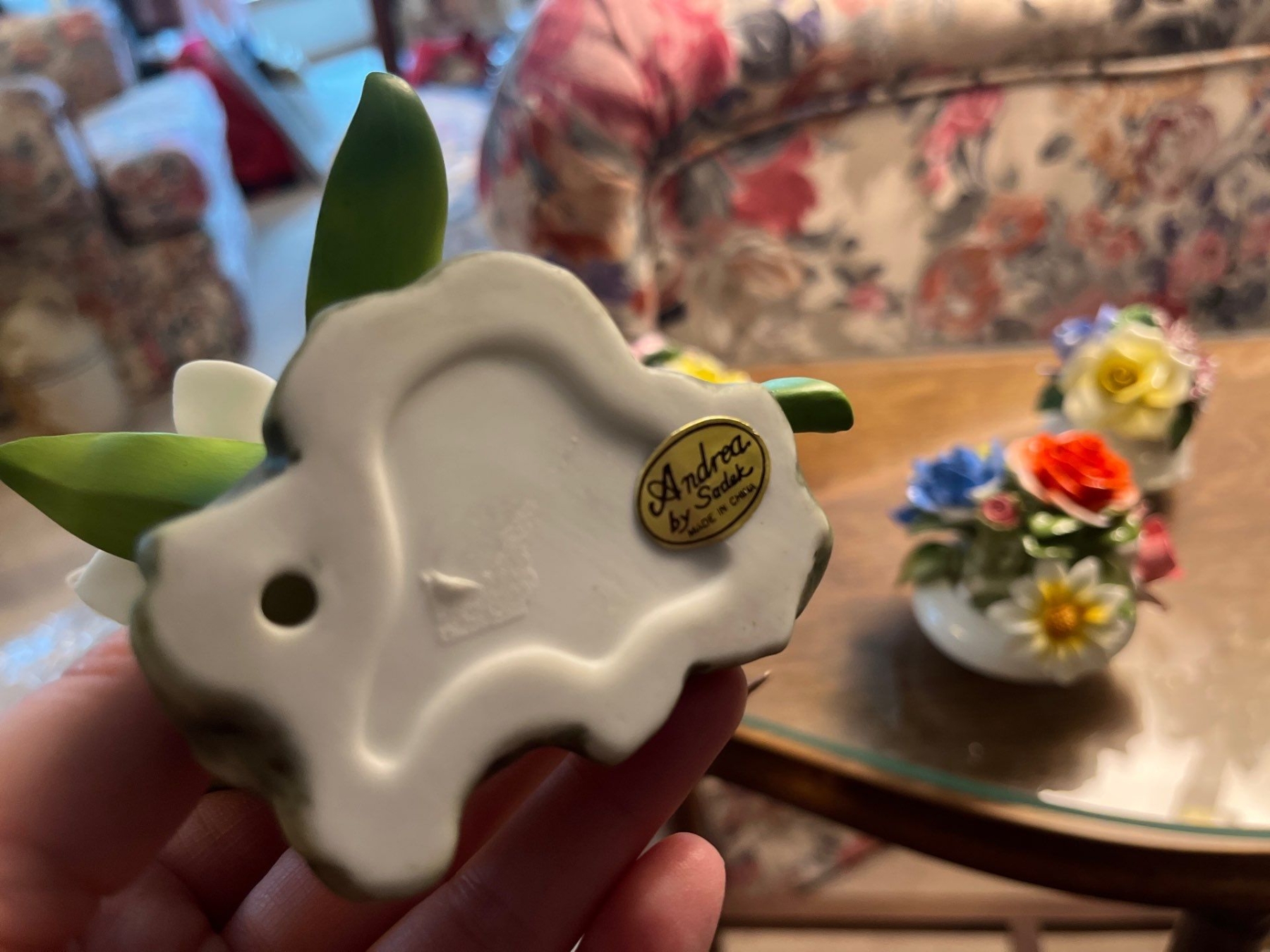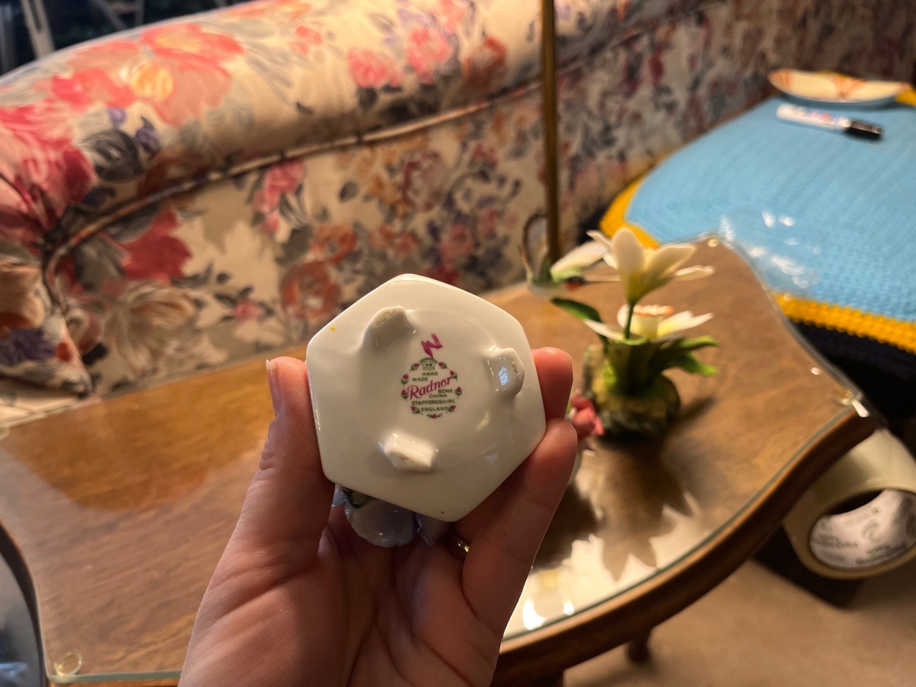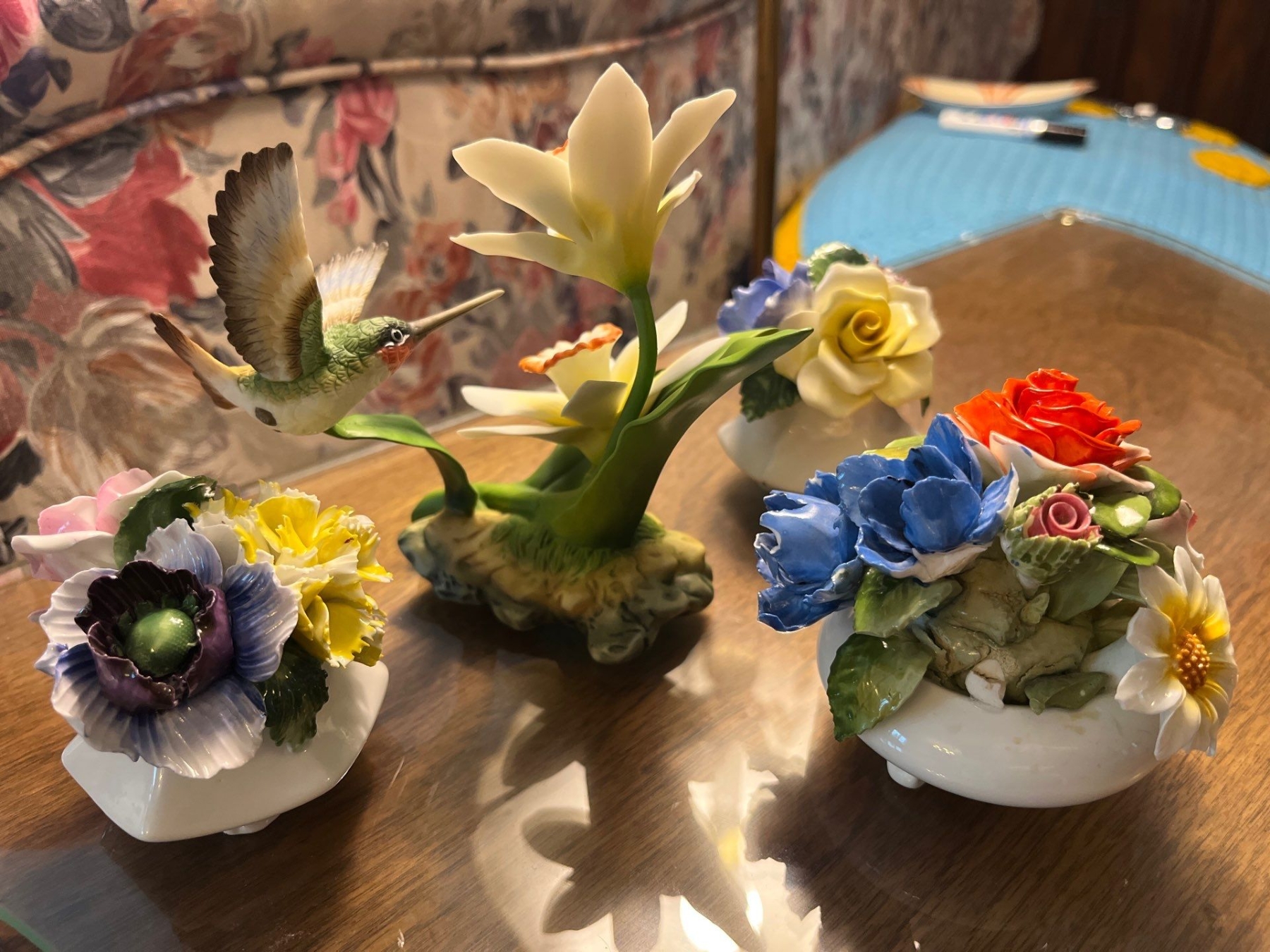 Radnor Bone China floral arrangement,hand painted with Vintage Andrea by Sadek Hummingbird and Daffodils Porcelain Figurine #14135 Decor Bird Flower Floral Matte Finish Delicate