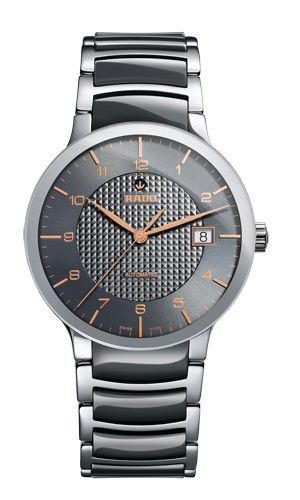 Model: R30939132 - CASE = [Material:Stainless Steel], [Case Diameter:38], [Bezel:Fixed], [Case Back:See-Thru Sapphire Crystal], [Water Resistant:30 Meters/100 Feet], [Crystal:Scratch Resistant Sapphire], DIAL = [Color:Dark Grey with Patterned Center, Rose Gold Hands and Numerials], MOVEMENT = [Type:Automatic Self Winding], BAND = [Clasp:Push Button Deployment], [Type:Stainless Steel with Scratch-Resistant Plasma High-Tech Ceramic],  (Usually ships in 2 to 4 weeks.)