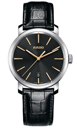 Model: R14078165 - CASE = [Material:Stainless Steel], [Case Diameter:40], [Bezel:Fixed], [Case Back:Solid], [Water Resistant:100 Meters/330 Feet], [Crystal:Scratch Resistant Sapphire], DIAL = [Color:Black with Rose Gold Hands and Hour Markers, Date at Six], MOVEMENT = [Type:Battery Powered Quartz], [Crown:Screw Down], BAND = [Clasp:Tang], [Type:Black Crocodile Leather], (Usually ships in 2 to 4 weeks.)