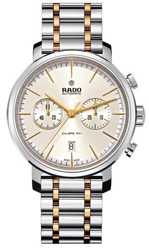 Model: R14070103 - CASE = [Material:Stainless Steel], [Case Diameter:45], [Bezel:Fixed], [Case Back:See-Thru Sapphire Crystal], [Water Resistant:100 Meters/330 Feet], [Crystal:Scratch Resistant Sapphire], DIAL = [Color:White Chronograph with Yellow Gold Hands and Markers, Date at Six], MOVEMENT = [Type:Automatic Self Winding], [Crown:Screw Down], BAND = [Clasp:Hidden Double Folding Deployment], [Type:Stainless Steel with Rose Gold Toned], (Usually ships in 2 to 4 weeks.)