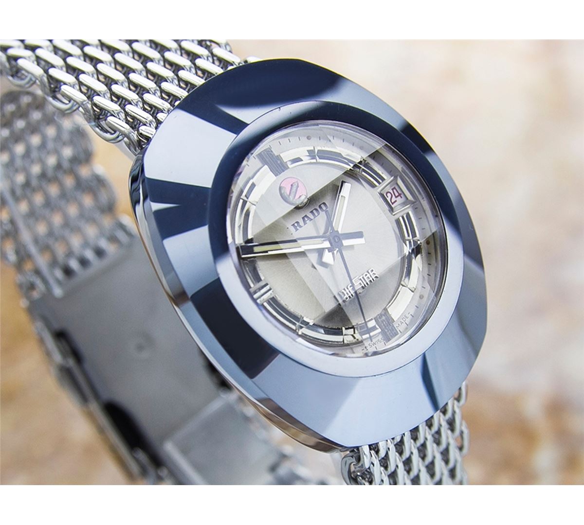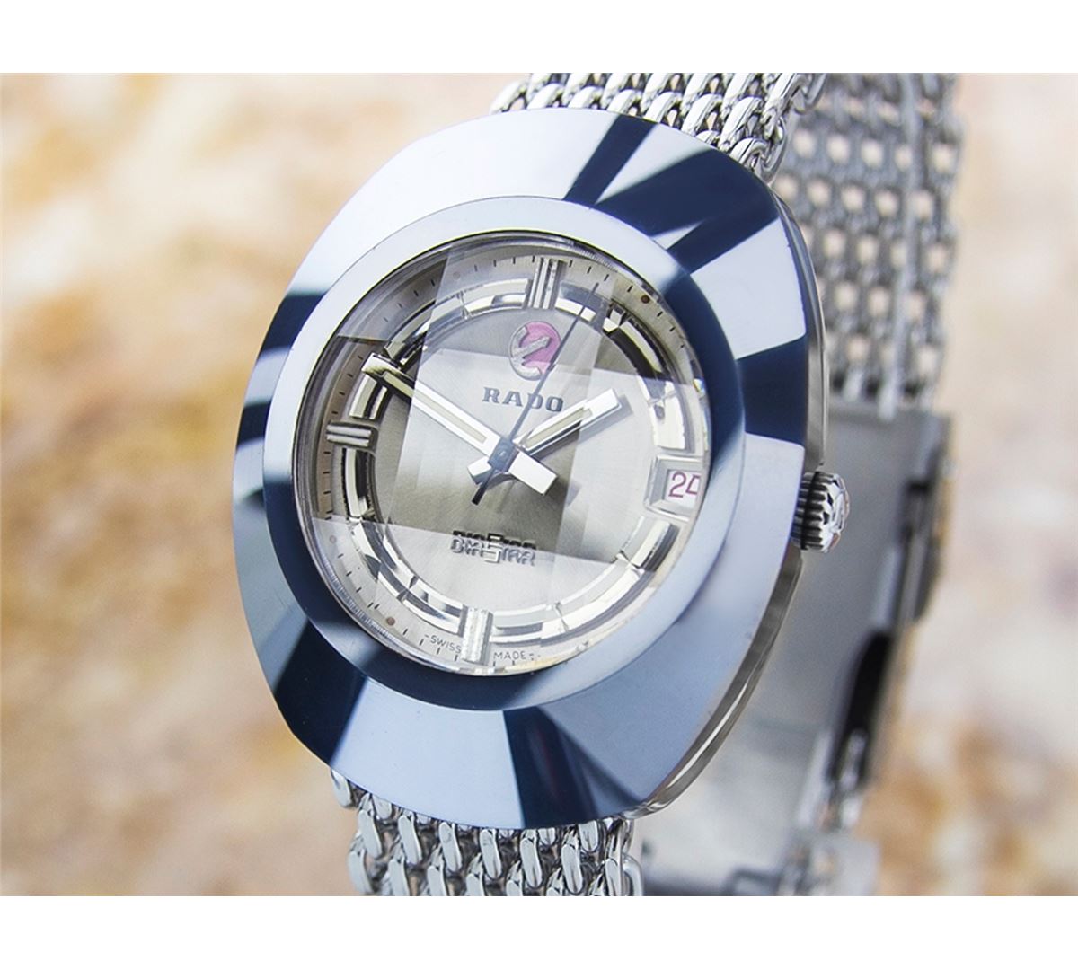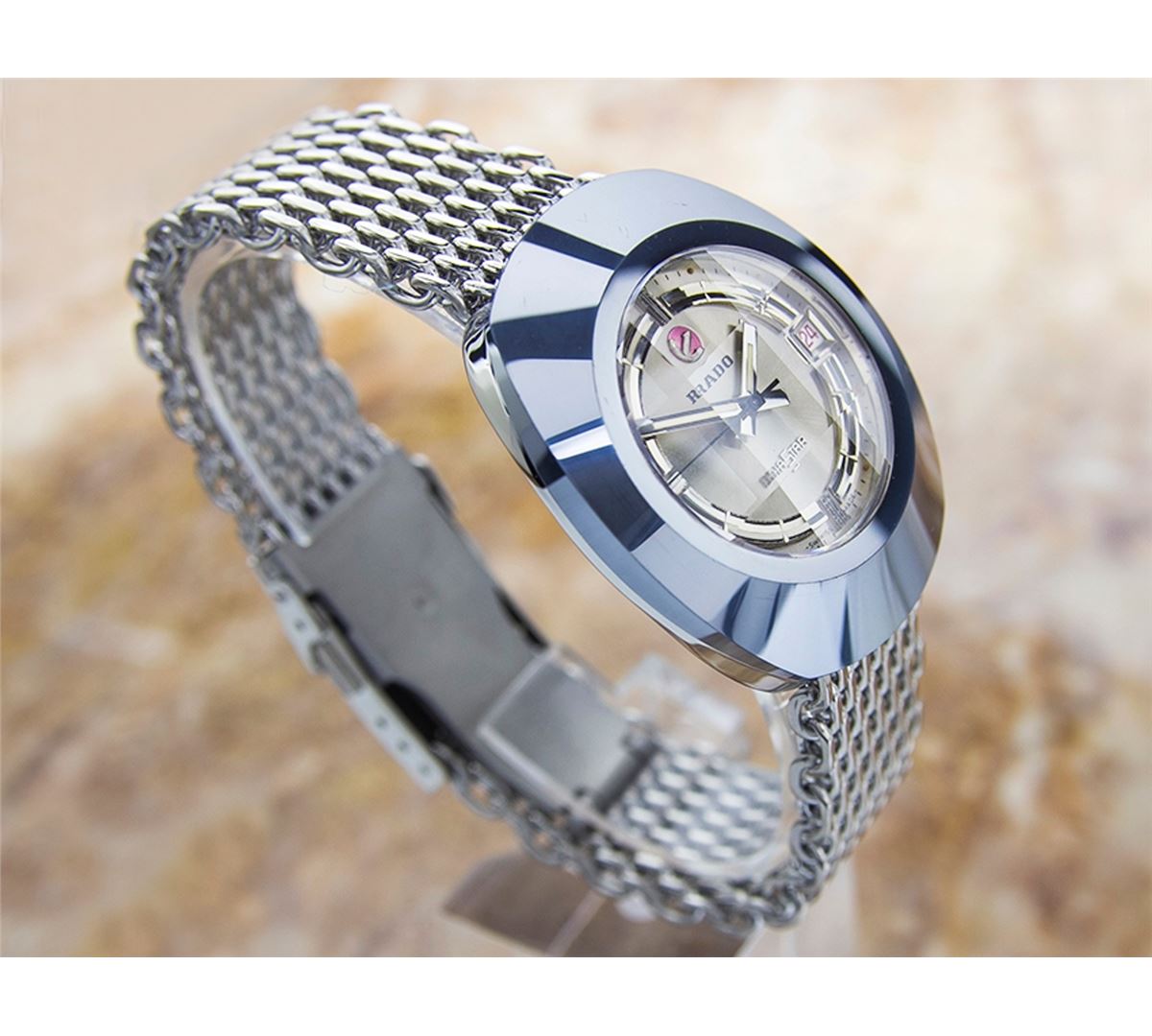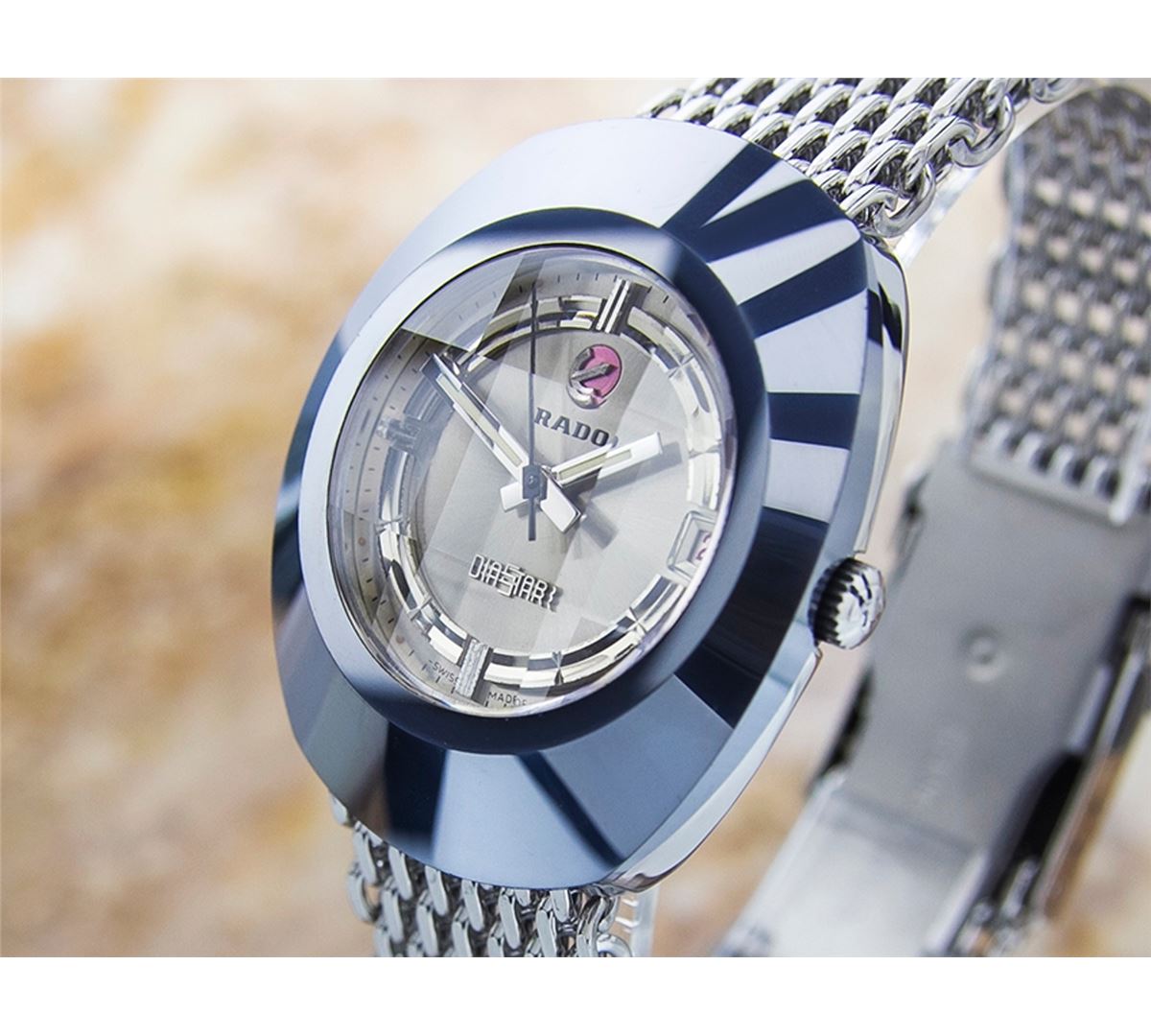 Rado Diastar Date Stainless Steel Automatic Watch. Brand: RADO. Model: DIASTAR. Movement: Automatic. Case Material: Stainless Steel. Crystal: MINERAL GLASS. Case Size: 42X35. Band: Stainless Steel BRACELET.
