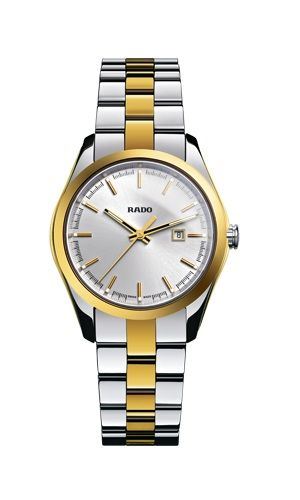 Model: R32975102 - CASE = [Material:Polished Stainless Steel and Yellow Ceramos], [Case Diameter:31.5], [Bezel:Fixed], [Case Back:Solid], [Water Resistant:50 Meters/165 Feet], [Crystal:Scratch Resistant Sapphire], DIAL = [Color:Silver with Yellow Luminescent Hands and Hour Markers], MOVEMENT = [Type:Battery Powered Quartz], BAND = [Clasp:Push Button Deployment], [Type:Polished Stainless Steel and Yellow Ceramos], (Usually ships in 2 to 4 weeks.)