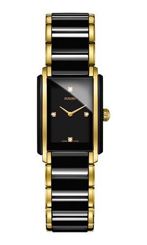 Model: R20845712 - CASE = [Material:Black High Tech Ceramic with Yellow Gold Plated Stainless Steel], [Case Diameter:22.7], [Bezel:Fixed], [Case Back:Solid], [Water Resistant:50 Meters/165 Feet], [Crystal:Scratch Resistant Sapphire], DIAL = [Color:Black with Yellow Gold Hands and Diamond Hour Markers], MOVEMENT = [Type:Battery Powered Quartz], BAND = [Clasp:Fold Over], [Type:Black High Tech Ceramic with Yellow Gold Plated Stainless Steel], (Usually ships in 2 to 4 weeks.)