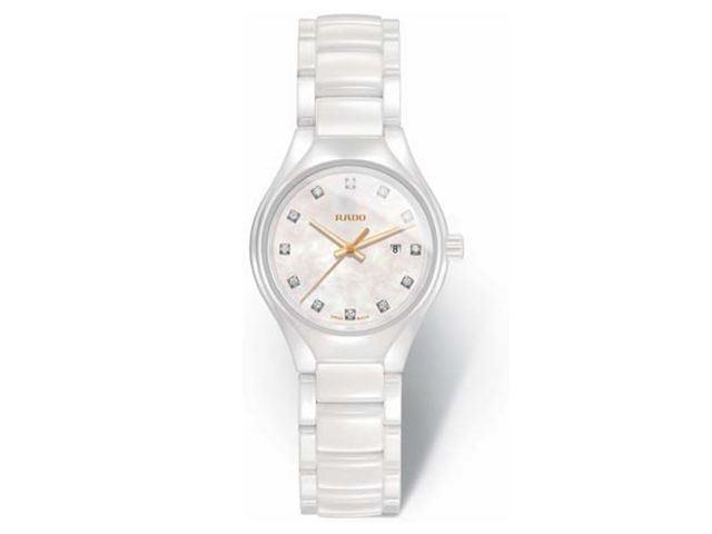 Model: R27061902 - CASE = [Material:White High-Tech Ceramic], [Case Diameter:30], [Water Resistant:50 Meters - 165 Feet], [Crystal:Scratch Resistant Sapphire], DIAL = [Color:White with Gold Colored Hands and Diamond Hour Markers], MOVEMENT = [Type:Quartz], BAND = [Type:White High-Tech Ceramic], (Usually ships in 2 to 4 weeks.)