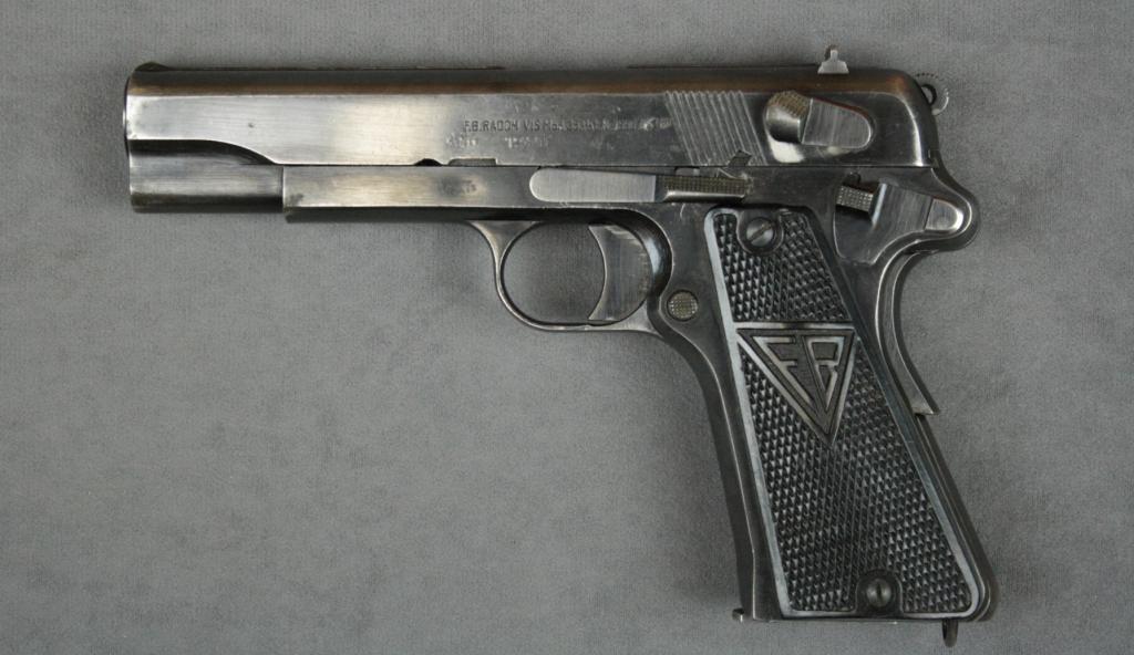 Radom VIS Model 35 semi-auto pistol, Waffen marked and stamped “P.35(p)” on slide, 4-3/4” barrel, blue finish, checkered black plastic grips, #F0890. This gun is in overall fine condition showing approx. 85% militaryfinish, fine bore, crisp action, sharp markings and fine grips. Est.: $400-$700.
