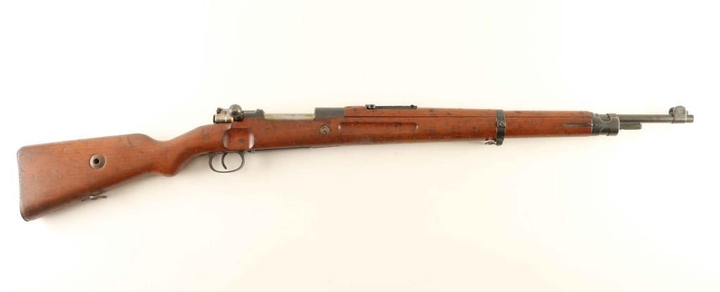 Refurbished & scrubbed Polish military bolt action service rifle chambered in 7.92x57mm Mauser. Features a blued finish, 23.6" barrel, shrouded blade front sight, tangent rear sight graduated to 2,000 meters, bayonet lug, smooth trigger, manual three position safety on the rear of the bolt, straight bolt handle, internal 5 round box magazine, integral stripper clip guides in the receiver, sling swivels, smooth wood handguard and near full-length pistol grip shoulder stock with finger groove forend, sling bar & smooth metal buttplate. The markings have been removed with only serial numbers(non-matching) and circled "Z"s remaining. Rifle exhibits approximately 40% bluing with the balance of the metal surfaces turned to brown patina with some light rust. Action is smooth, the bore appears dark & dirty, and the wood stocks are good with many blemishes. Condition is near NRA Good. ***C&R Firearm***