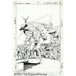 Rafael Kayanan and Dick Giordano - Original Cover Art for The Fury of Firestorm Annual #2 (DC, 1984). Plagued by hallucinations, Firestorm must somehow fight an alien Mage who has come to Earth. Lurking behind Firestorm's back on this cover are Typhoon, Slipknot, Enforcer II, Killer Frost, Byte, Pan, Bug, Pied Piper, Hyena, Multiplex, Mindboggler, Silver Deer, Tokamak, Stratos, Black Bison, and Enforcer I. Veteran DC inker Dick Giordano adds his professional touch to Rafael Kayanan's pencils. The art paper measures 11.5" x 17", with an image area of 10" x15". The condition of the art is superb. There are no title-logo or type stats, and the page is very clean. Signed "Kayanan & Giordano" at the lower left. Important notice: Heritage usually auctions material at the rate of 200-250 lots per hour. On some occasions eBay Live bid software or the Internet may not be able to keep up with the pace of the auction. We recommend placing a realistic absentee bid now as insurance to avoid disappointment. Occasionally the auctioneer may eliminate or reject an eBay Live bid, and the auctioneer may also reopen a lot after the close of the eBay live bidding (usually because we missed an audience bid), and may reject your bid even if it shows you as the winning bidder. By bidding via eBay Live, you agree that Heritage may award the lot to another bidder at its sole discretion under the circumstances described above or any other reasonable circumstances. Since eBay bids are not shown to us until we open the lot on the floor, we treat those bids just like floor bids. In most cases the floor responds before the eBay bid is presented to us, due to Internet lag time, so for consistency we have made it a policy that floor bids are always considered first over tie eBay live bids. Also please note that all Heritage lots purchased through eBay Live carry a 20% Buyer's Premium. Please make sure you read the Terms and Conditions before you bid.