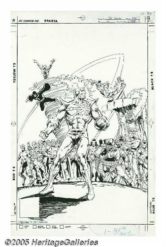 <B>Rafael Kayanan and Dick Giordano - The Fury of Firestorm Annual #2 Cover Original Art (DC, 1984).</B></I> Plagued by hallucinations, Firestorm must somehow fight an alien Mage who has come to Earth, bringing with him visions of Firestorm's mortal enemies, Typhoon, Slipknot, Enforcer II, Killer Frost, Byte, Pan, Bug, Pied Piper, Hyena, Multiplex, Mindboggler, Silver Deer, Tokamak, Stratos, Black Bison, and the Enforcer! Rafael handles the pencils and Dick Giordano inks this <I>tour de force</B></I> of the Nuke Duke's most wanted villains! The image area measures 10" x 15" and the art is in Excellent condition.
