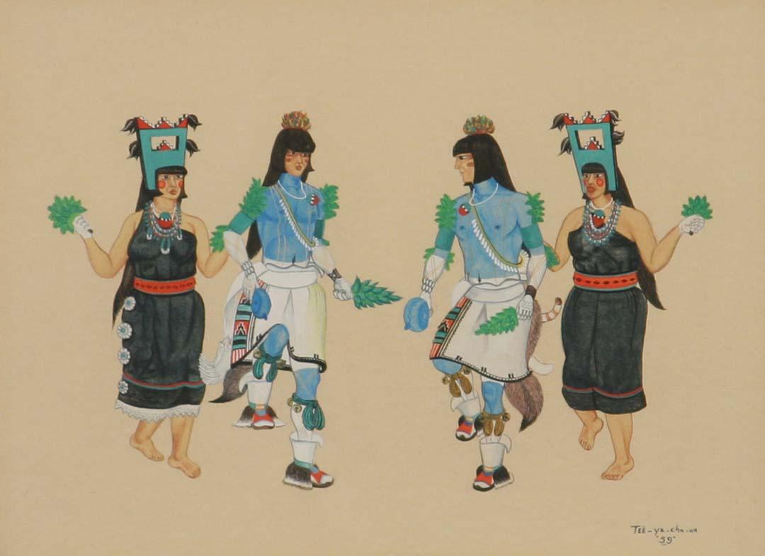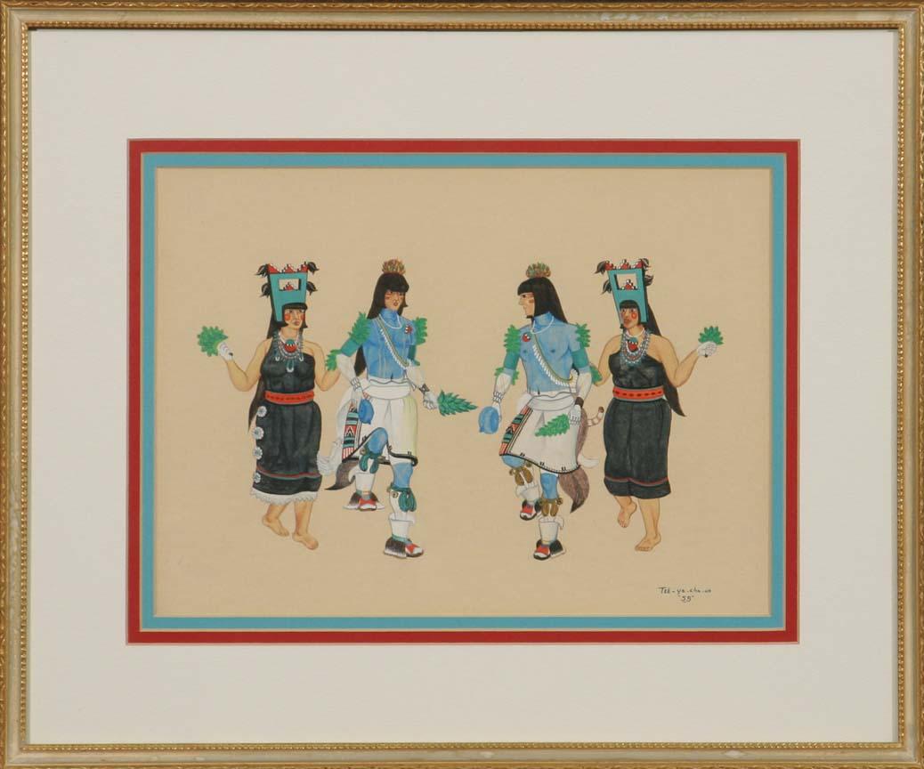 Rafael Medina "Tee-Ya-Cha-Na" (b.1929). Dance Of The Medicine Man, 1959. 8" x 11" gouache. Signed lower right. (est $600-800). For condition reports please visit: www.auctioninsantafe.com/cr2011.pdf