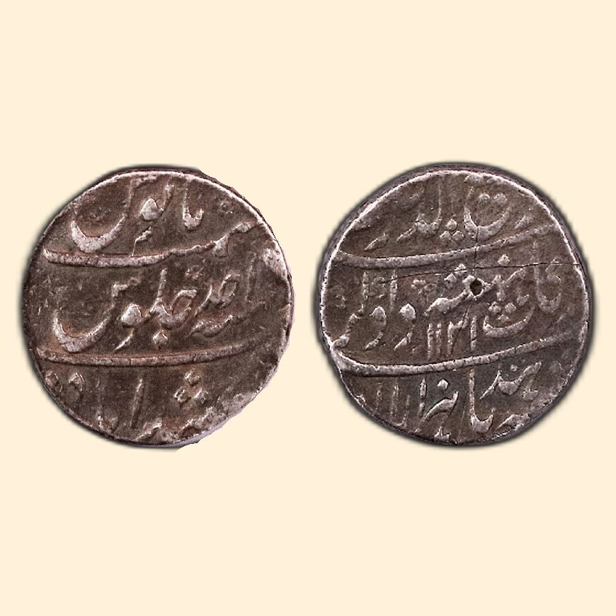 Mughals, Rafi-ud-Darjat (AH 1131 / 1719 AD), Silver Rupee, 11.58gms, Murshidabad Mint, AH 1131, RY Ahd, ruler’s couplet ‘Ba Hazaraan Barkaat’. (KM # 405.16).
